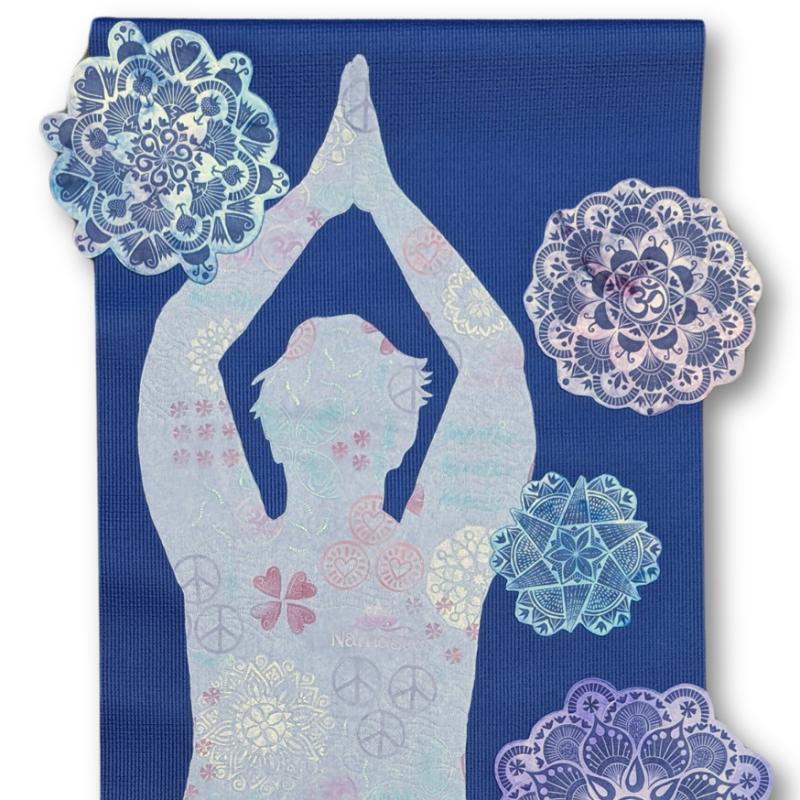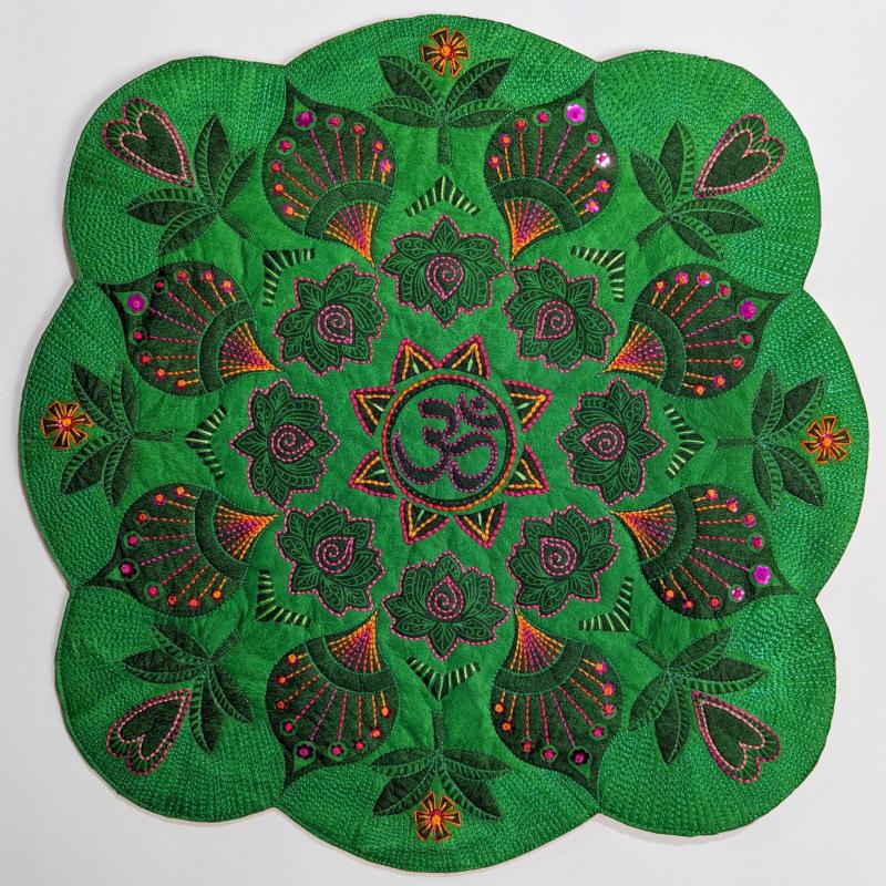 My current series of block printed & stitched fiber art began with daily play to yield 300+ block prints. I enjoy the challenge of nestling these motifs into the whimsical grids, and mandala designs that dance across a yoga mat or in the wind. The same blocks take on new life as they print into spirited nymphs. These hand-carved creations celebrated my transition from 20/20 vision to needing trifocal glasses.