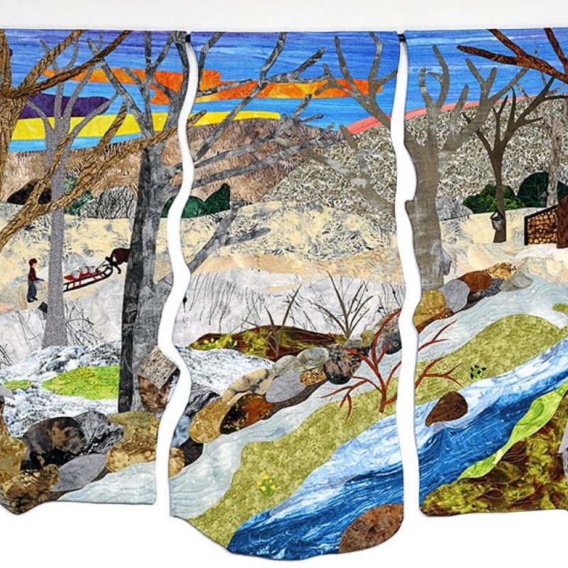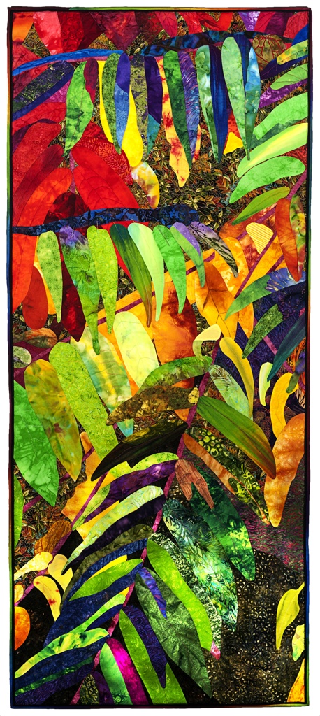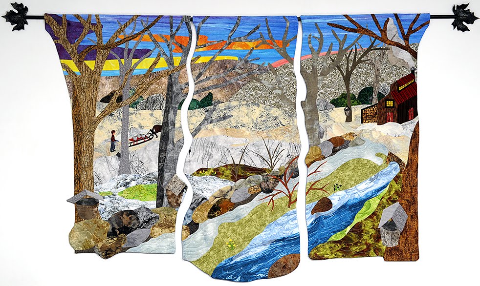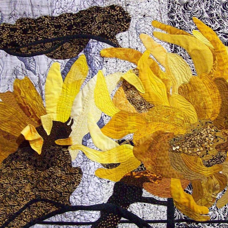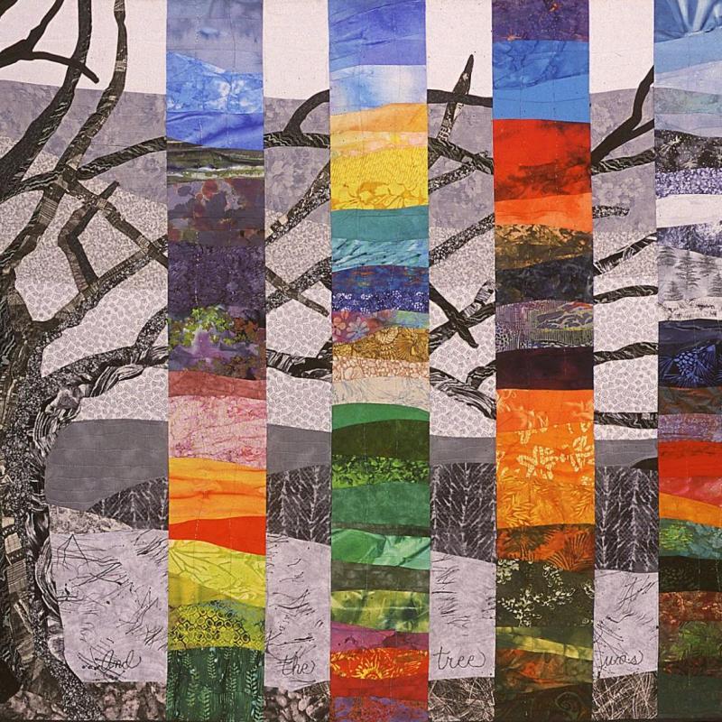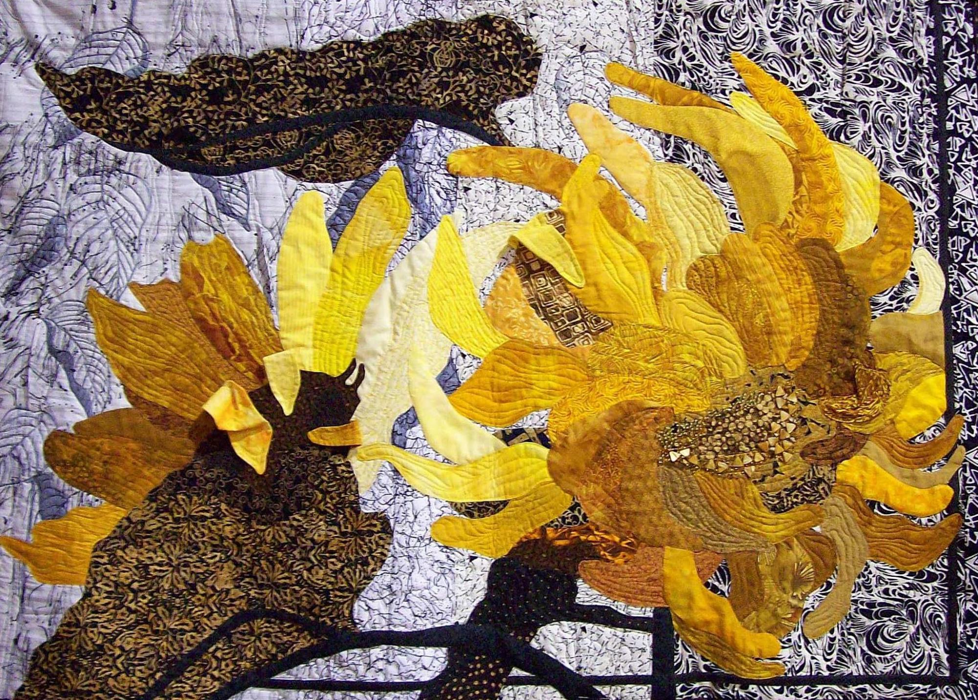My art comes to me through my interaction with Nature, Family, Friends and Travel. I am a self proclaimed "Traditional Quilter Run Amok"! My processes include traditional techniques like piecing, hand and machine applique,then I throw in my own texturing , hand beading, and adding fibers etc. Using hand painted and dyed fabrics, (mine and others) I create scenes like a grouping of Lady Slipper flowers, giant Day Lily, glorious red Poppies... Landscapes are a favorite and am happy to do custom designs from your photos. Also I like to explore color studies and abstract pieces. I have many pieces in Children's Hospital locations in and around Boston, MA.