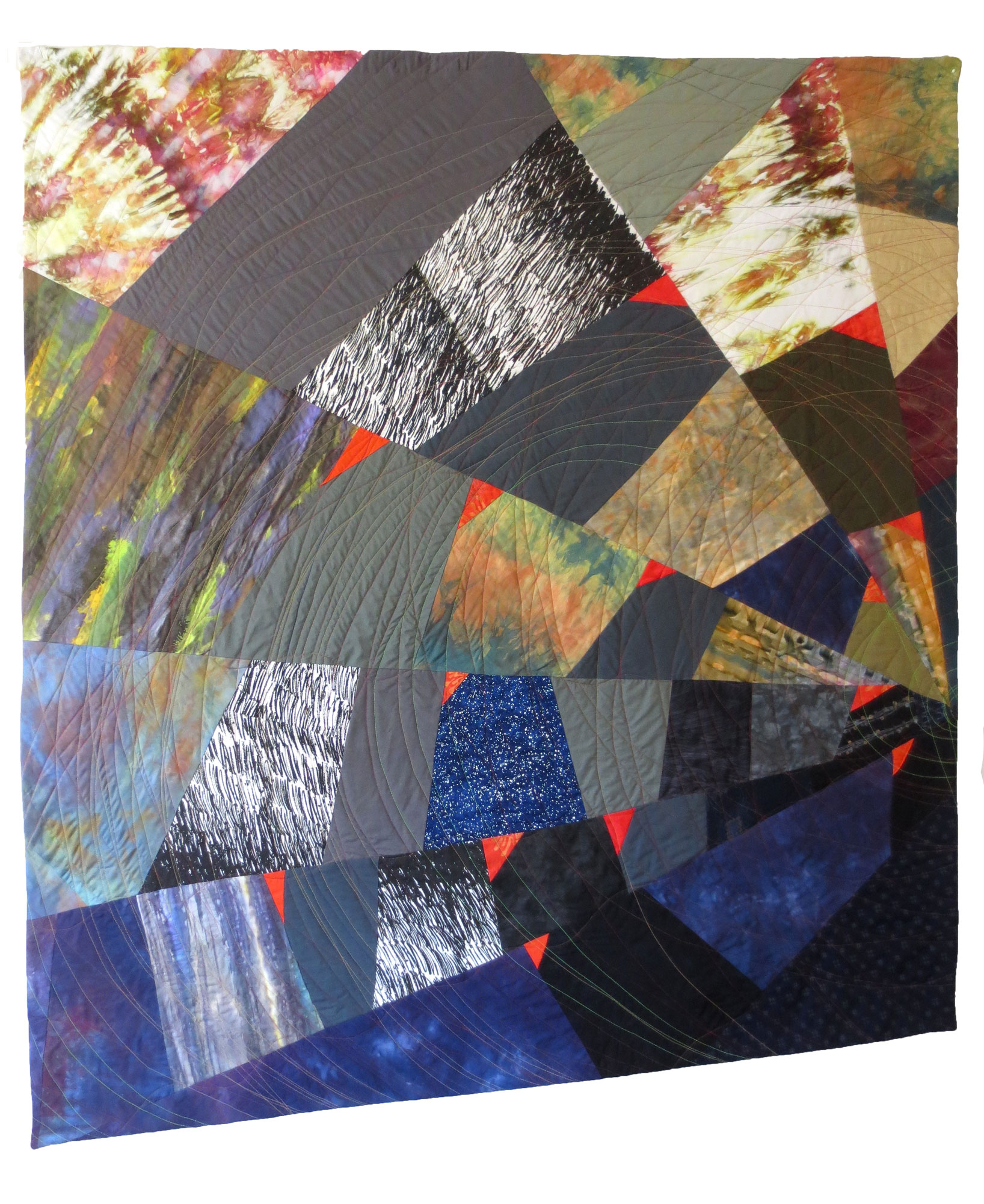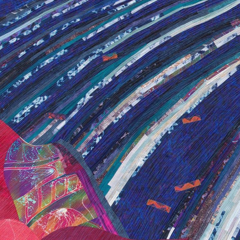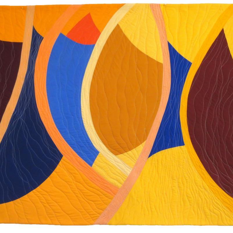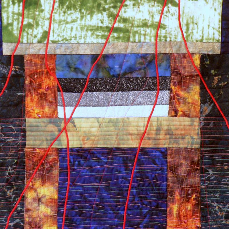 Nancy’s pieced art quilts, often abstract, specialize in emotional impact & glowing colors. She is a retired Architect and now a full time fabric artist creating art quilts. Nancy Bardach has been an art quilter for over 25 years. After retiring as an Architect she doubled down on her practice. Her exhibition portfolio is deep. It includes art galleries and museums as well as art quilt exhibitions, all juried shows. Annually juried into about 10 exhibitions throughout the US, she has also been published in numerous catalogs, books, quilt magazines, and web exhibitions.