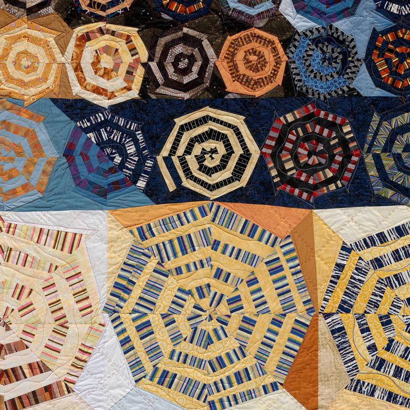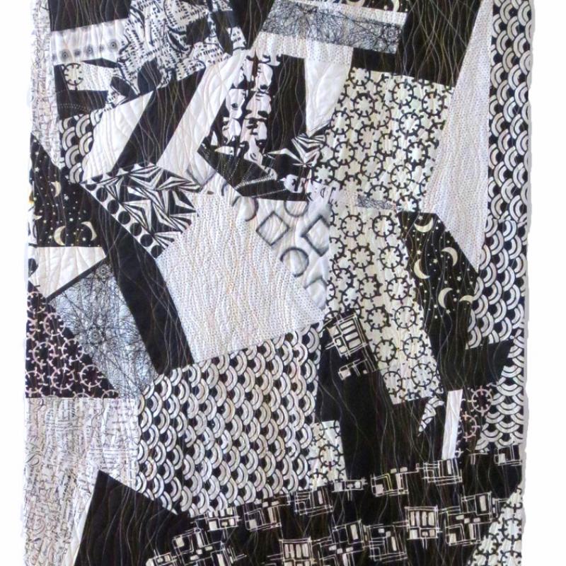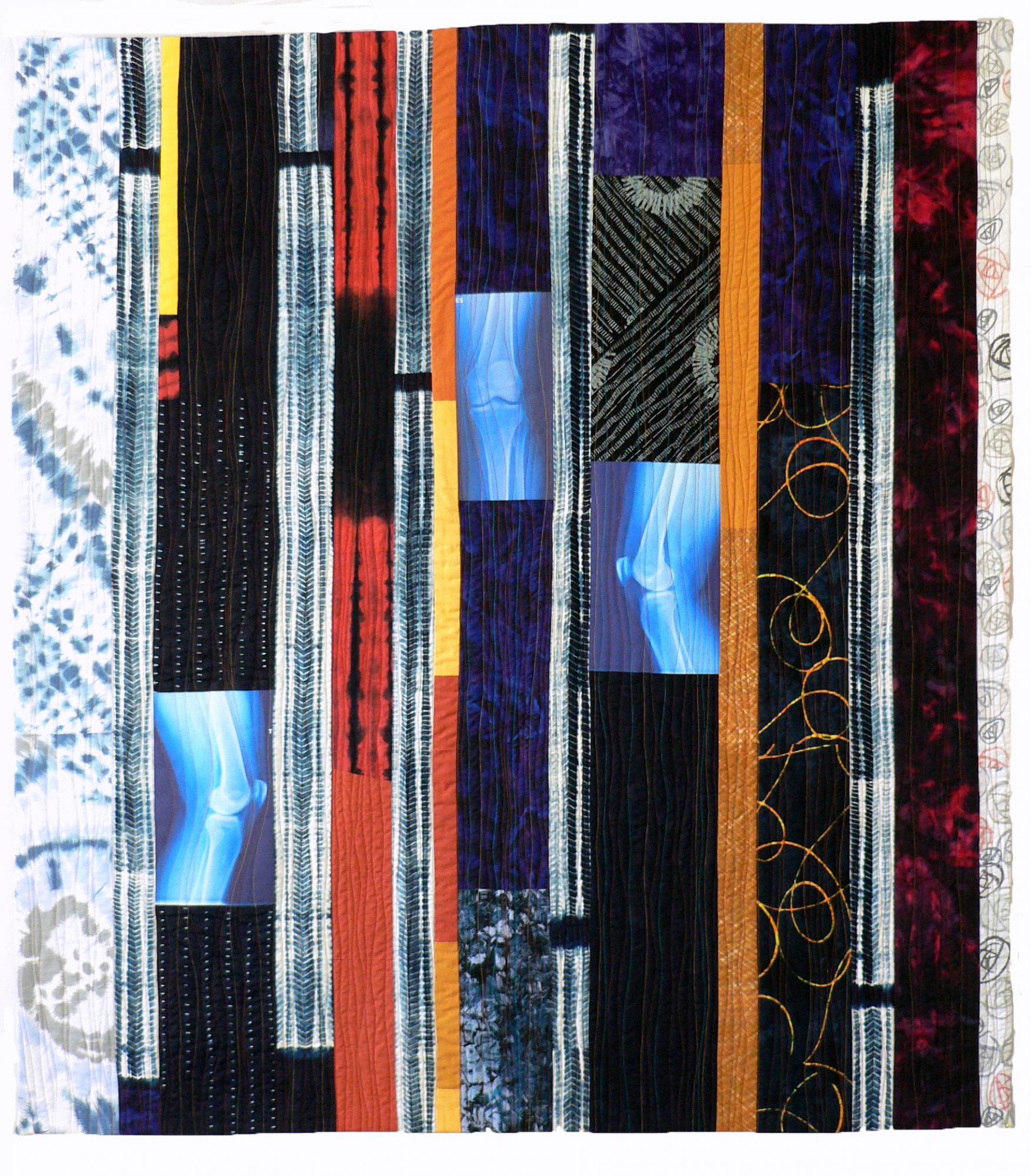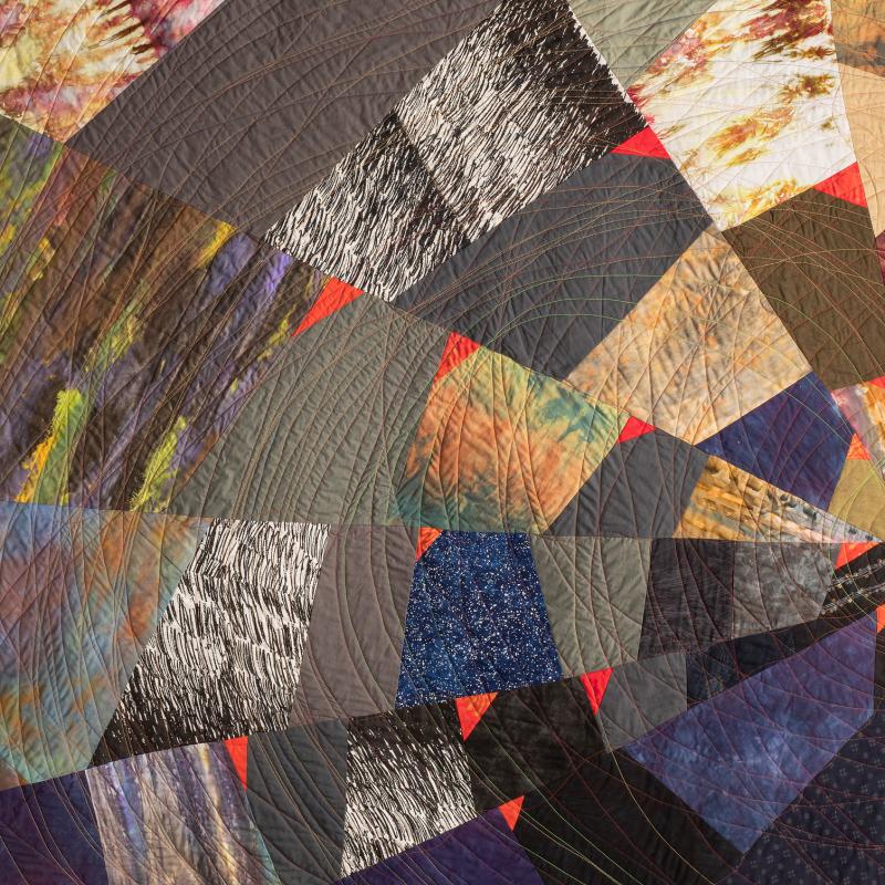 Nancy’s pieced art quilts, often abstract, specialize in emotional impact & glowing colors. She is a retired Architect and now a full time fabric artist creating art quilts. Nancy Bardach has been an art quilter for over 25 years. After retiring as an Architect she doubled down on her practice. Her exhibition portfolio is deep. It includes art galleries and museums as well as art quilt exhibitions, all juried shows. Annually juried into about 10 exhibitions throughout the US, she has also been published in numerous catalogs, books, quilt magazines, and web exhibitions.