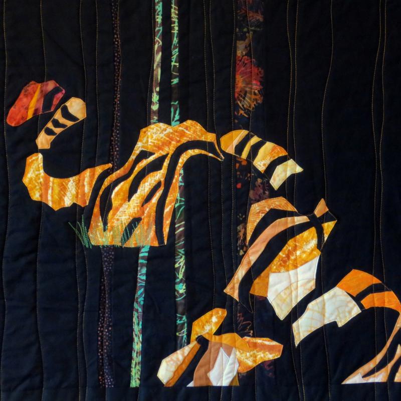 She sells many of her original pieces. Nancy opts to show her art quilts in galleries and art museums whenever possible. Her goal is better recognition of the art quilt in the art world. She recently had a solo exhibition of 25 quilts at the Mountain View Center for the Performing Arts in CA.