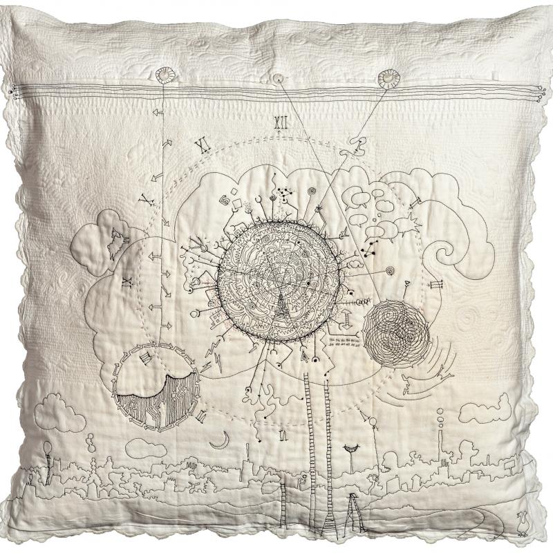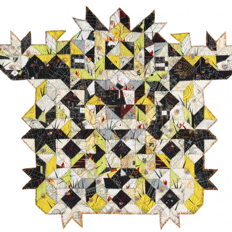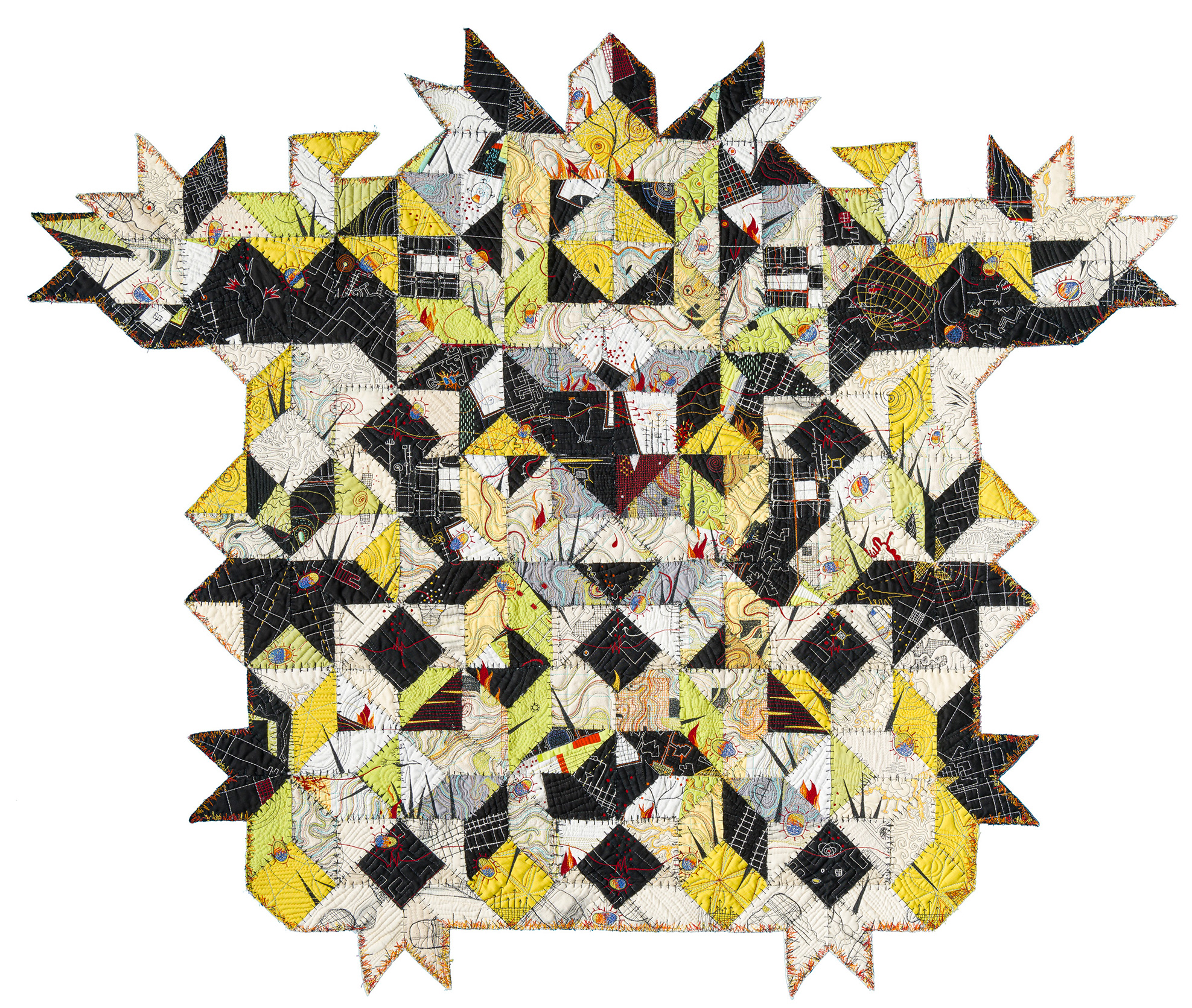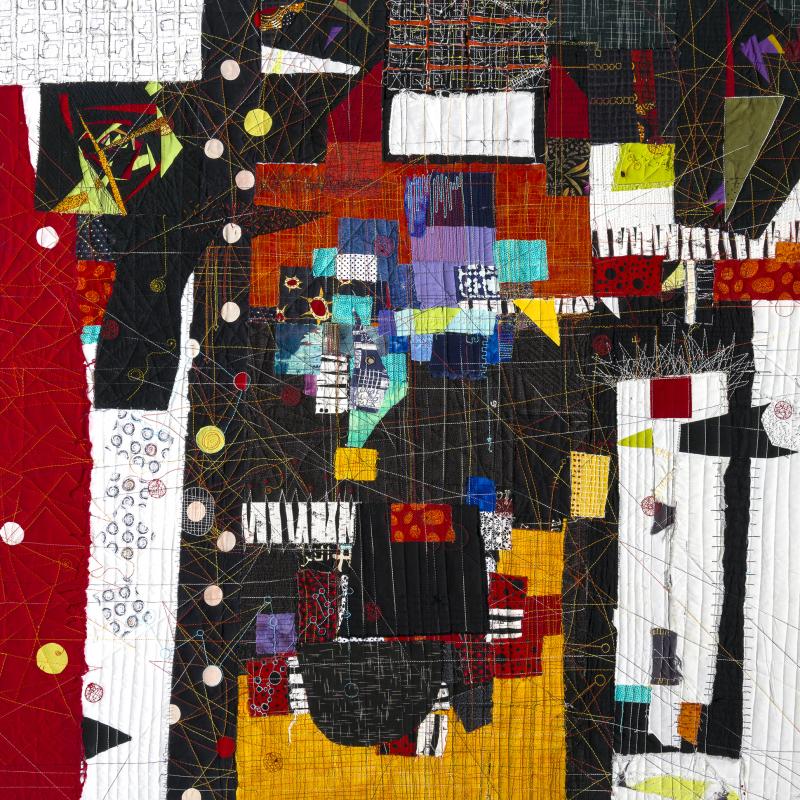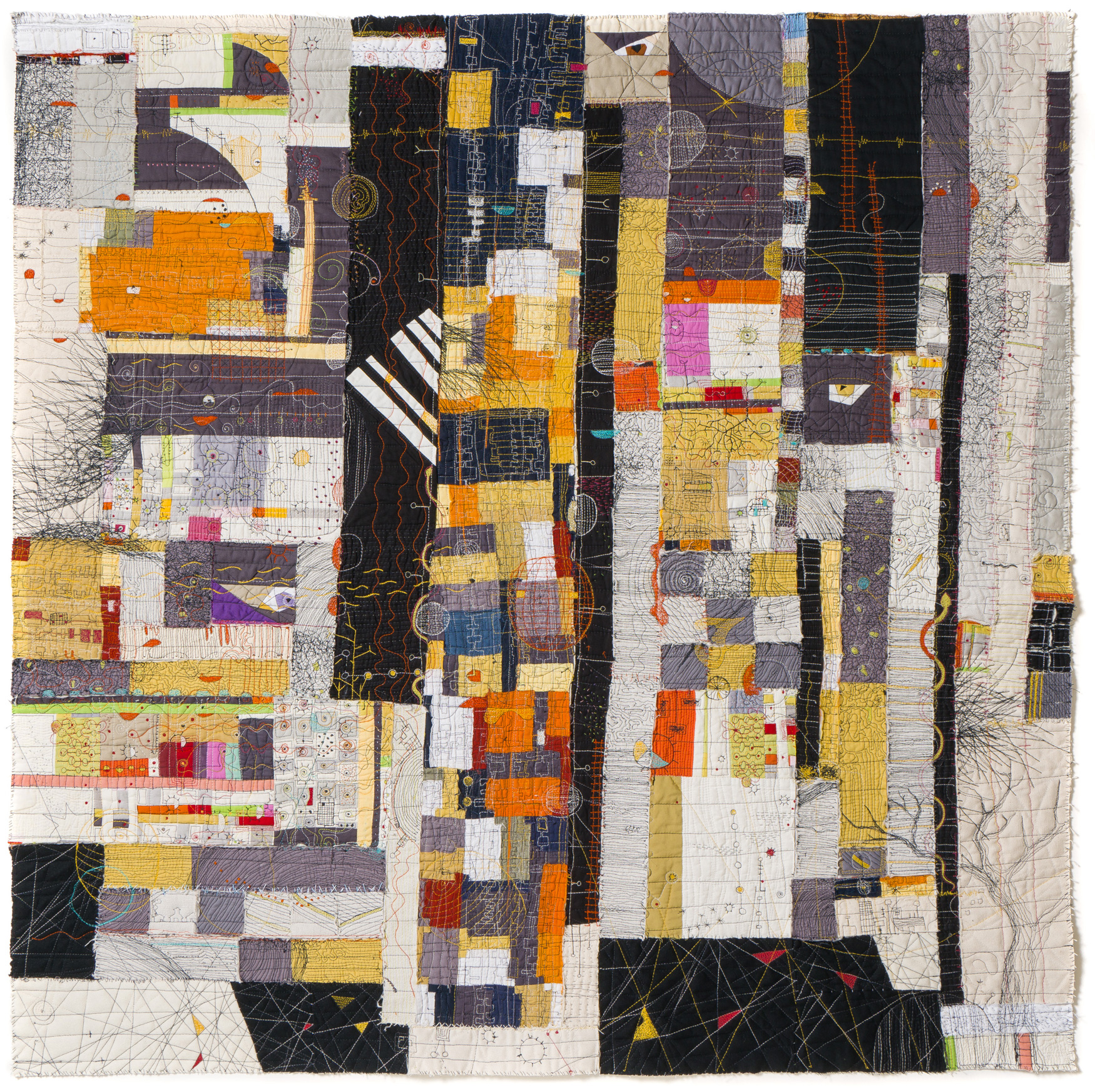 I make art with thread and fabric. Stitching is an extension of my thoughts through my hands. As I stitch I am sensitive to surprises, allowing the line and images to tell me more than I think I know. It’s about the inner coming out. It’s about defining rough-edged ideas through intimate attention to detail. It’s about layering, ripping, cutting, and sandwiching together ideas with the raw materials that surround me—producing a composition that reflects my values and my voice. Often my work is a reaction and interpretation of current events. Sharing this art brings me joy and solace in this complex and baffling world.