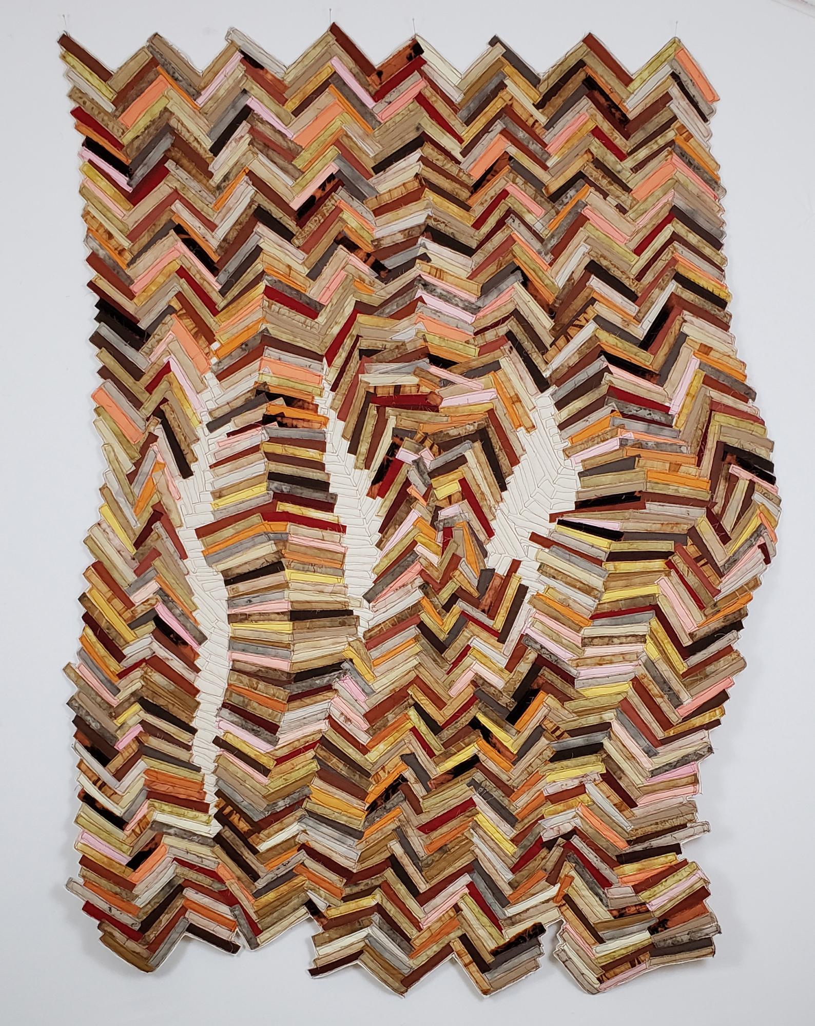 My geometric installations, sculptures, paintings, textiles, and quilts stem from my ongoing research of American quilt history. I learned how to sew as a child from my mother and borrow traditions from quilt making using improvisation, contrast, repeat patterns, and shifts in scale while incorporating colors, textures, and structures representative of the natural surroundings in South Florida. My continuing interests and research include American architecture, Folk-Art Quilts, geometric patterns in nature, and geometric-abstract artists from the mid to late twentieth century. Specific influences include Gees Bend quilters, Elizabeth Murray, Monir Shahroudy, Carmen Herrera, Helen Frankenthaler, Gego, and Eva Rothchild.