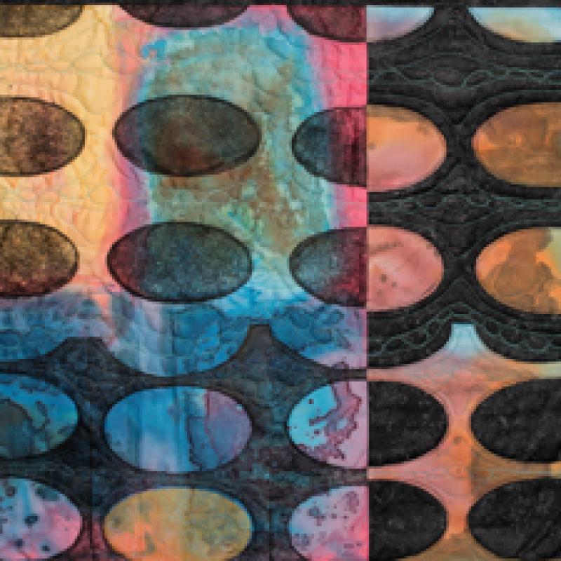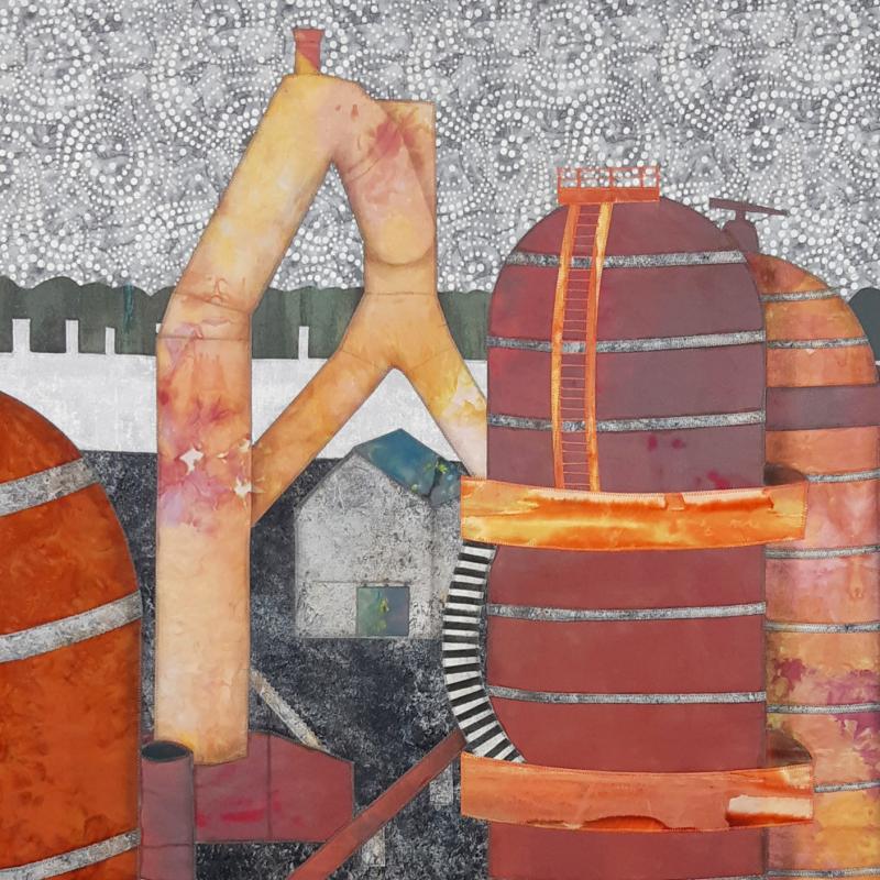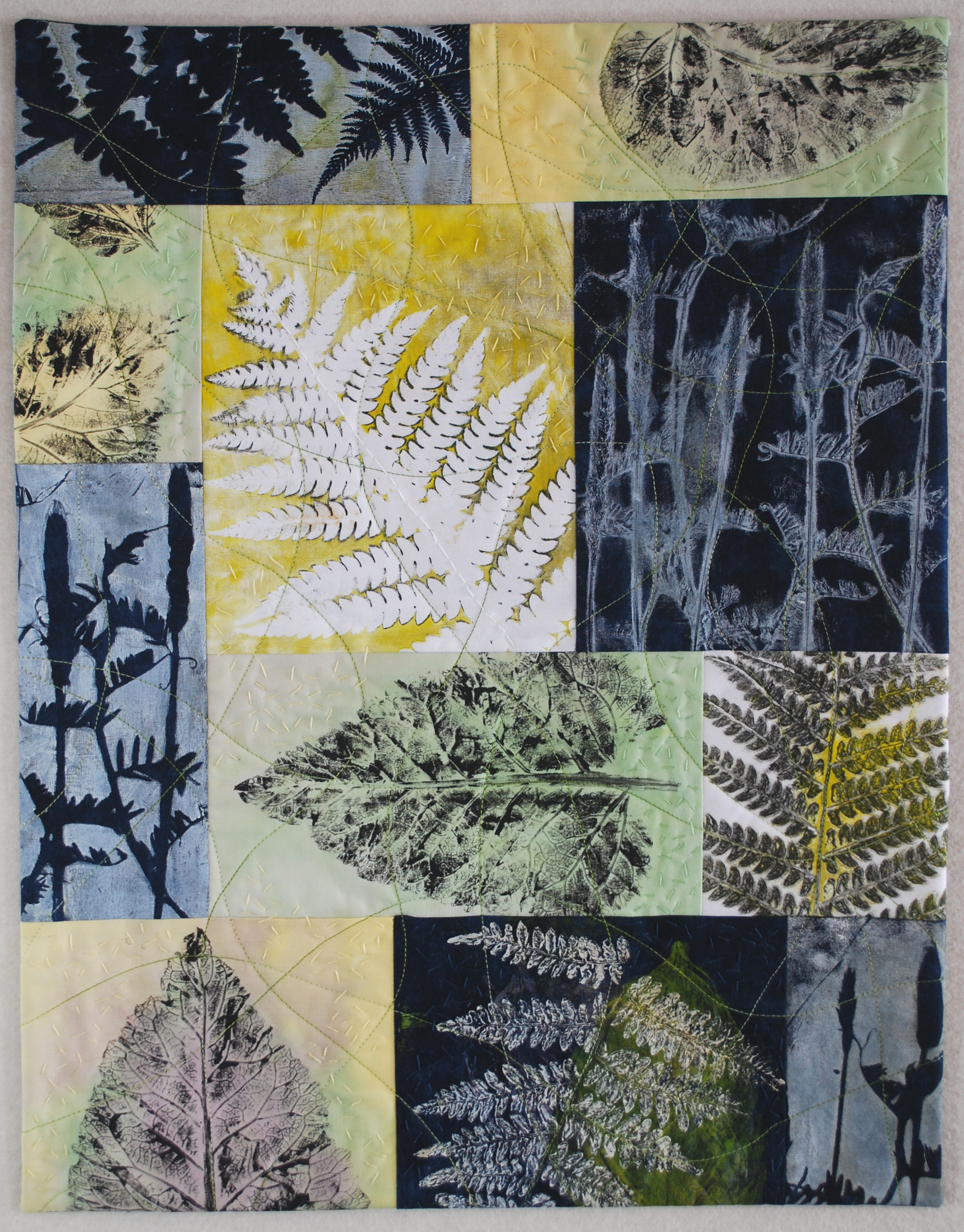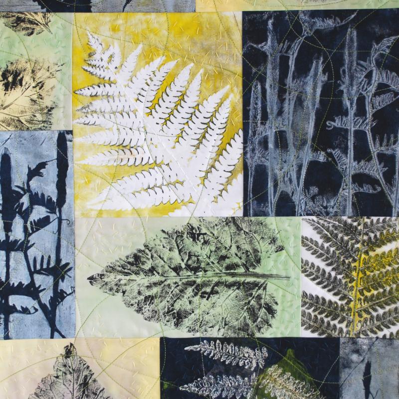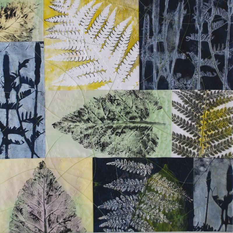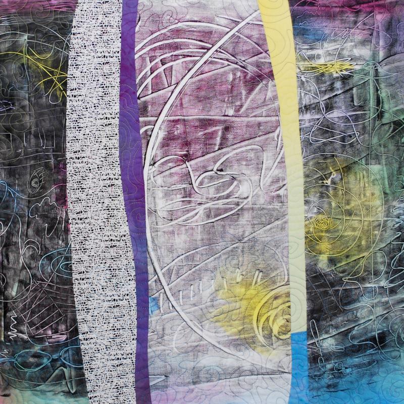 Using fabric as my medium, I explore shape, line, transparency, colours. The feel of the fabric, the slow process of adding marks by hand stitching, the layering of colours and textures informs the outcome. I create mostly abstract and colourful textile collages. The process of creating my own fabrics through dyeing, painting, printing and other surface design techniques is an integral part of the final artwork.