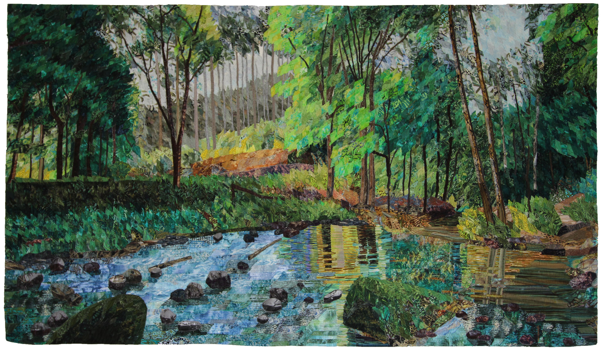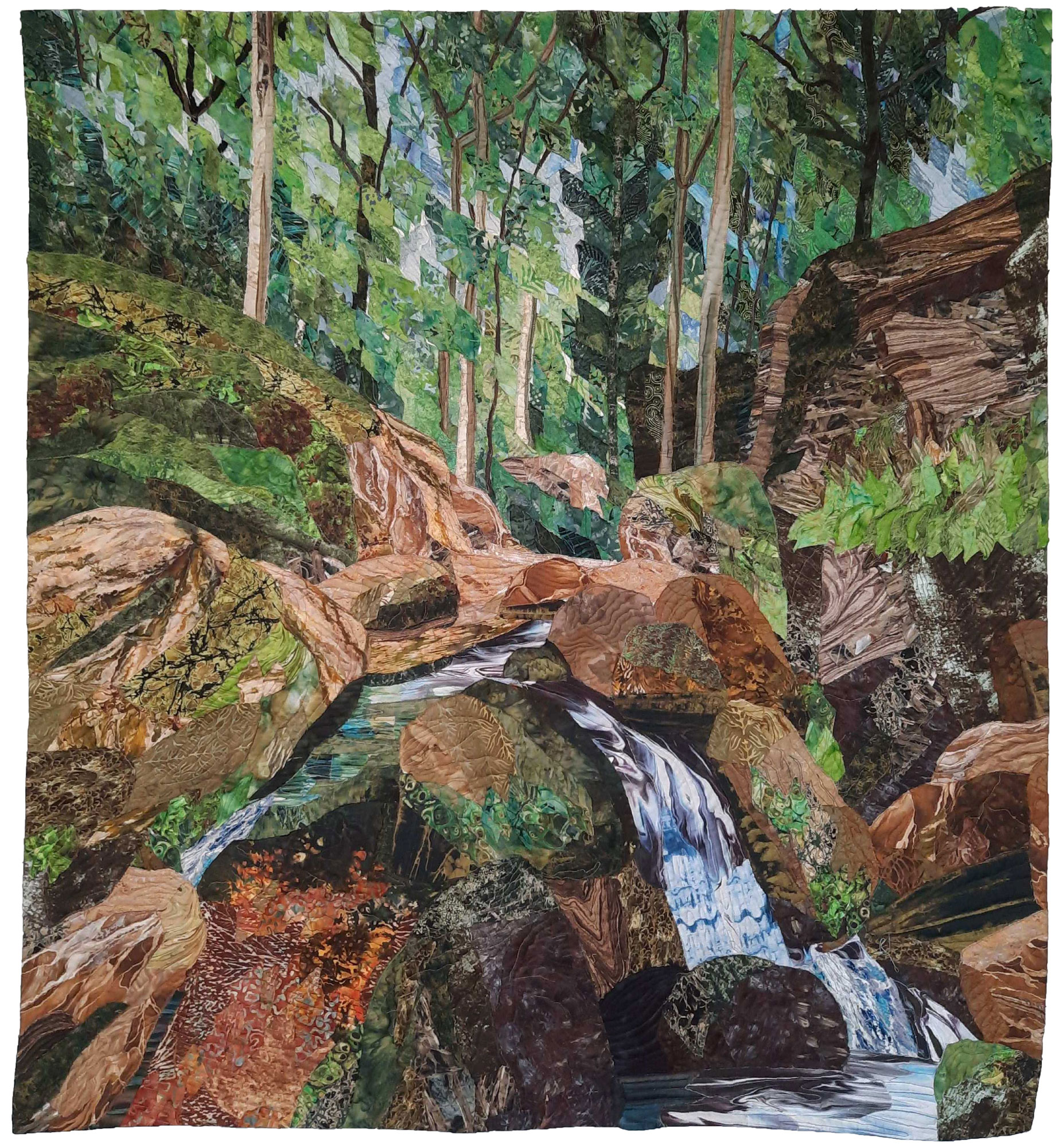 Inspired by the brushwork of Impressionism, I use textile layering to paint with fabric. My works explore the feelings of being immersed in nature and invite contemplation on our interaction with it.