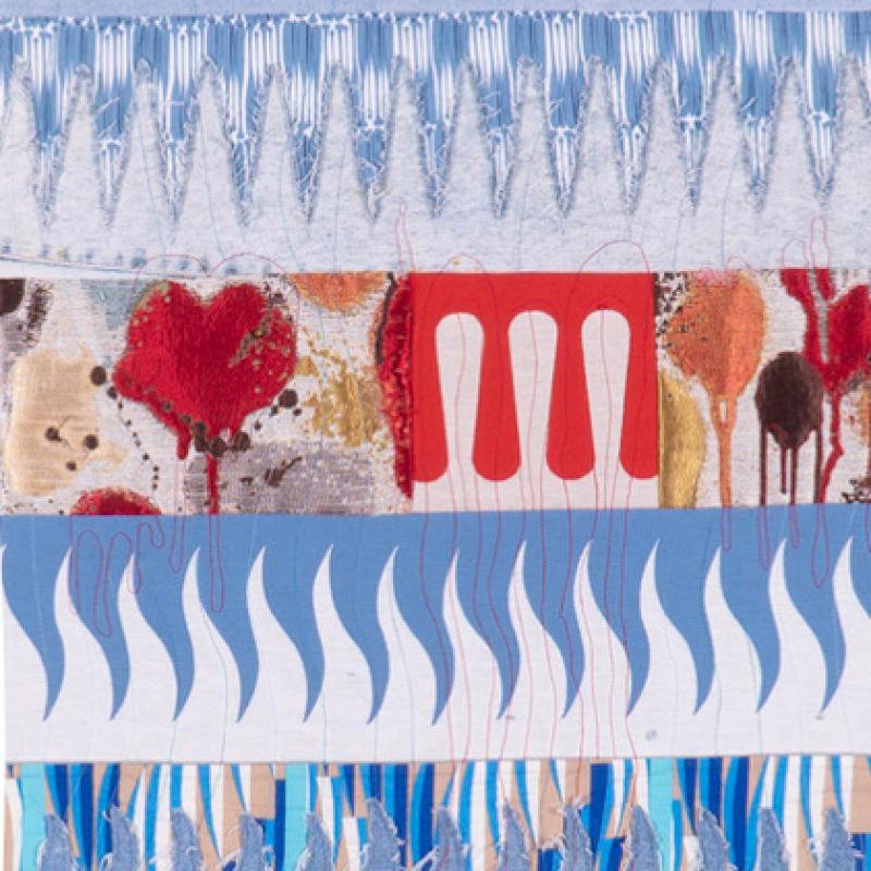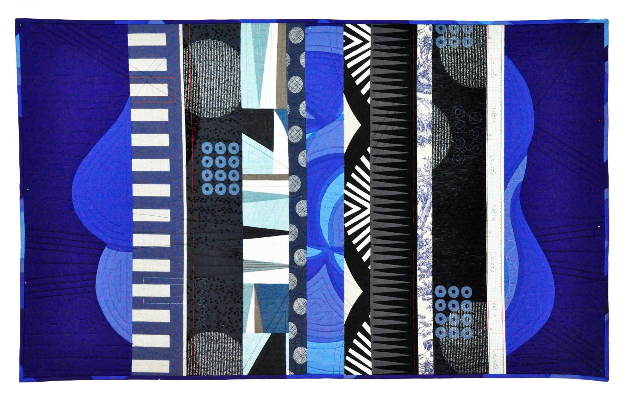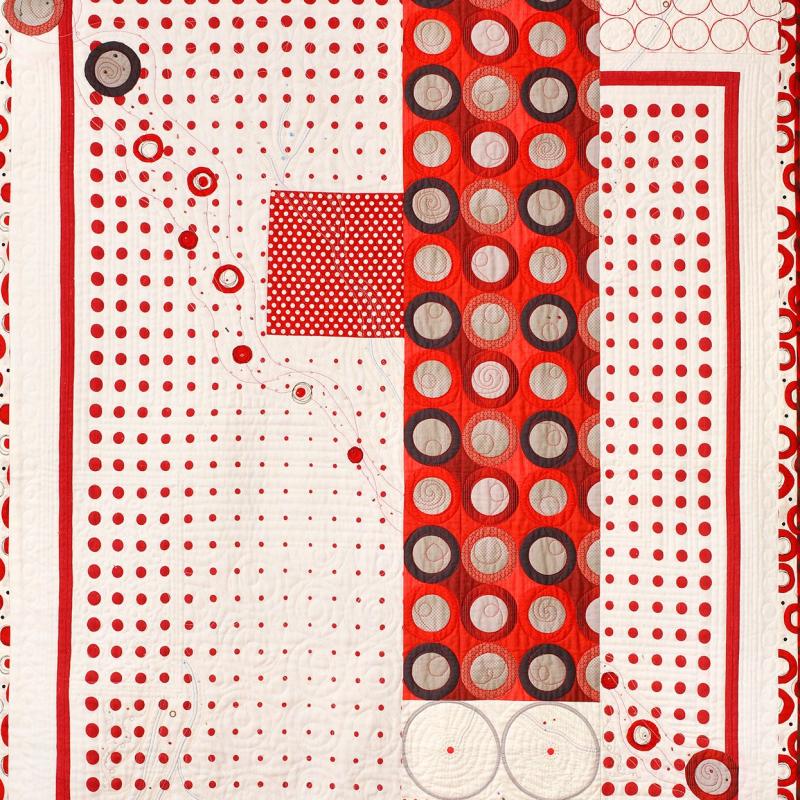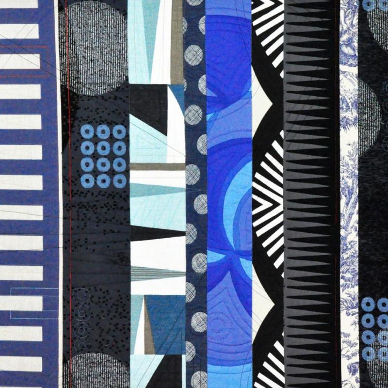 I find the greatest joy in my quiltmaking practice when searching for and finding fabrics that call out to me and honoring those fabrics by placing them in conversation with other textiles. My fabric choices are the result of my life experience. In my formative years I was inspired by the bold, graphic designs of Op Art, especially as printed onto Marimekko fabric.
