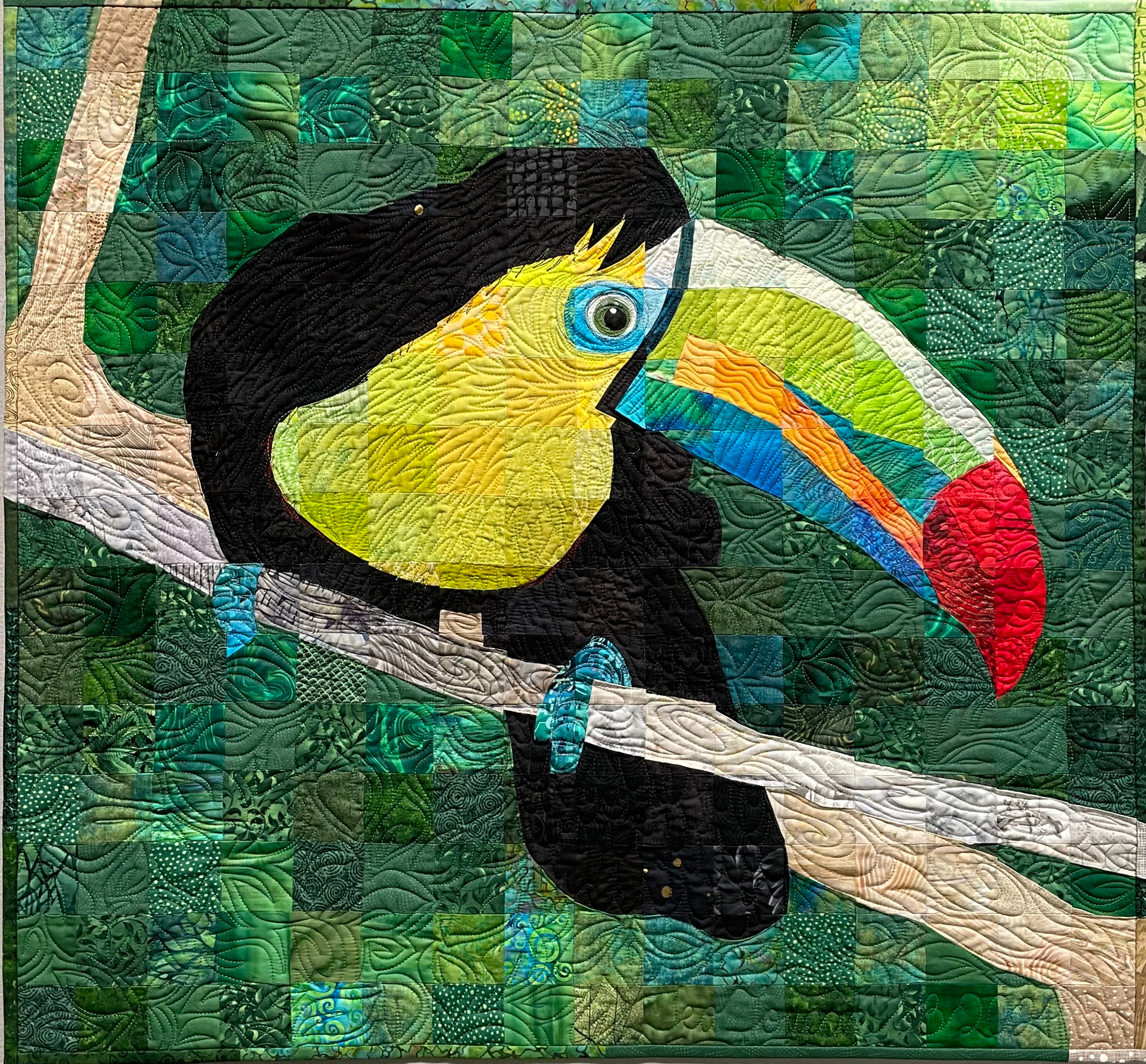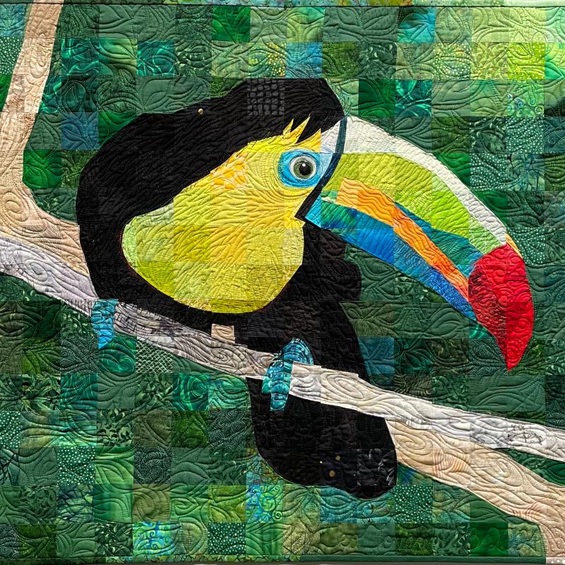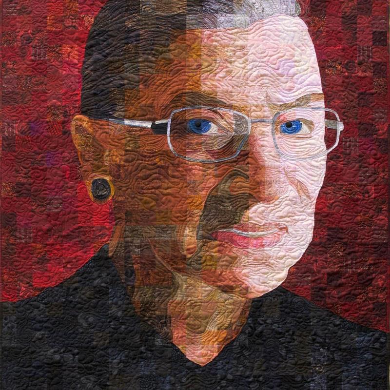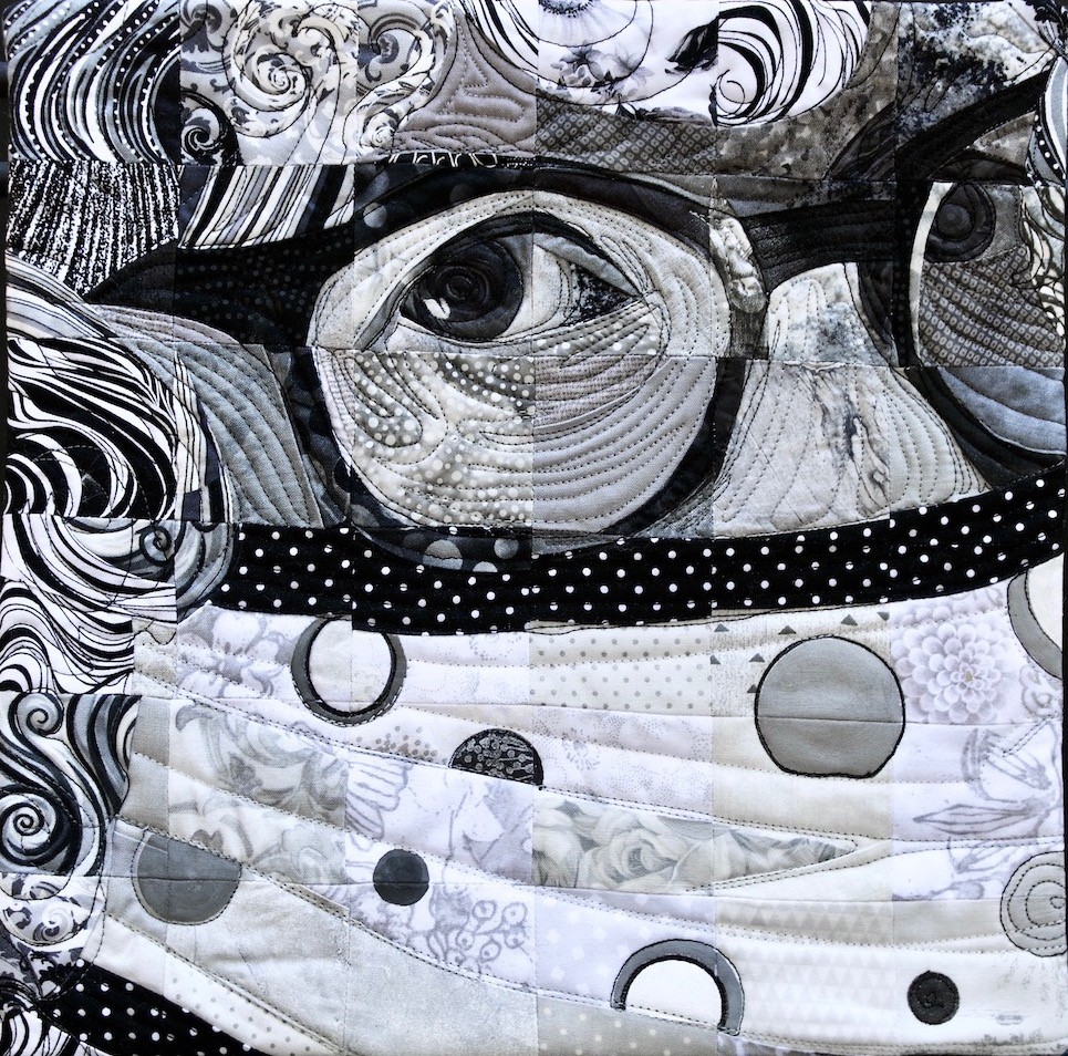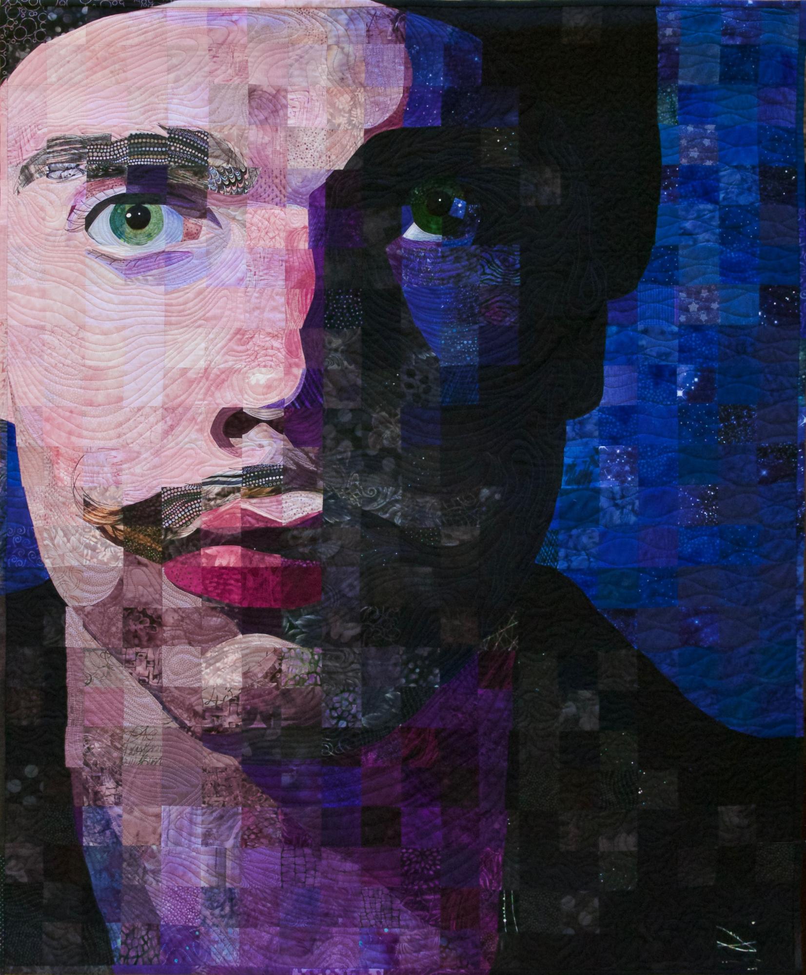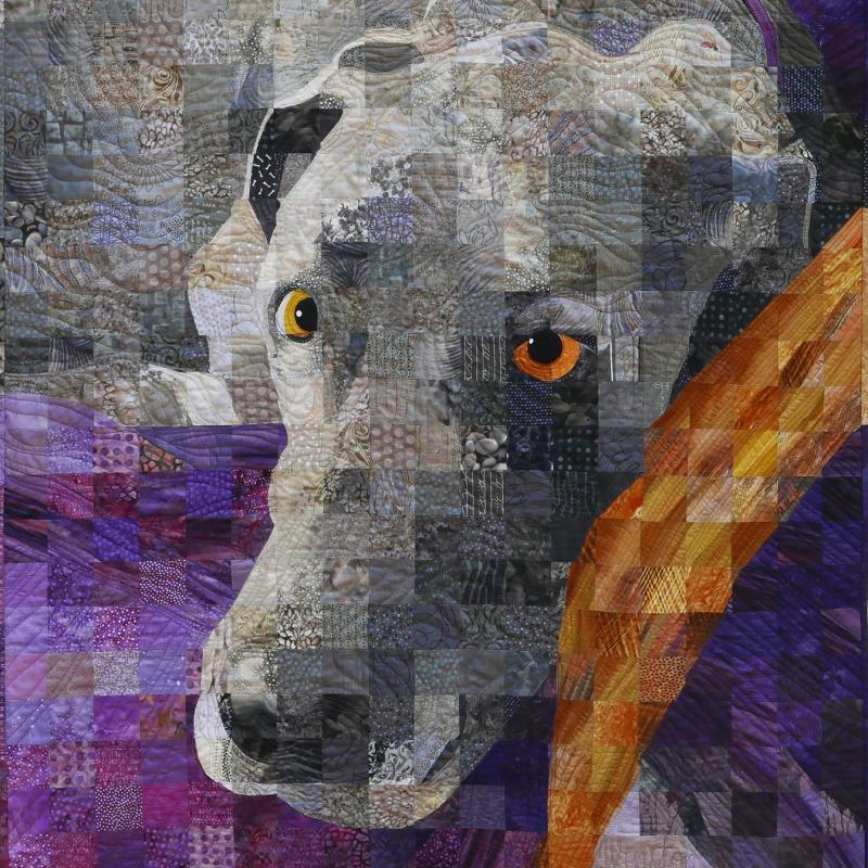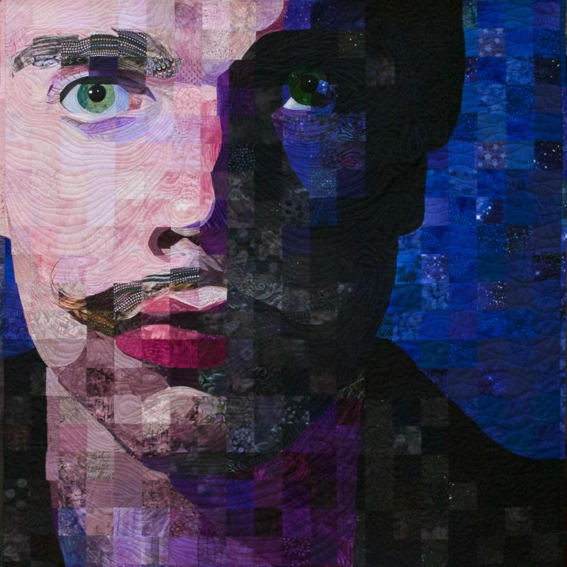 My passion is piecing, and I have developed a technique that I call "Material Matrix," whereby I use a gridded photograph to create a quilt using 2-inch squares. My favorite subjects are portraits, as they are the most challenging and also the most rewarding. All my quilts are pieced, with an occasional small hand-appliqued detail, no fusing. I quilt my pieces freehand on a Gammill longarm machine.