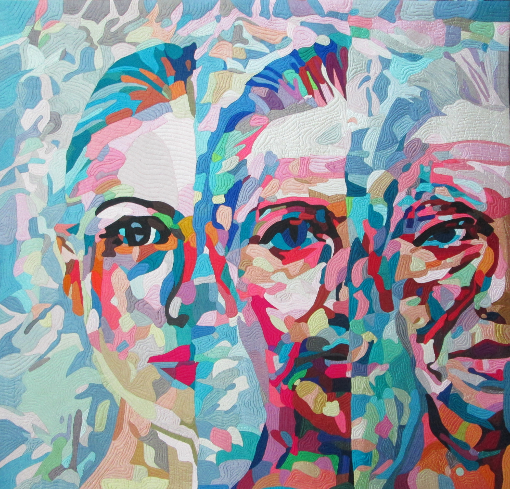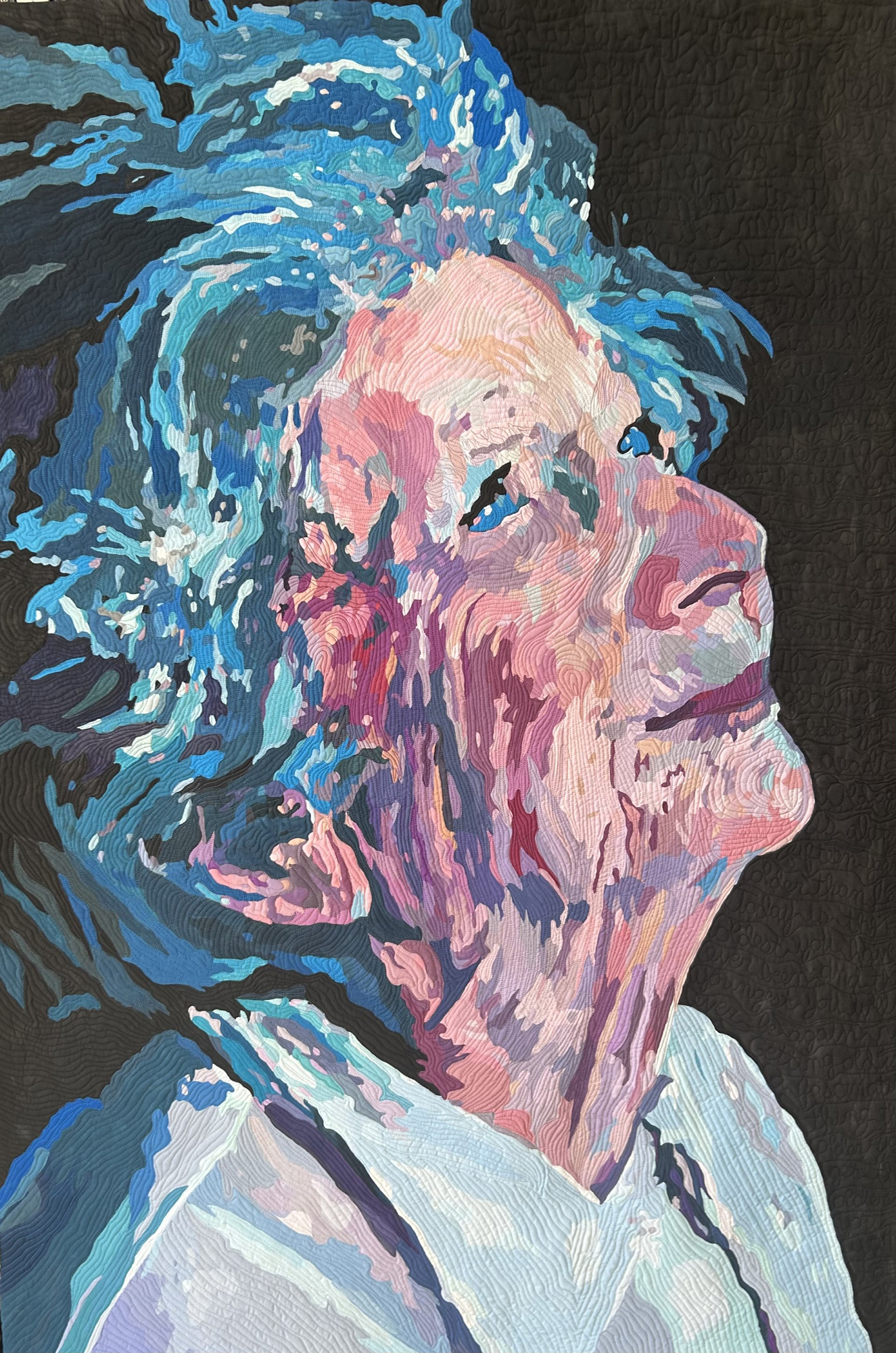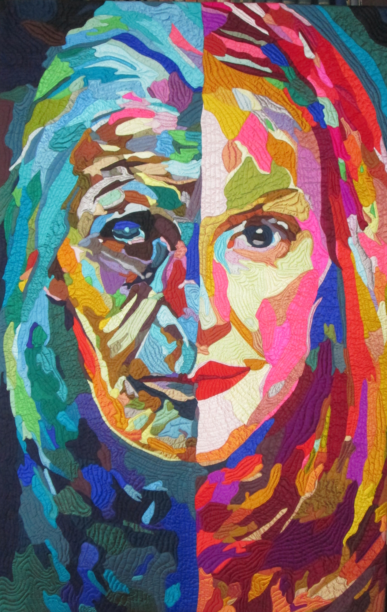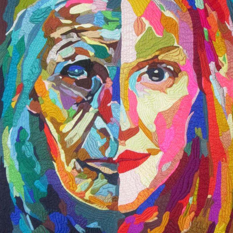 My love of animals, fear for our planet, frustration with aging, love of color, and empathy for people in pain has found its way into my work. Sometimes my quilts are cathartic, a way to exorcise the pain and fears in life. Sometimes my work is an expression of my joy in the things I love. Often, eyes, the "window to our souls" are central. For me, if the eyes are alive, I have succeeded.