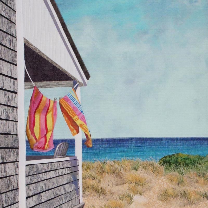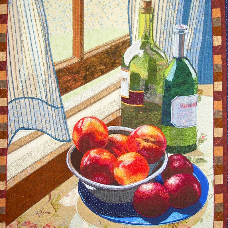 Sara Sharp draws on her love of nature and painting to make collaged art quilts. She uses commercial and hand-colored fabrics to make images of abstracts, social concepts, and nature. A love of birdwatching shows in her many quilts about birds. Free motion machine thread painting and quilting enhance forms and shading in her works. She is a juried member of the Studio Art Quilt Associates and the American Pastel Society.