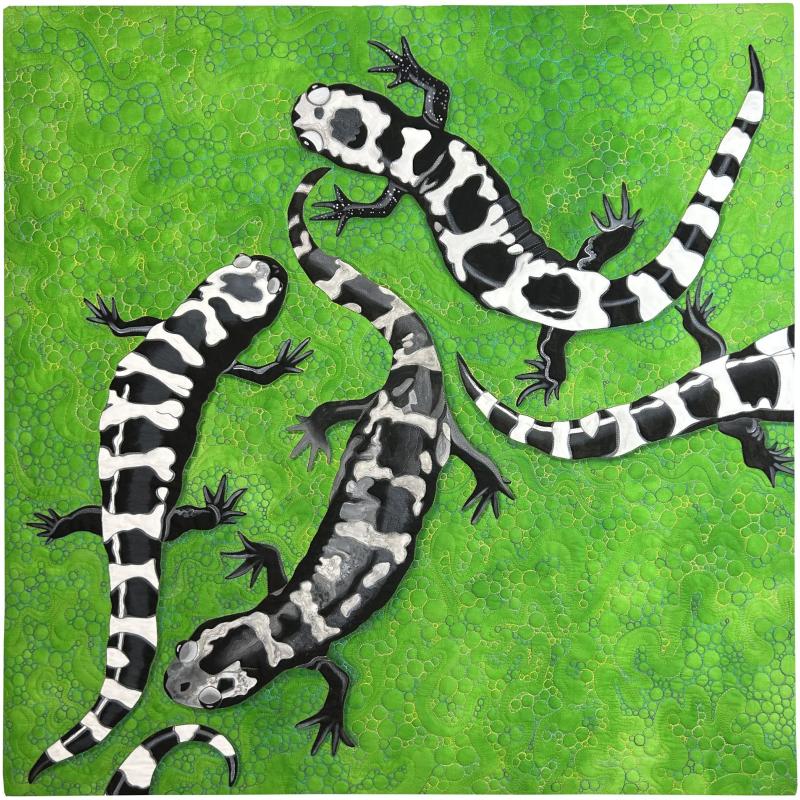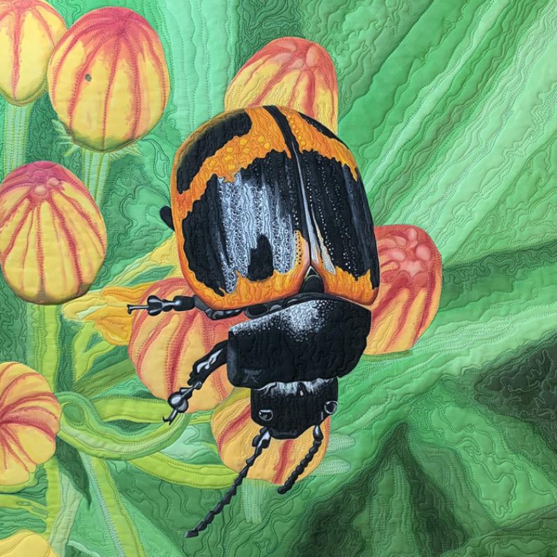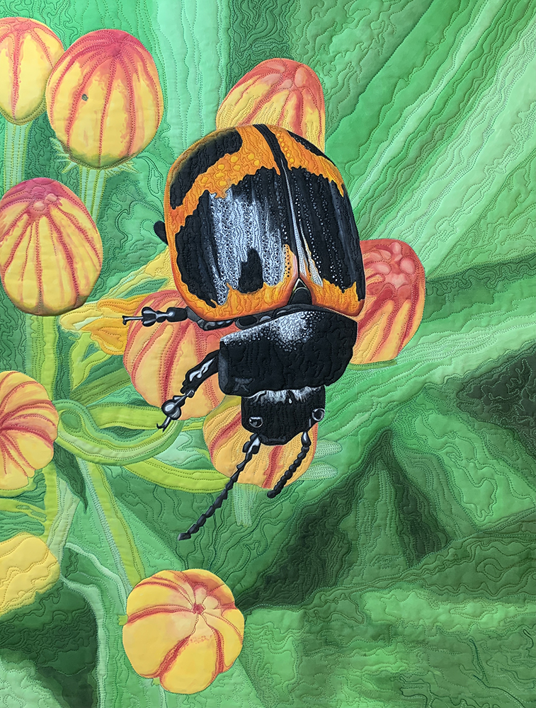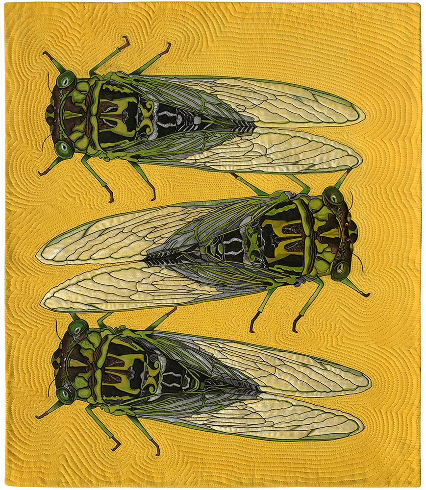 Nearly all of my work is realistic in style and starts with original photographs of the subjects. I use two primary techniques – whole cloth painting, and fused appliqué – then heavily free-motion thread sketch the surface before quilting.