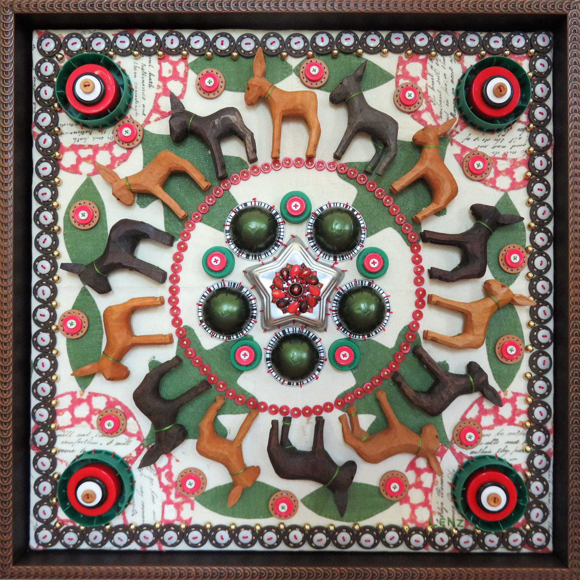 Susan Lenz is a full time, professional studio artist in Central, South Carolina. Her studio is located in the recently renovated, former Cateechee mill village church at 320 North Church Street, Central, SC. Her studio is literally sanctuary-sized. She stitches both by hand and machine but also indulges a passion for book arts and unique, 3D found art objects. Altering found photos is an obsession.