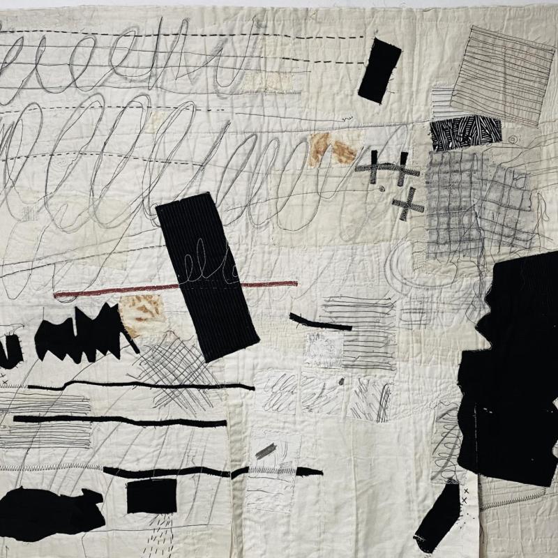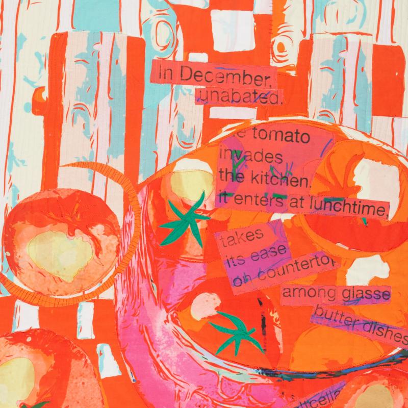 I have a bank of skills -- hand embroidery and needlepoint, bead making and silk screening, machine piecing, collaging, drawing and layering of images, and digital design-- that lend themselves to cloth. The physical work itself has lots of variety, essential for my character -- in size of the action, scope, functionality, wet and dry, meticulous and off-the-cuff.