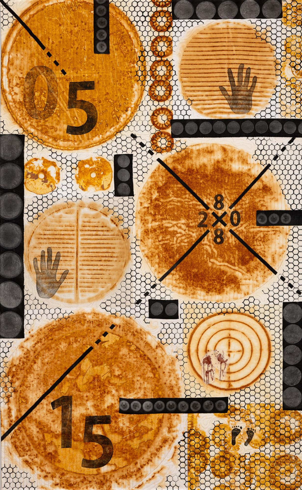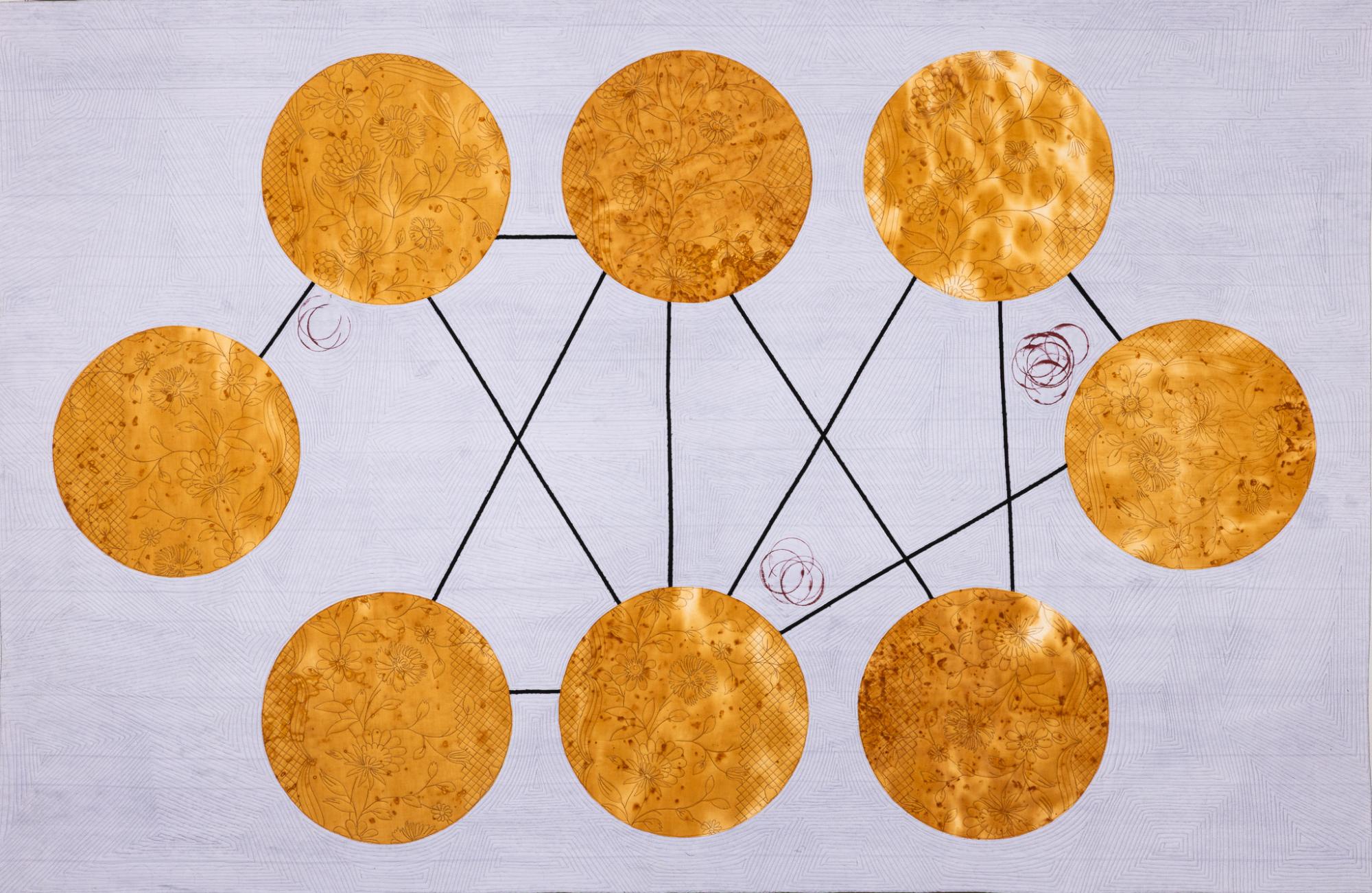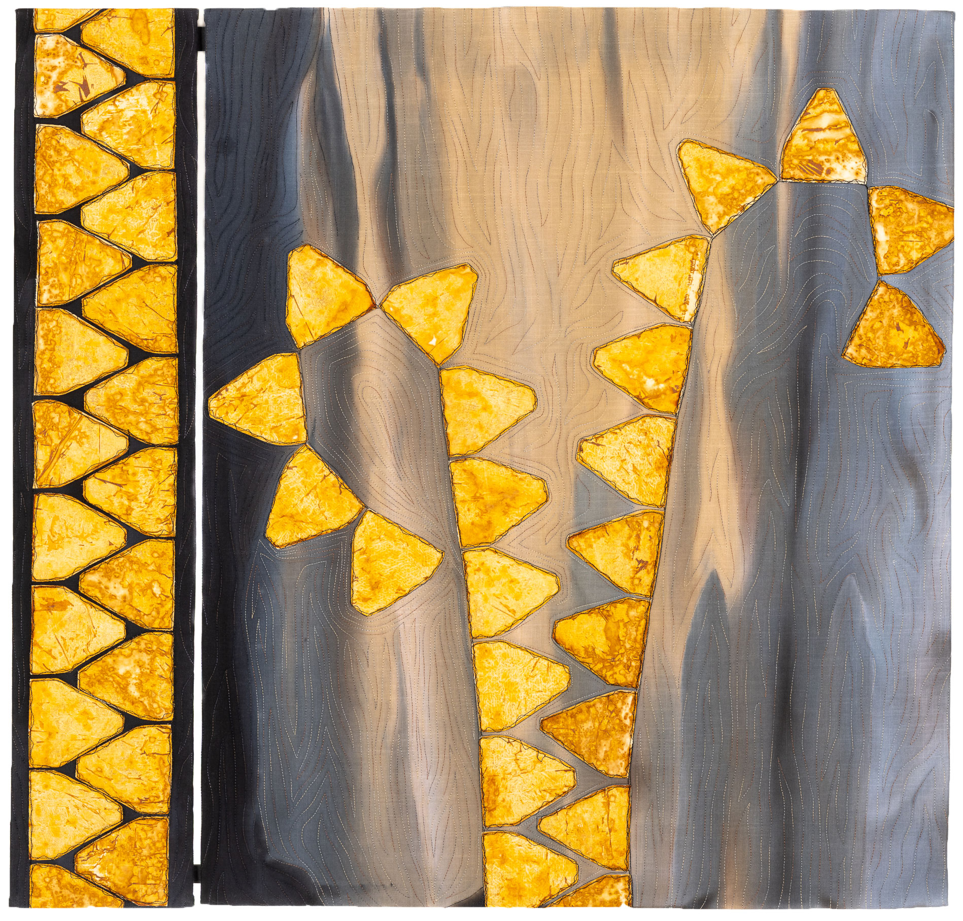 I work in series, print and dye my fabrics myself; my preferred technique is raw-edge fused appliqué and machine-quilted. My latest obsession is rust printing with found rusty objects; the rust in my work represents inherited traumas passed down from generation to generation. Something “toxic” transformed into something beautiful.