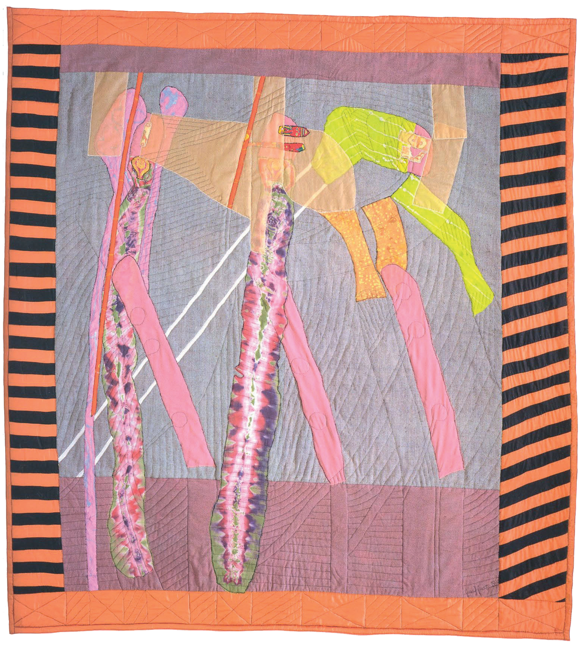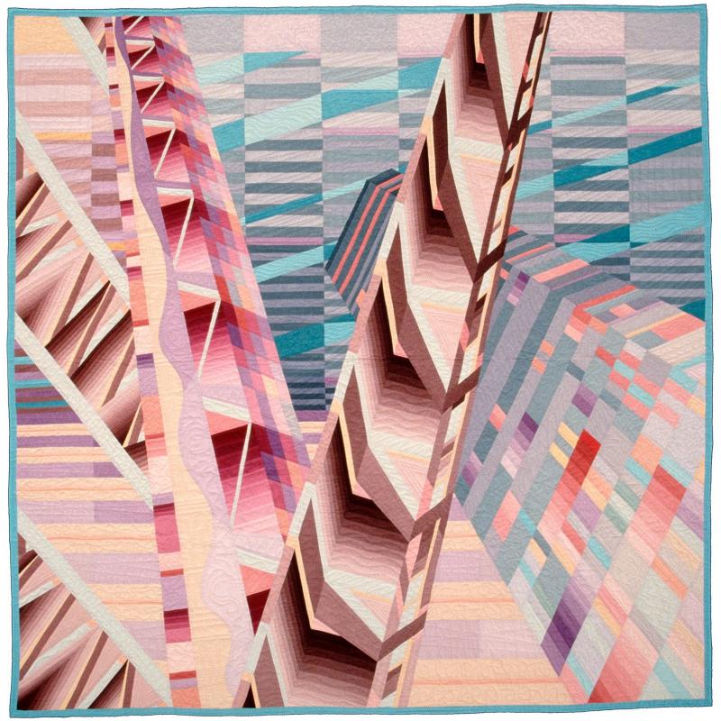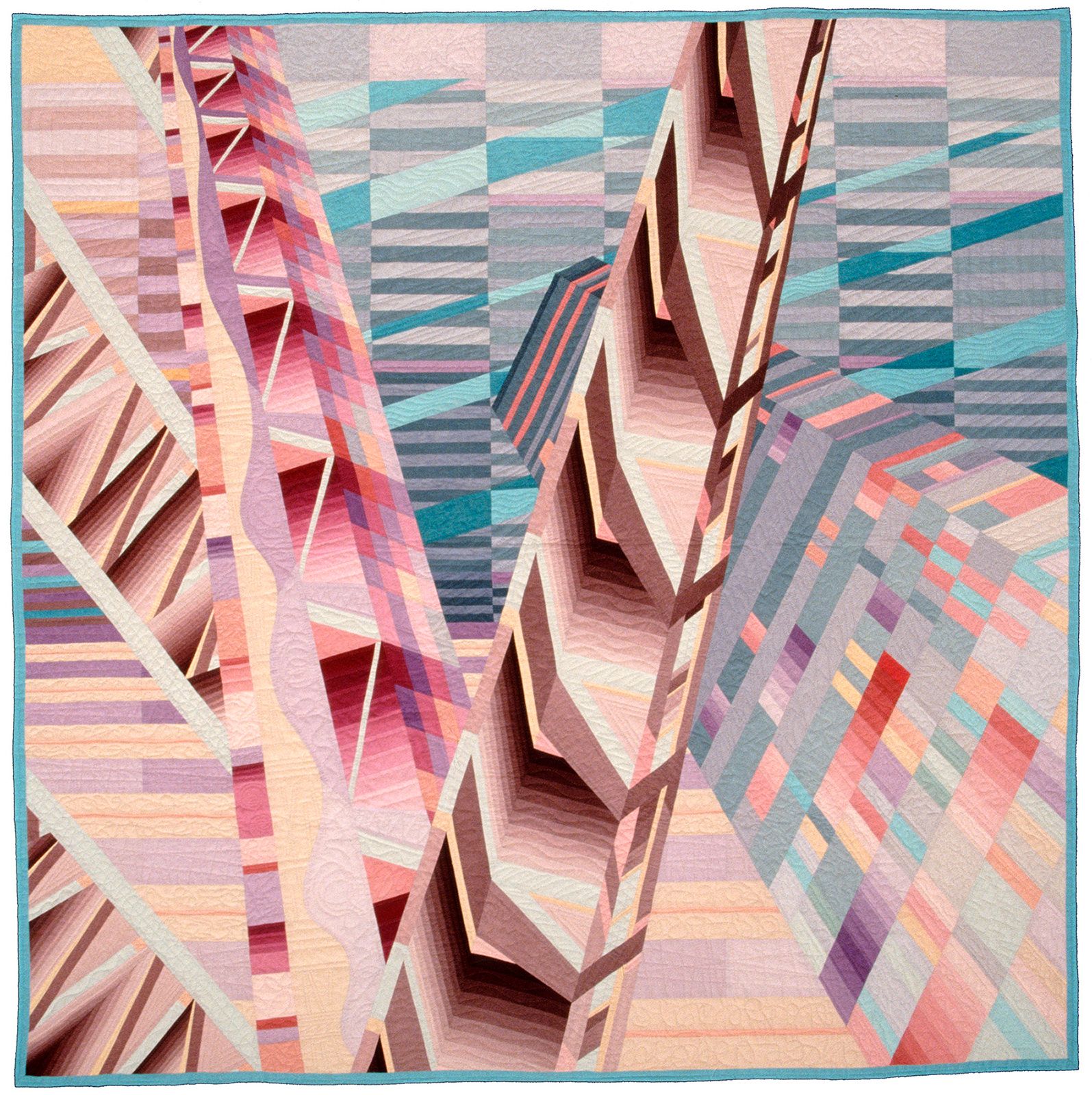 As the art quilt movement gained prominence and greater exposure, artists began exploring materials and processes beyond the commercial fabrics and hand-stitching used by traditional makers. Pieces with machine quilting became more common and accepted.