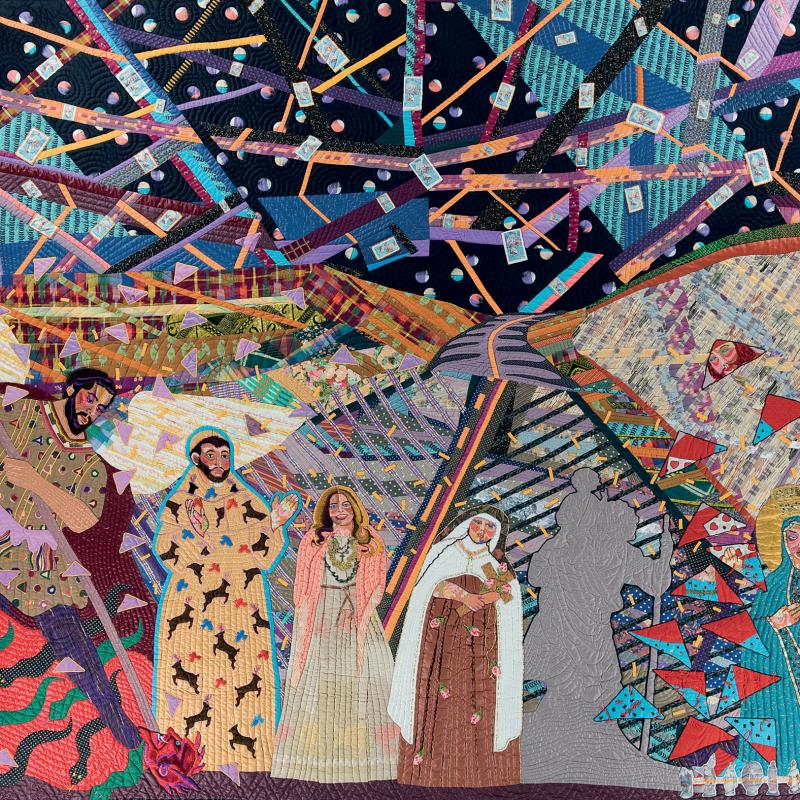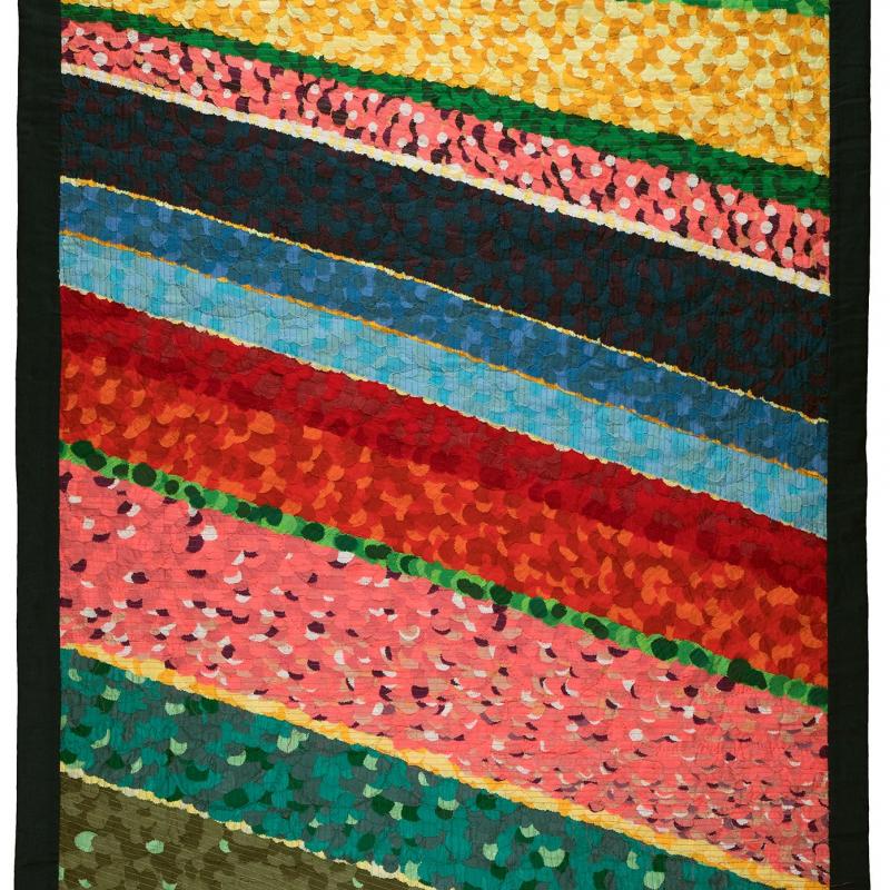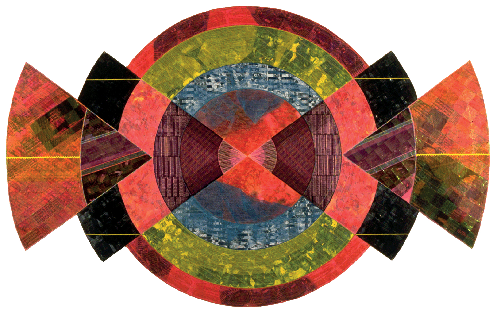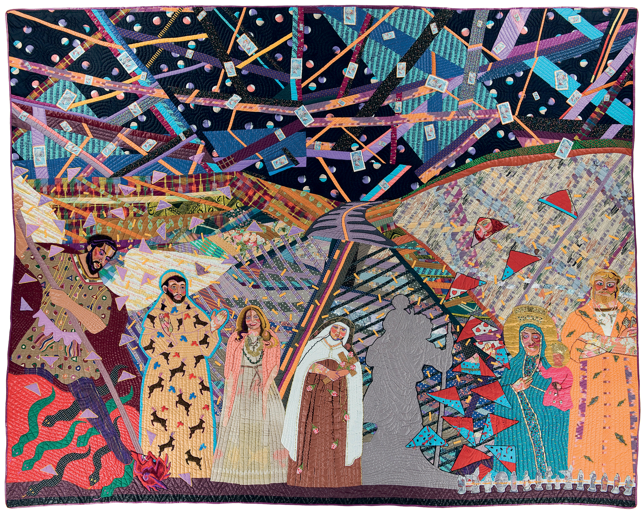 As the art quilt movement gained prominence and greater exposure, artists began exploring materials and processes beyond the commercial fabrics and hand-stitching used by traditional makers. Pieces with machine quilting became more common and accepted.