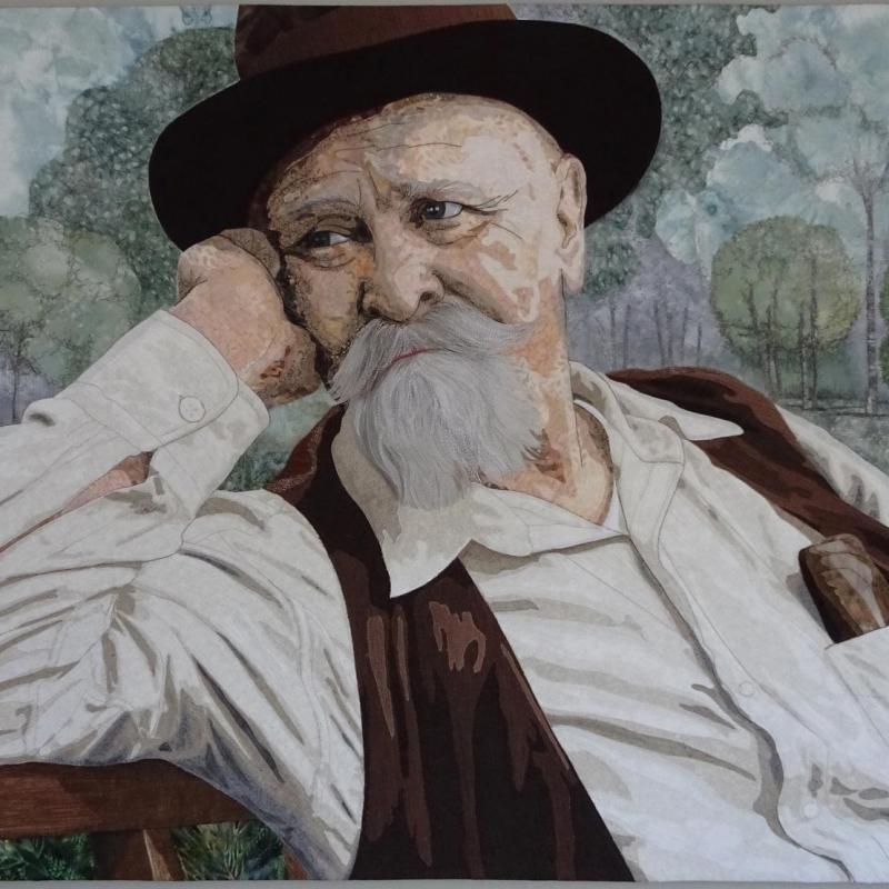 Fuzzy Mall is a self-taught textile artist, who specializes in large-scale applique portraiture. Upon graduating from Kent State University, he began his work in painting and mixed media, showing regionally throughout the Midwest. His focus solely on textiles started six years ago when he and his family moved to Dundas, Ontario, where they currently reside.