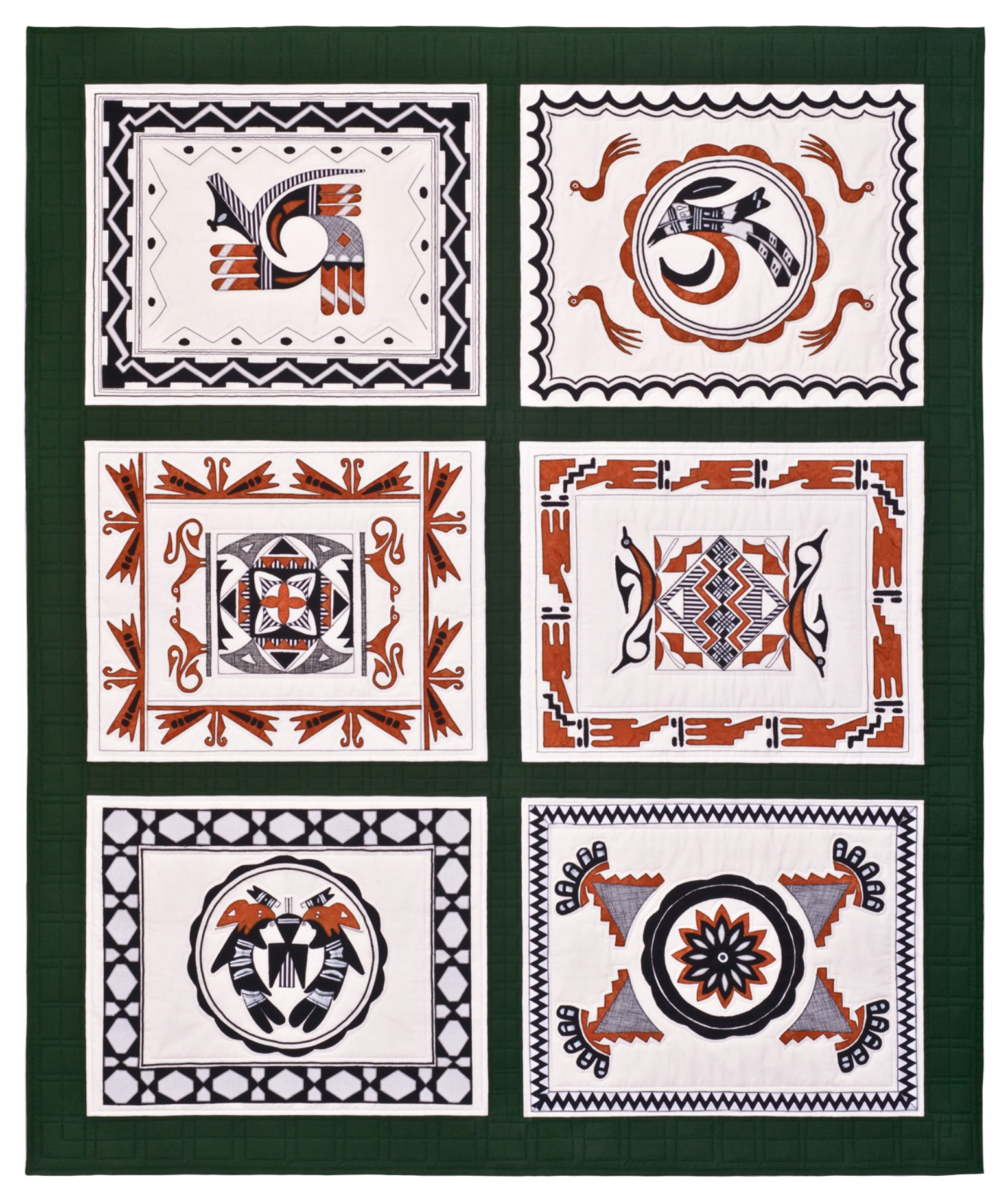 Many chose raw edge appliqué or thread painting to create the detail they sought (“Balustrade,” “Ironworks”).