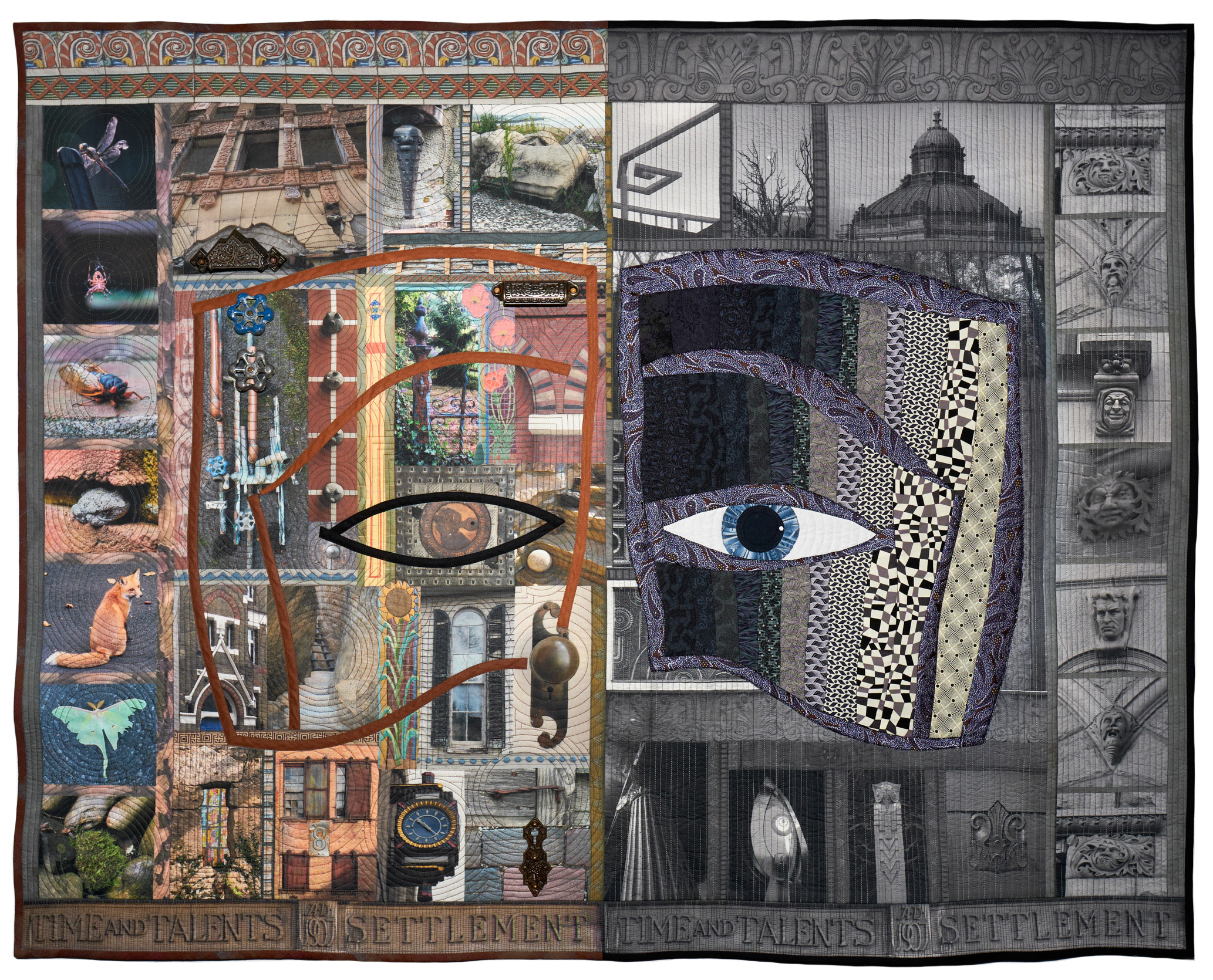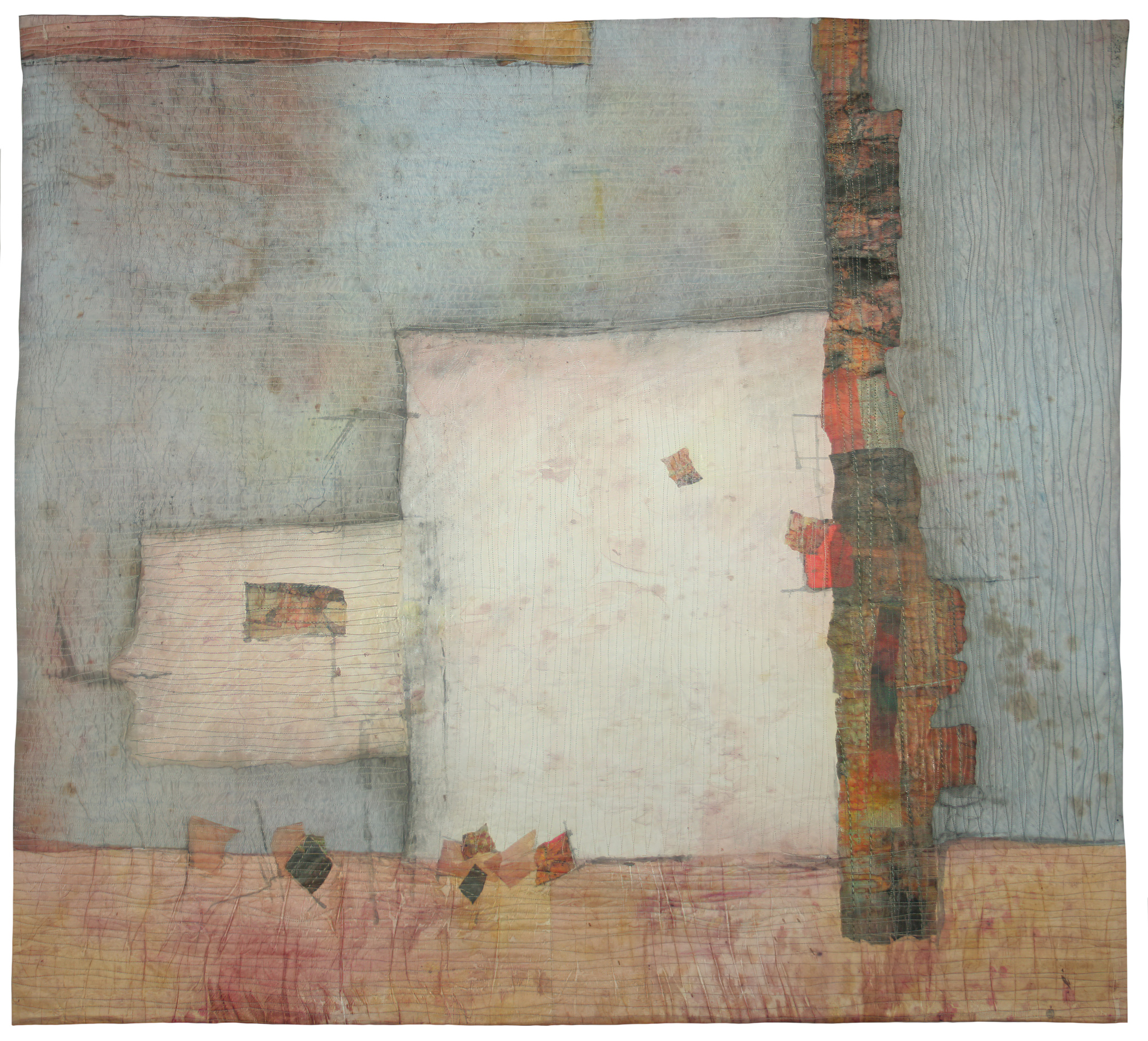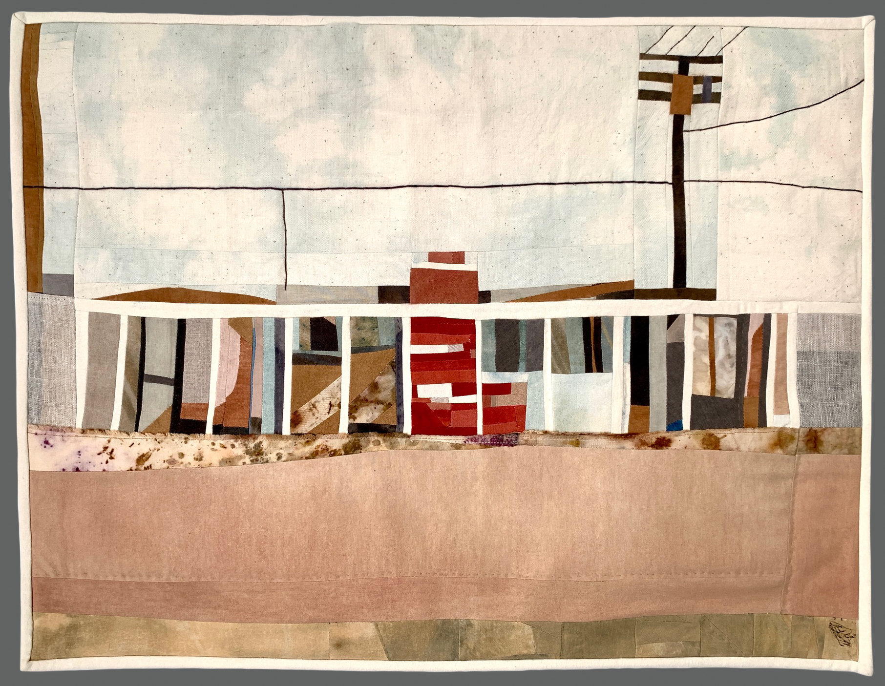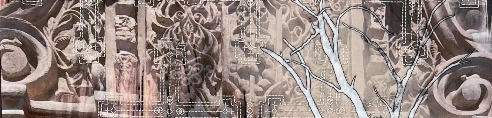 Inspired by daily walks, travel, events and the passage of time, each work shares a different interpretation of historic detail. Artists created their own fabric by dyeing, screen printing, painting or manipulated photos that were printed on fabric.