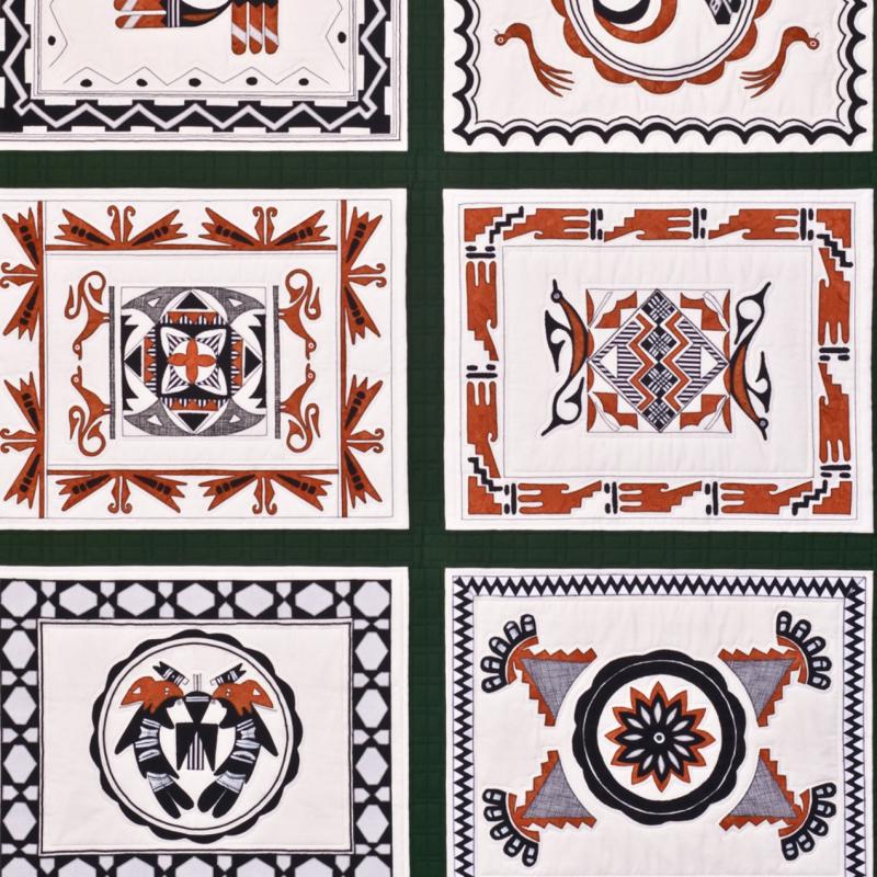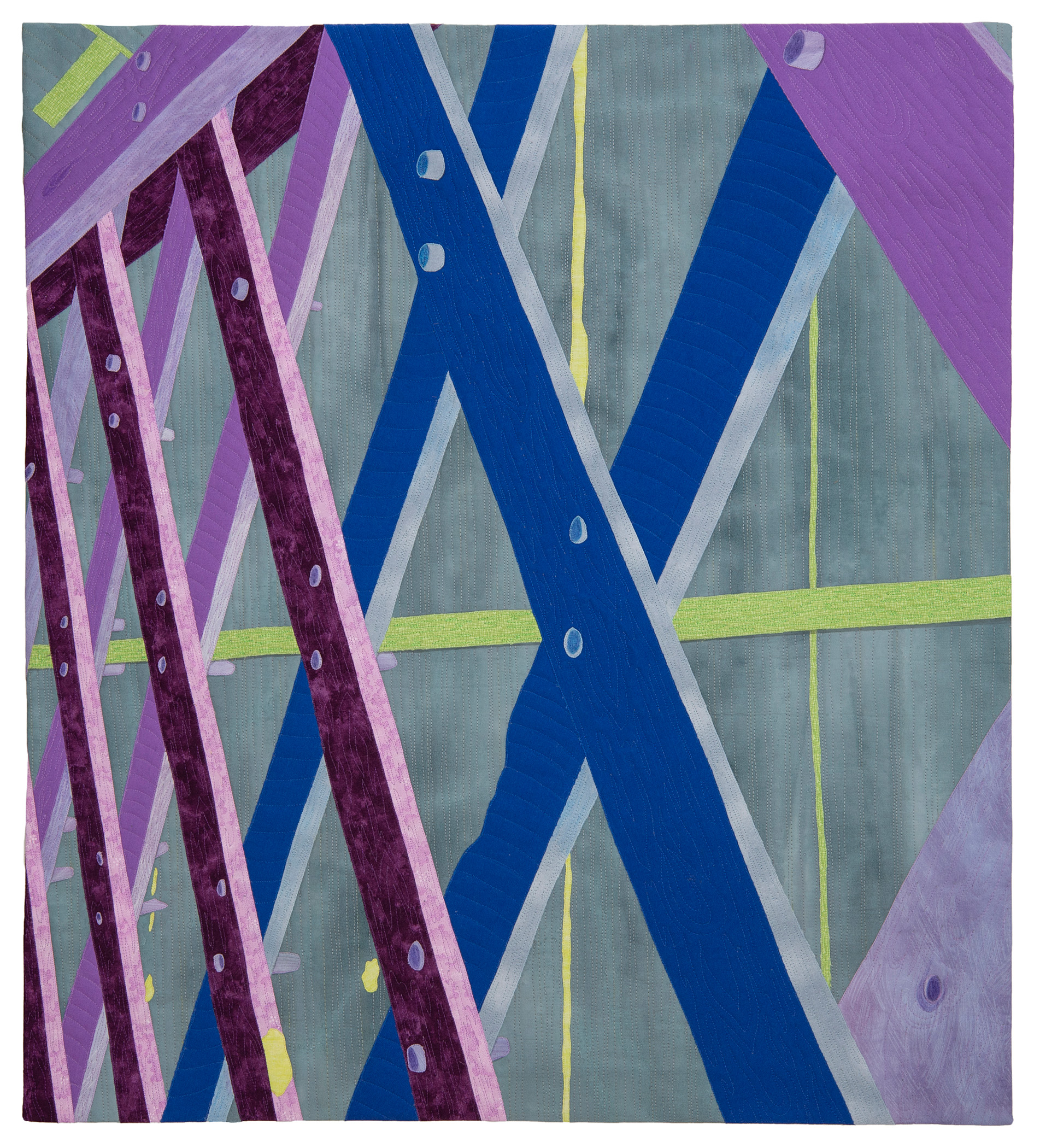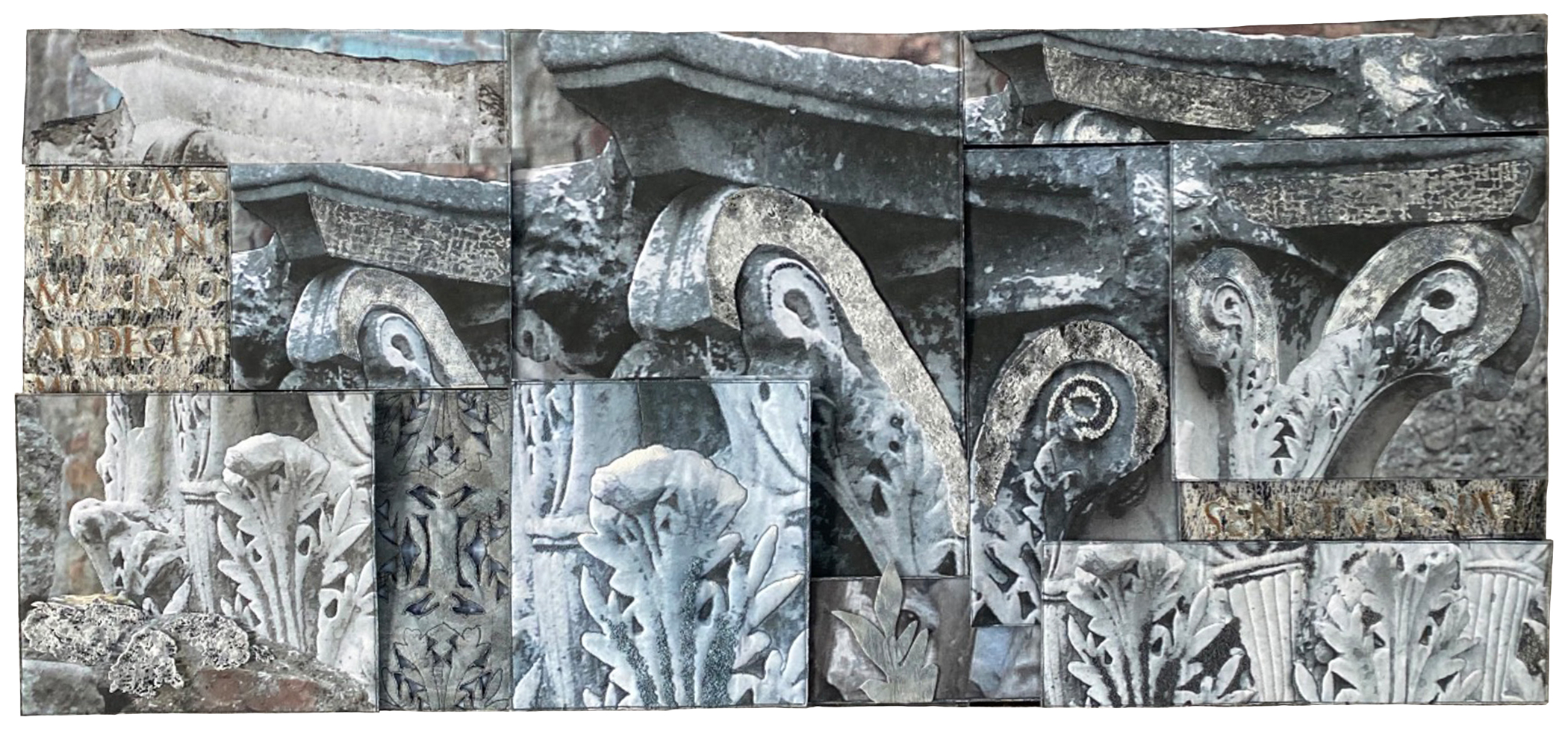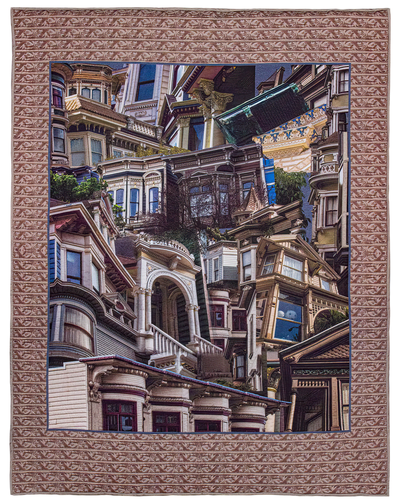 Inspired by daily walks, travel, events and the passage of time, each work shares a different interpretation of historic detail. Artists created their own fabric by dyeing, screen printing, painting or manipulated photos that were printed on fabric.