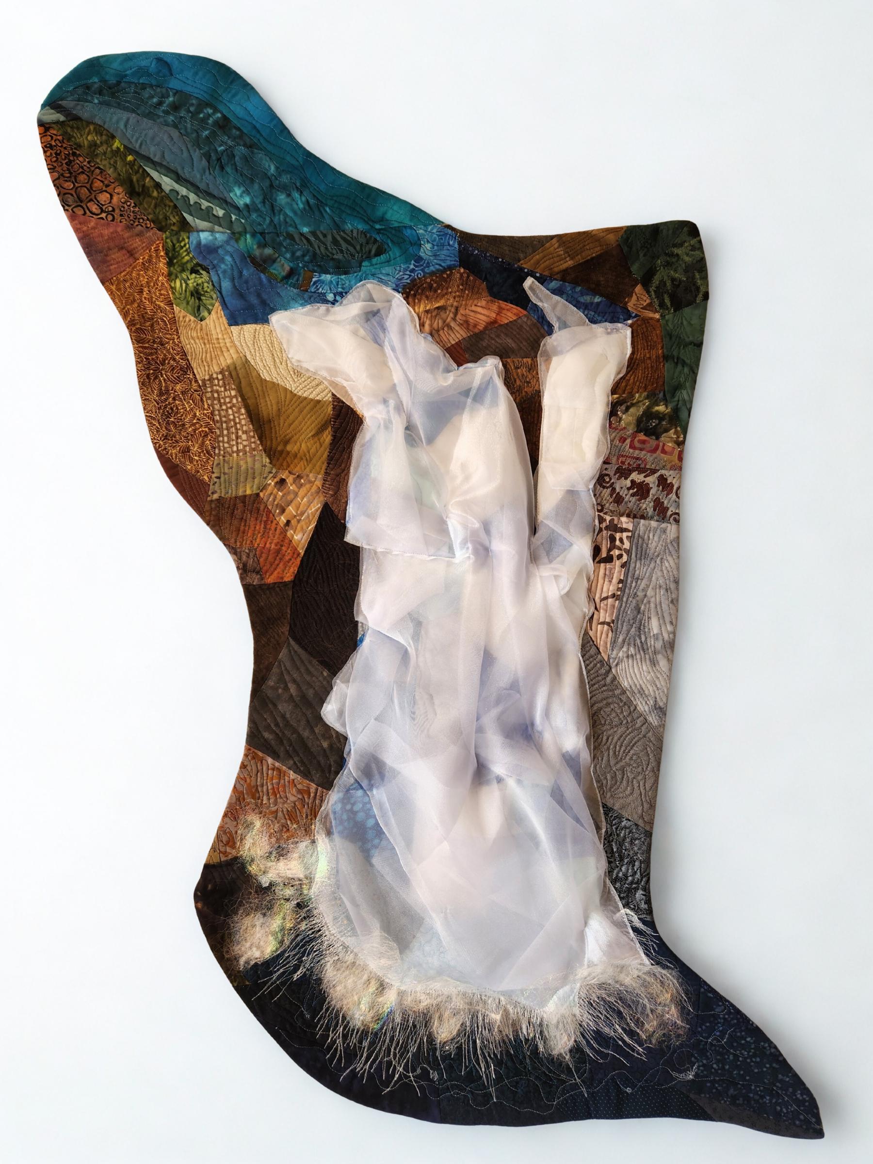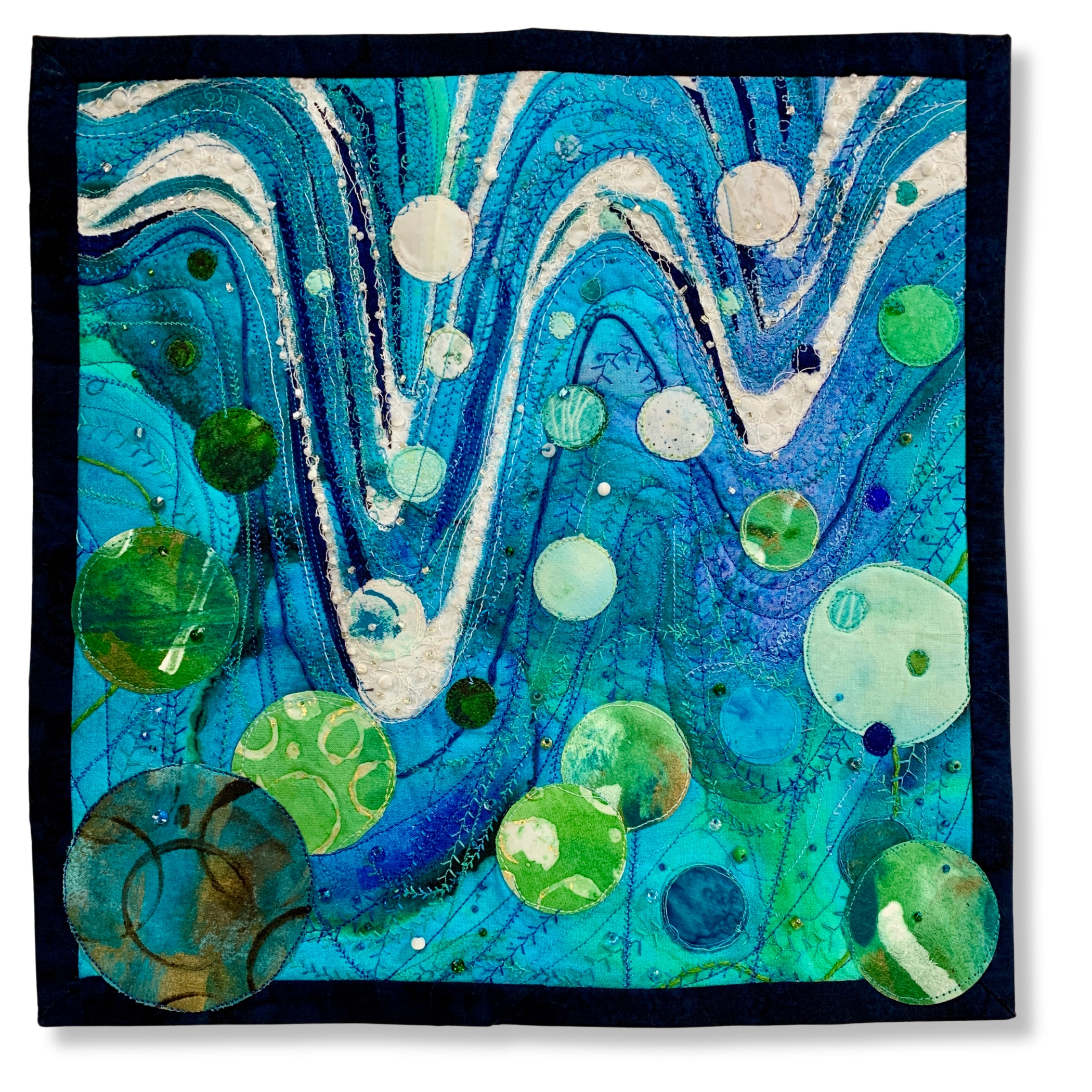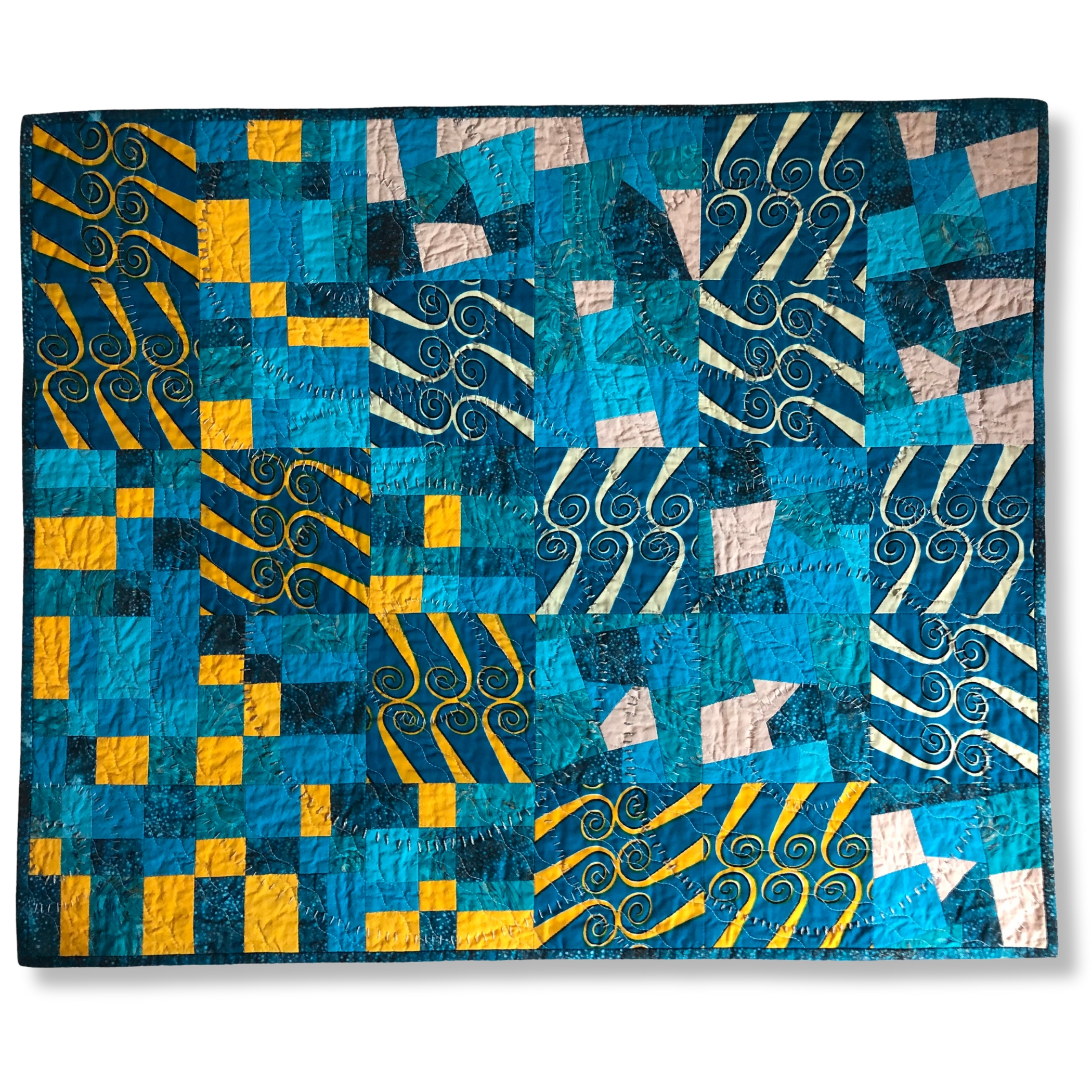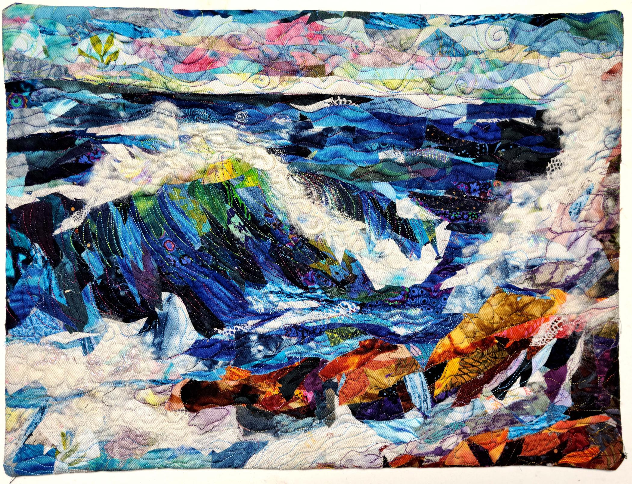 There were many wonderful rivers, waterfalls, and wave quilts. As I expected, lots of animals and people interacting with the water. I wanted to show movement in the splash or due to the splash. In many cases, I tried to select a variety of ways to represent the splash or movement. But I couldn’t include all the different techniques and representations. I also tried to include some 3-D pieces.