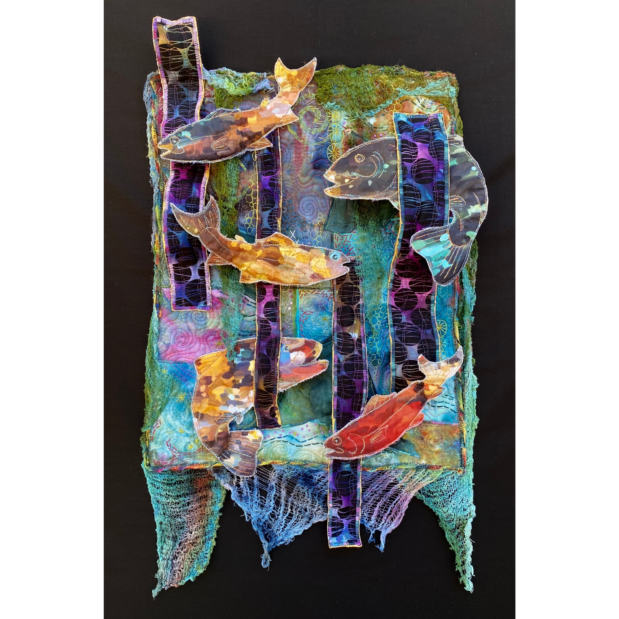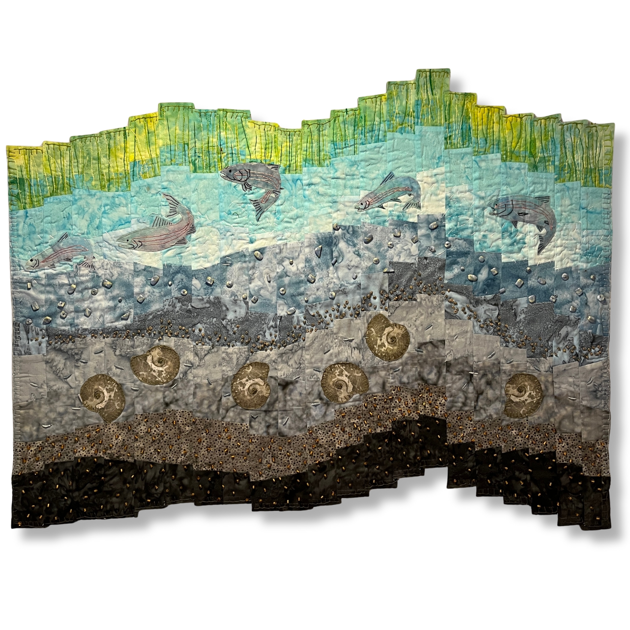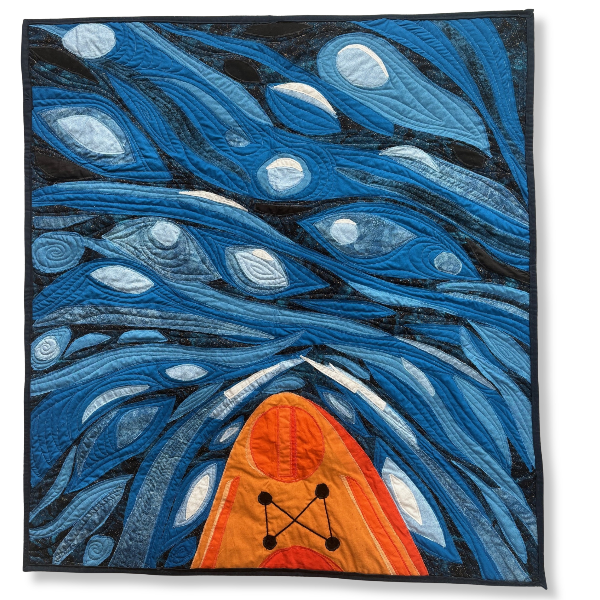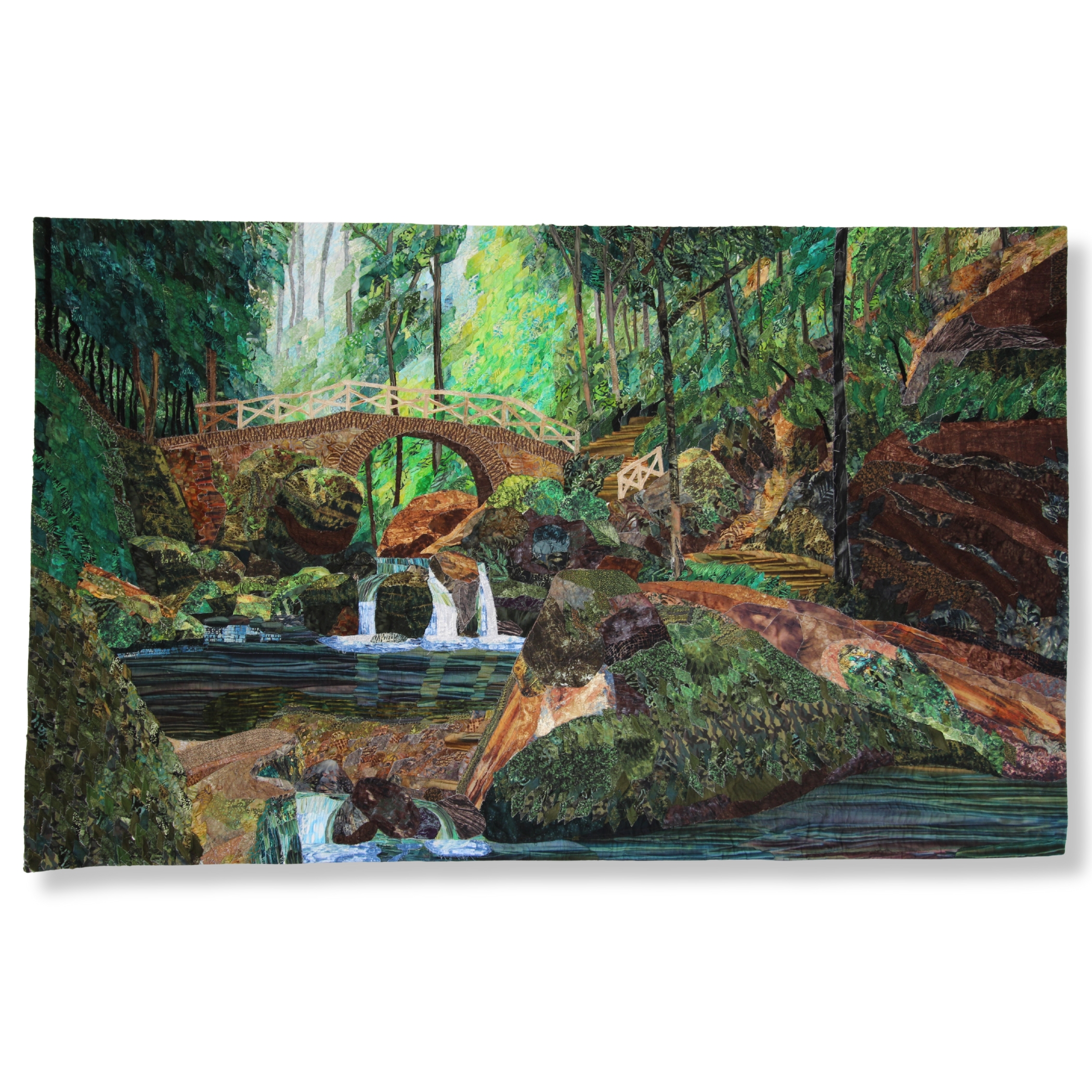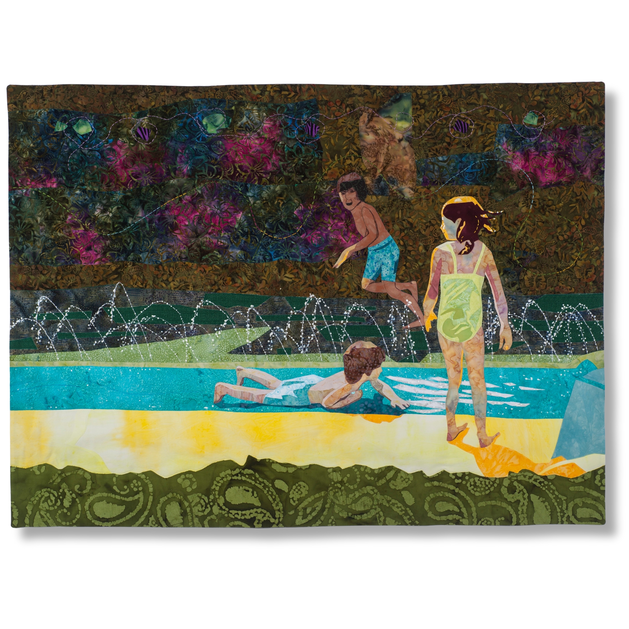 There were many wonderful rivers, waterfalls, and wave quilts. As I expected, lots of animals and people interacting with the water. I wanted to show movement in the splash or due to the splash. In many cases, I tried to select a variety of ways to represent the splash or movement. But I couldn’t include all the different techniques and representations. I also tried to include some 3-D pieces.