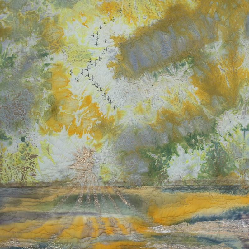 Claire’s work has featured in many SAQA Global exhibitions and other international events. It is also included in several private and corporate collections. She teaches widely within the UK and in 2019 was a presenter and tutor at the 5th International Quilt Symposium in Shaoxing, China.