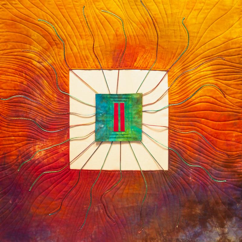 When planning this first virtual exhibit for a SAQA region, Geneviève and I wanted to find a way to celebrate the complex diversity within the Europe Middle East region. Our members come from 22 countries and speak over 24 different languages, meaning verbal communication can sometimes be challenging. This is when our artistic voices to come to the fore and we let our art do the talking.