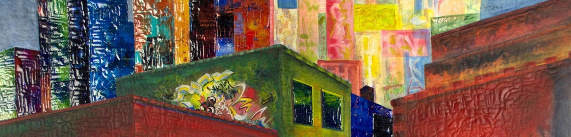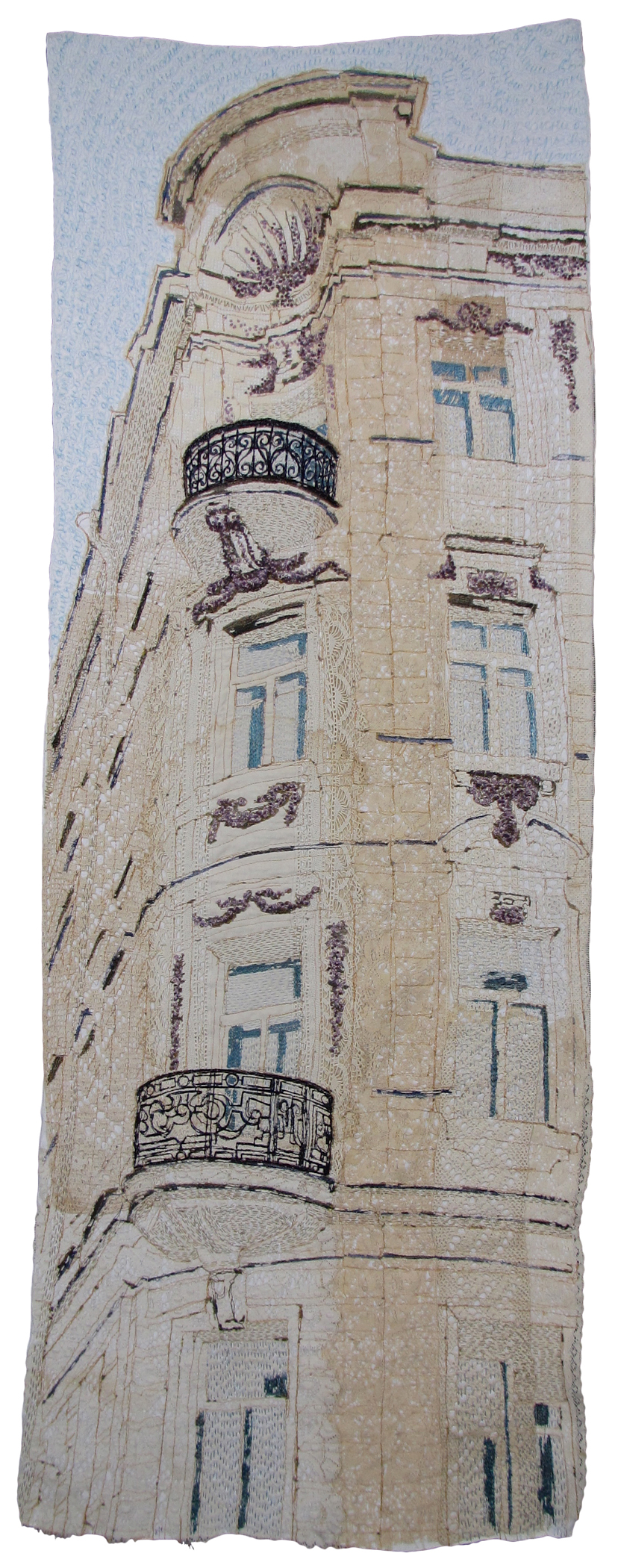 Rewarding describes my experience curating this exhibit. It was an honor and a responsibility to compile a group of art quilts that tell a story of walking through any city. As I looked through hundreds of images, I responded to the similarities and differences in the work. Each piece I viewed demonstrated a significant investment of time, energy, and expertise, and all of the JAM artists deserve merit and praise. I began with a preconceived theme, although it changed as I began to select artwork.