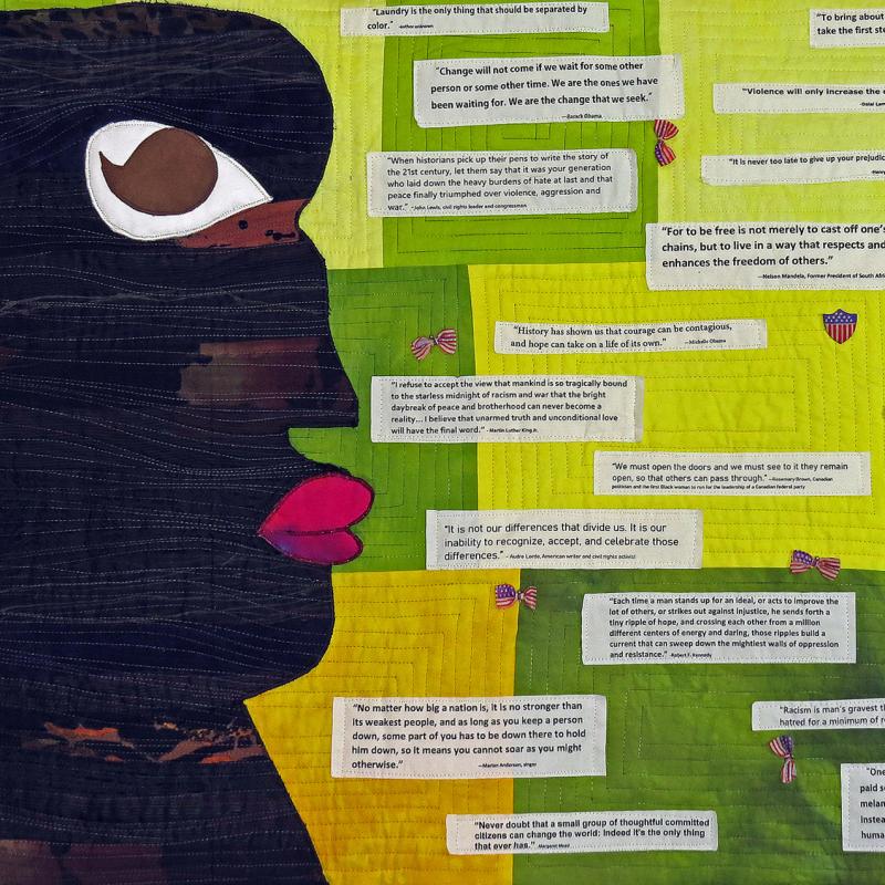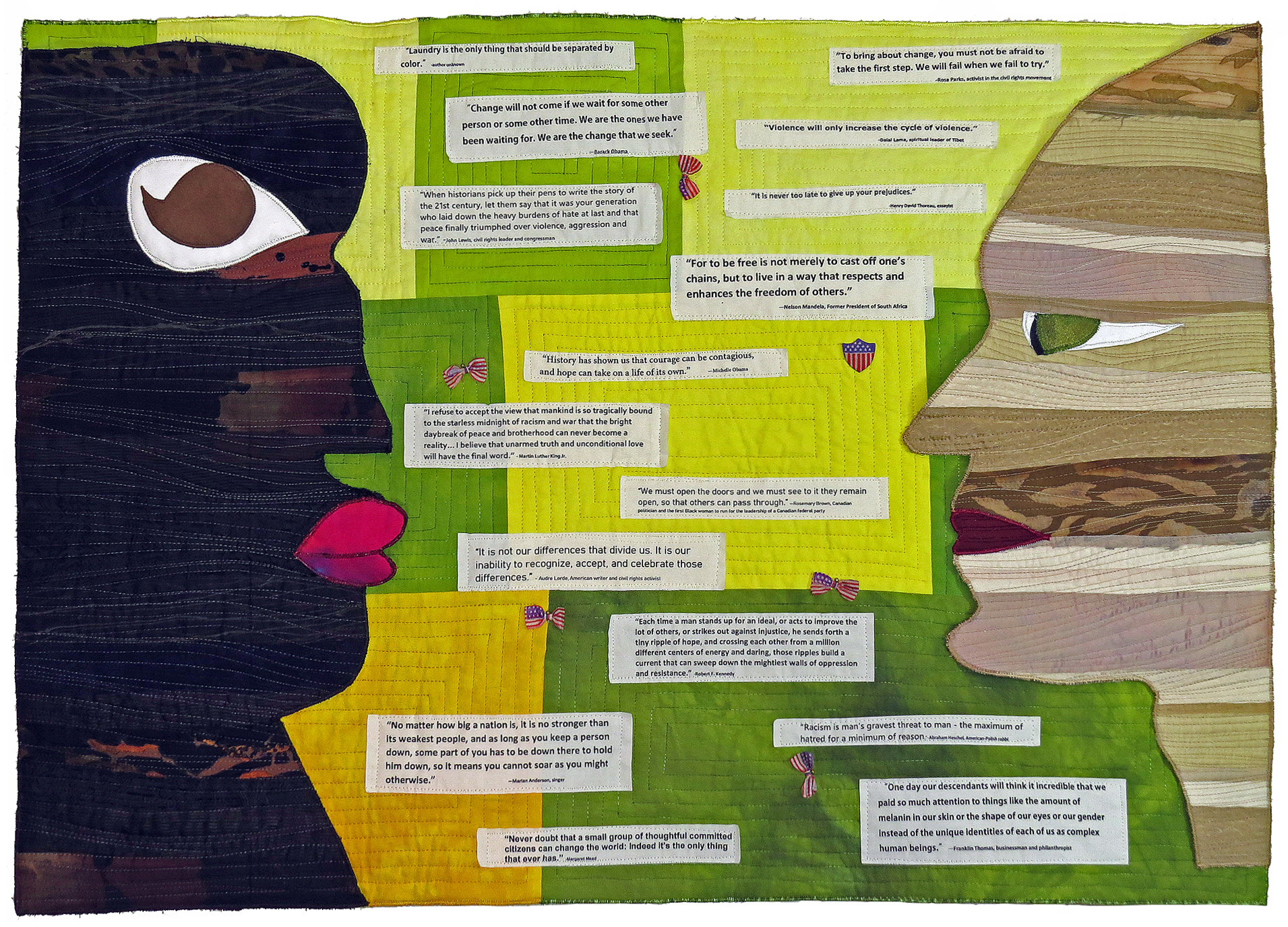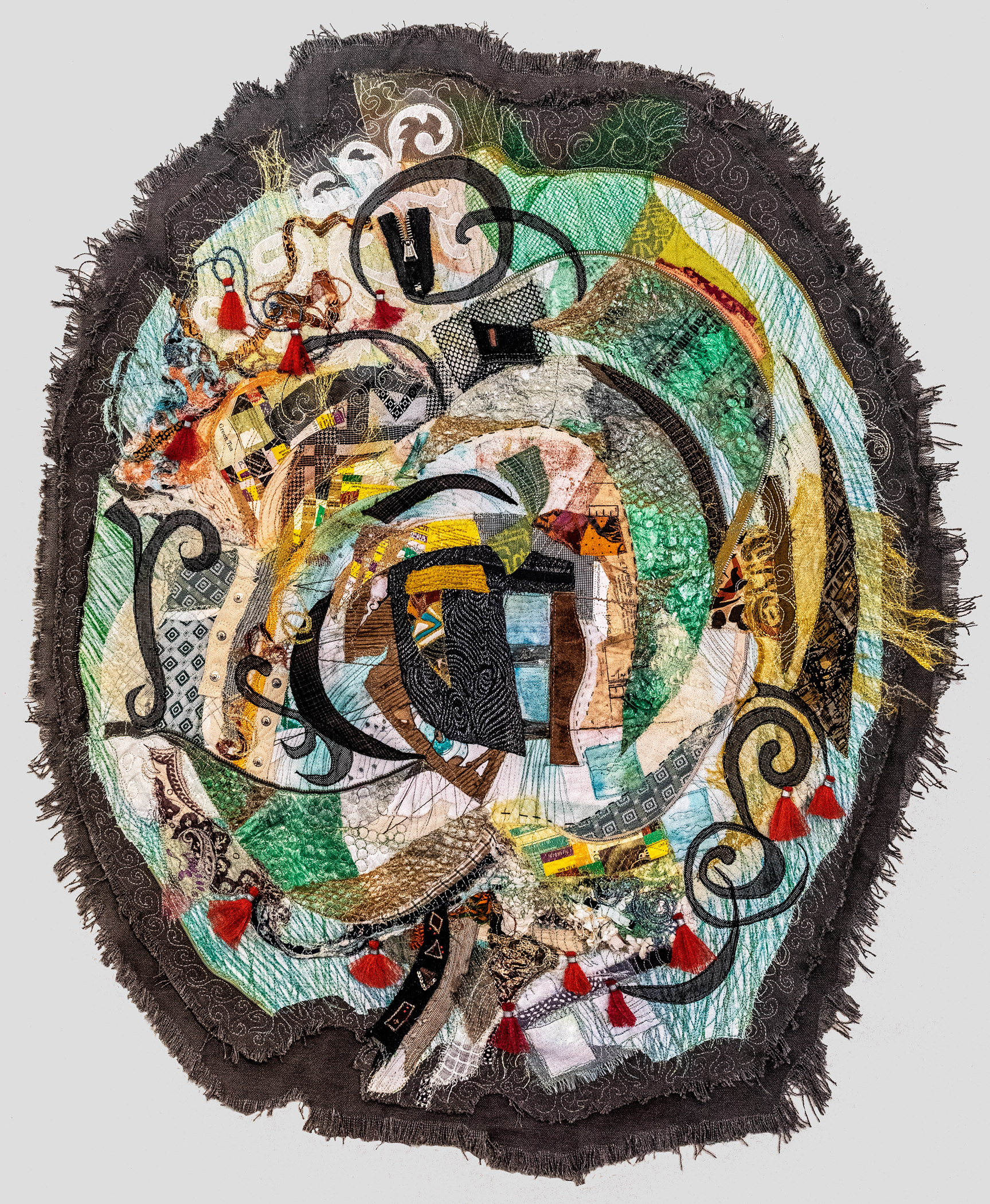 Textile Expressionism invited artists to expand their visual vocabulary to convey positive and/or negative emotions. Powerful expressions unfurl to include personal, physical, social, and political contexts. The art exhibits healing, catharsis, rage, joy, acceptance, and acknowledgment either as self-expression or as a commentary or conversation with the viewer.