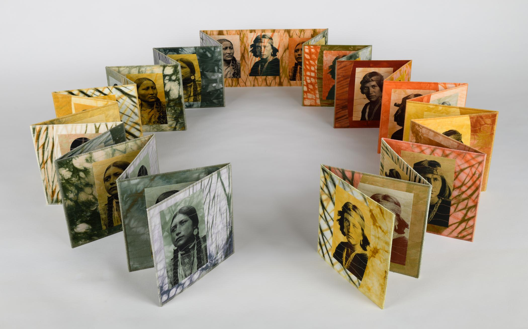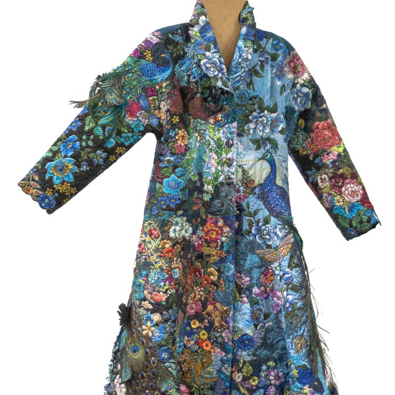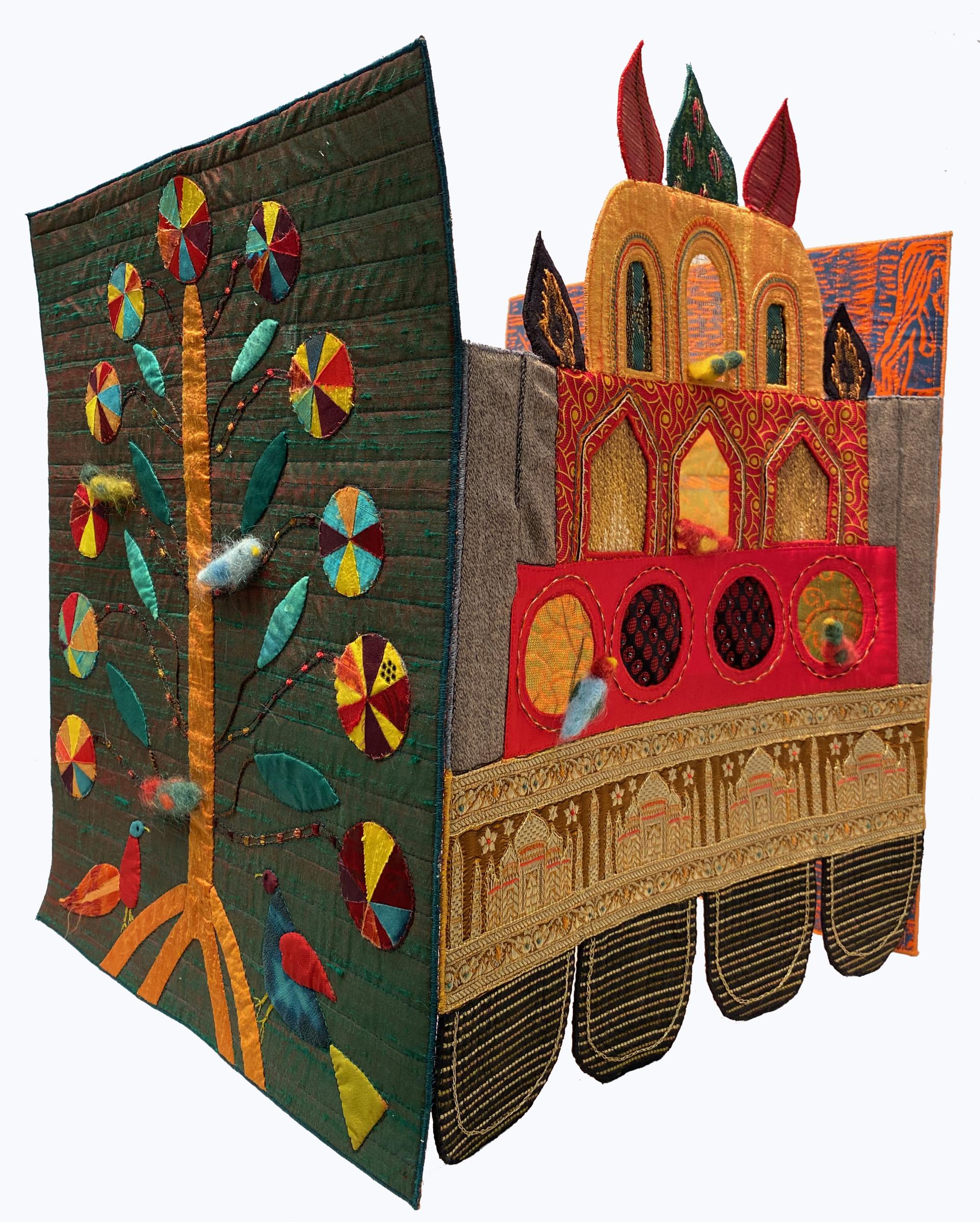 Art quilters have taken the traditional form of a quilt and moved it to the wall. Artists were asked to explore pushing the form off the wall into three dimensions. Create art that can stand on its own, hang from the ceiling or has added dimension on the wall.