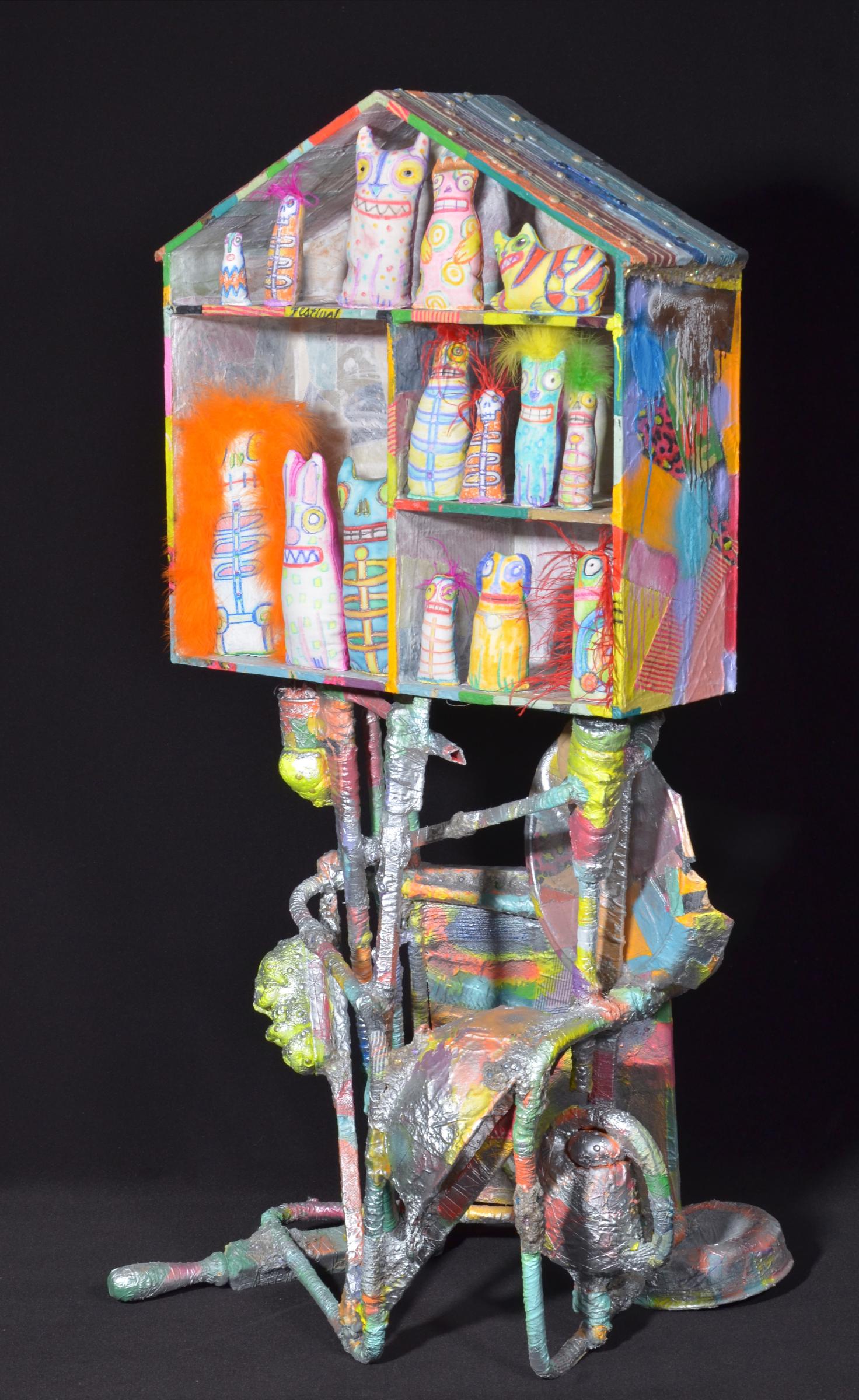 Off the wall could mean a lot of different things, from something that is bias relief, coming out from the flat surface, to sculptural forms, to crazy ideas. With the large amount of work SAQA received for this call, I could build the show I envisioned. I took the words ‘Off the Wall’ literally. I chose only pieces that were not wall mounted. Some hung from the ceiling, rose from the floor or seemed to hang in midair.