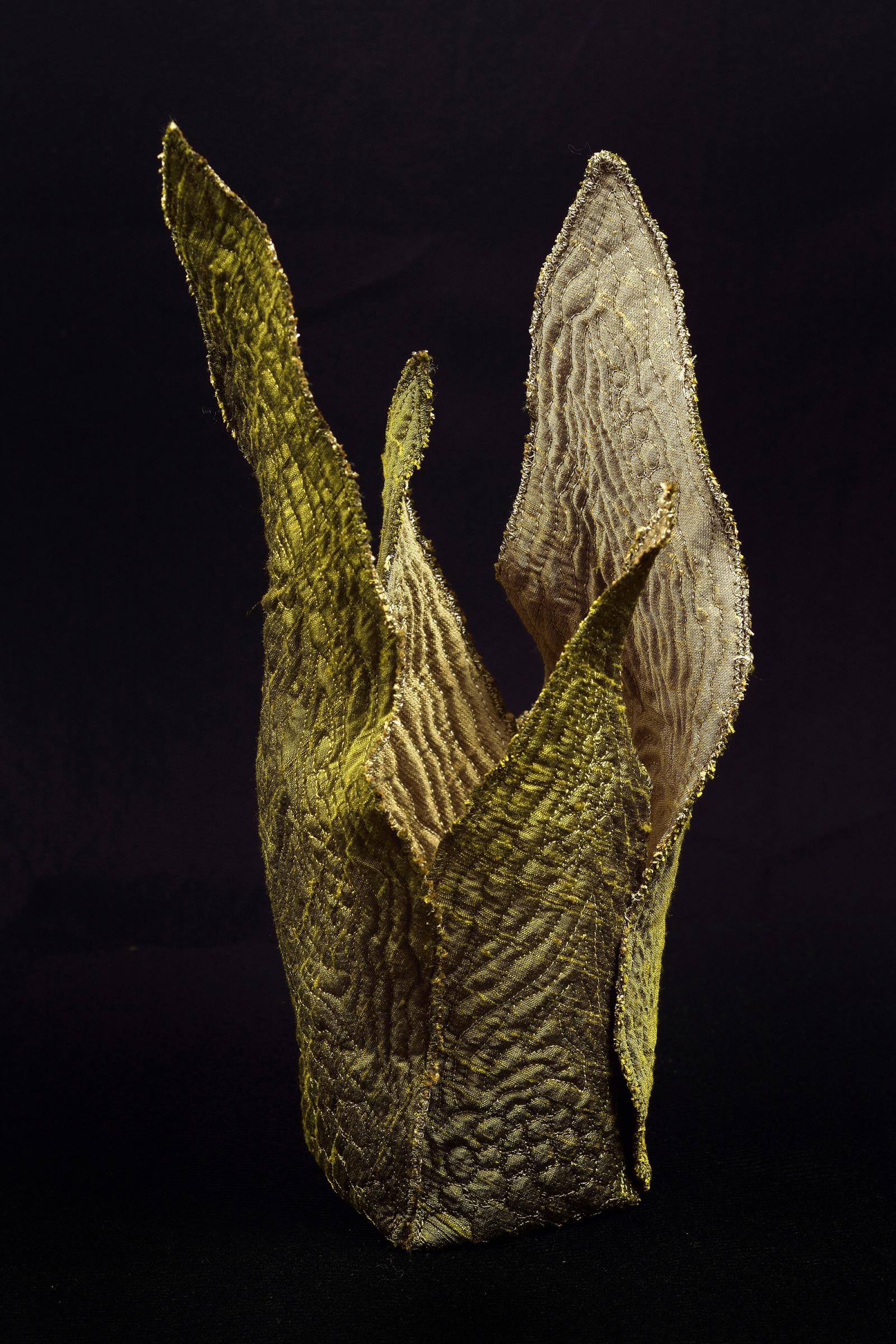 Andrea Finch creates sculptural quilts of botanical subjects, realistic to abstract, exploring textile textures. She lives and works in Chambersburg, Pennsylvania, sits on the board & exhibitions committee of the Virginia Quilt Museum in Harrisonburg, Virginia, and Gallery Coordinator at the Council for the Arts, in Chambersburg, Pennsylvania. Her work can be found at www.afinchsongcreation.com, the Foundry Art Market in Chambersburg, various galleries, public and private collections, and exhibitions throughout the country.
