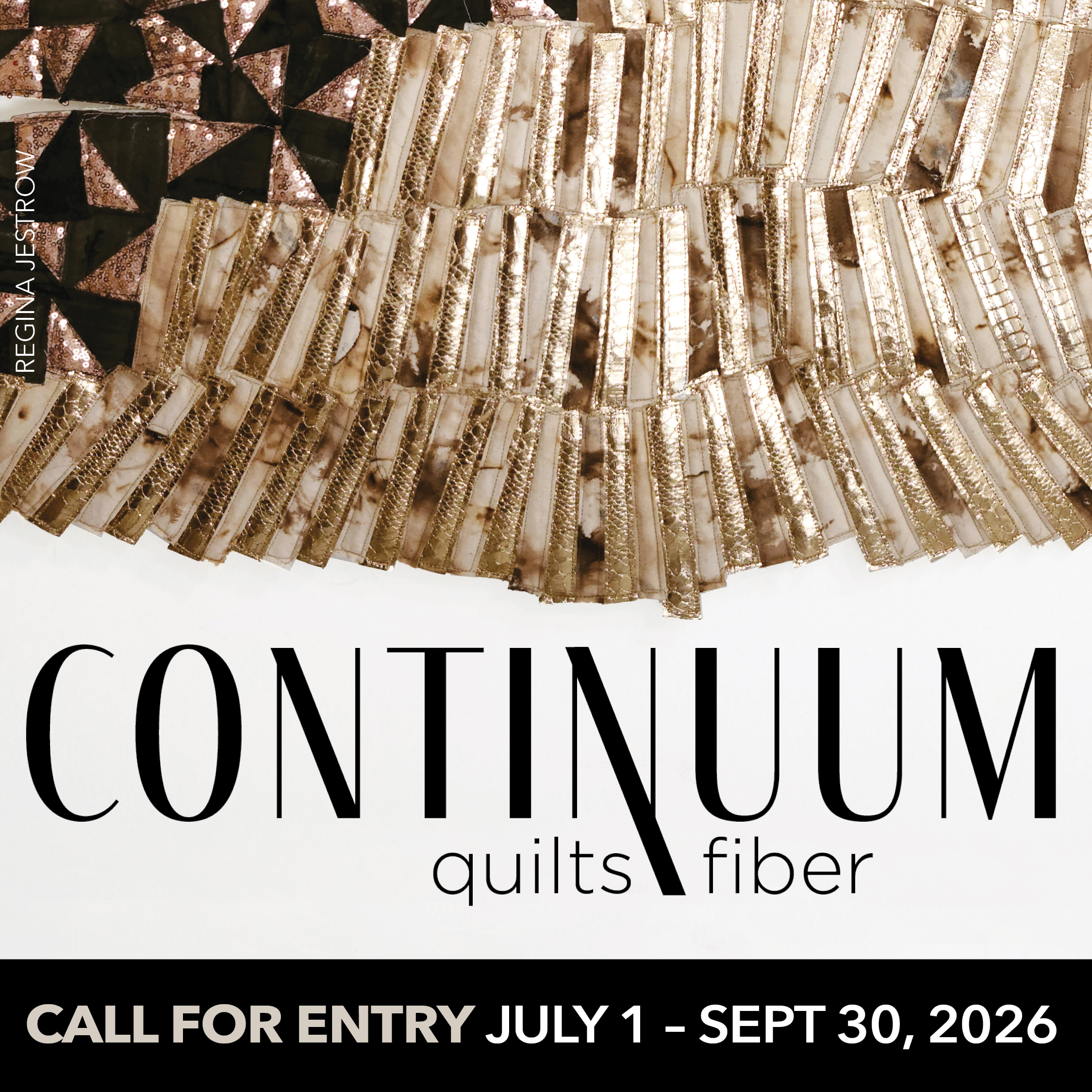 From traditional bed quilts to three-dimensional mixed-media works, CONTINUUM will celebrate the infinite ways artists and makers use fiber and fiber-adjacent materials to tell stories and create visionary art. This exhibition will not be a single aesthetic, region, or lineage, but the entire spectrum of quiltmaking. From heritage techniques to experimental materials, from functional to conceptual, from hand-sewn to digitally engineered, we want to see it all.