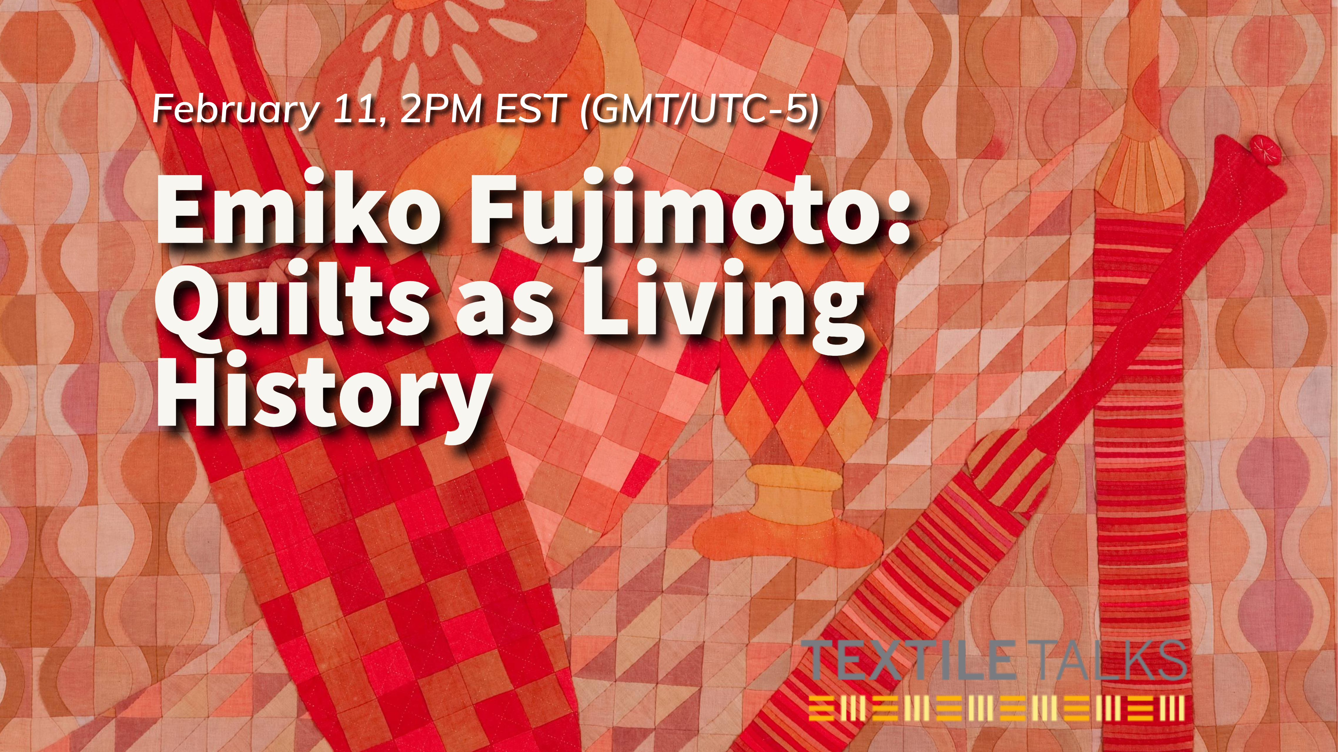 In this Textile Talk, Fujimoto is interviewed by Naomi Ichikawa. We see several quilts and textile hangings around her home and studio, and take a tour of her vintage fabric stash. Fujimoto and Ichikawa educate us about the fabrics and motifs as they go.