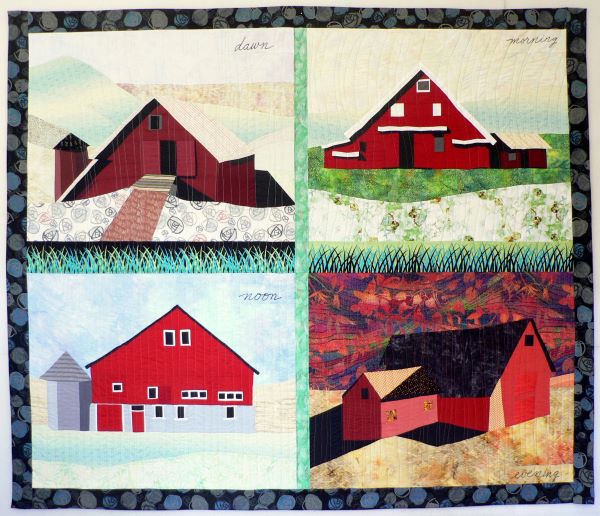 Words, phrases, and whole poems were used as inspiration. Nancy Bardach chose a poem from Farm Island Anthology called "Barn": "It rises from the heart of island earth in a born-again coat of red, its starched Dutch cap of shimmering roof clasping in a tight embrace this island’s pulsing center..."