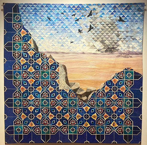 Renowned Australian textile artist, Jenny Bowker spent many years in the Middle East and Islamic countries including Syria, Jordan, Jerusalem, Egypt and Malaysia. As a diplomat’s wife she observed at close hand the richness of Arabic cultures and Islamic faith. In this body of work (10 machine pieced and quilted), Bowker presents her life experience charged with the poetry and politics of this time, in celebration of the people she met and the places she lived.