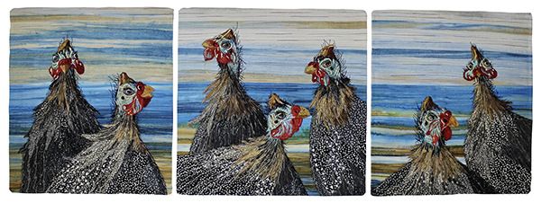More tangible expressions of place and self can be found in Deborah Weir’s elegant reverie, Shibori Dye Day, and in Karen Schulz’s engaging journey, Road Trip. Whether we are plunging our hands into Weir’s water or following the path with Schulz, we are off to places of discovery.