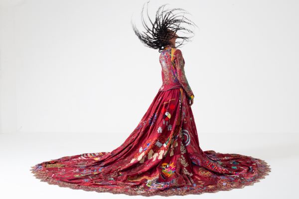The Red Dress, conceived by British artist Kirstie Macleod, provides an artistic platform for women around the world to tell their personal stories through embroidery. From 2009 to 2022, pieces of the Red Dress traveled the globe, the focus of nearly continuous embroidery work. Constructed out of 84 pieces of burgundy silk dupioni, the garment has been worked on by 336 women and 7 men from 46 countries, with many of the stitchers marginalized and/or living in poverty. Of those, 136 were commissioned artisans who were paid for their work and continue to receive a portion of all ongoing exhibition fees. The remaining embroidery was added by willing participants at various exhibitions & events. This remarkable Fuller Craft exhibition will feature the Red Dress, along with information about the project’s history and a robust public program schedule.