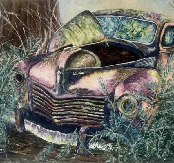 This exhibition is about old cars and trucks that have become one with nature. In a world made aware of recycling, it’s the natural course for man-made objects to ultimately be returned to the earth…rust to dust.