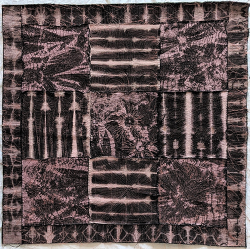 "I am inspired by the world I inhabit and my perception of it. I am just as likely to be captured by the shape and pattern of cracks in asphalt as I am by the glory of nature. People do think I am a bit nuts photographing a parking lot on my hands and knees, and maybe they are right. But I carry on, capturing the beauty or whimsy I see and translating it to fabric. I completely lose myself while manipulating fabric by adding color, taking color away, molding it to create shapes, and by adding texture through thread and raw edges. There is a kind of alchemy in taking a two dimensional medium and moving it out, away from the wall, in transforming the fabric surface, in adding stitched texture to enhance the richness or depth of a design, in choosing to not clip strings or adding yet more dangling threads, and in leaving edges raw and letting them—even encouraging them—to ravel.