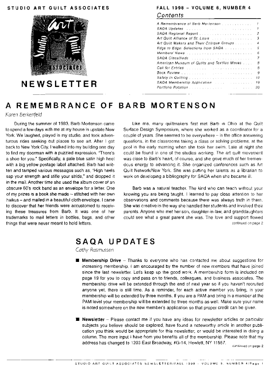 Exhibitions - Edge to Edge: Selections from SAQA (Hollander, Stacy C.)