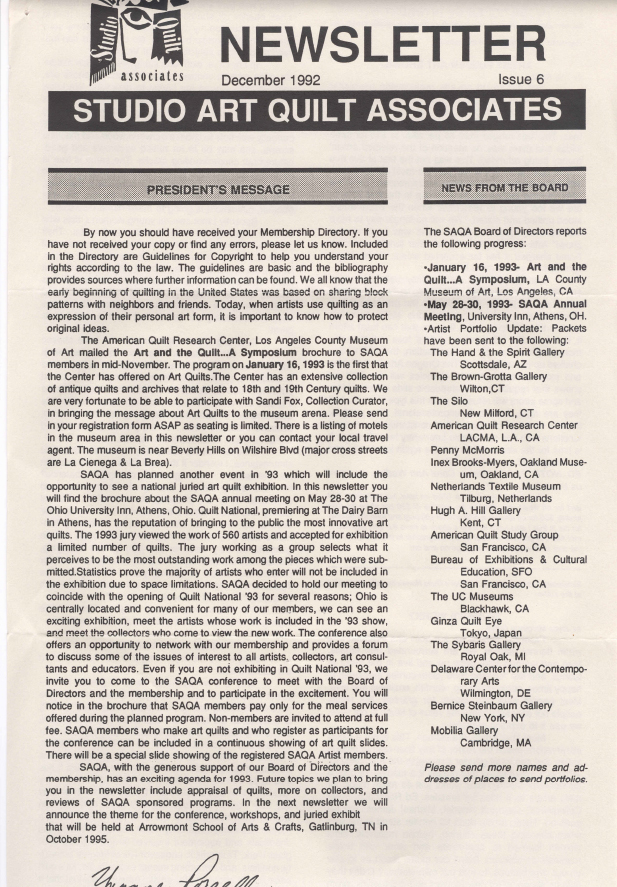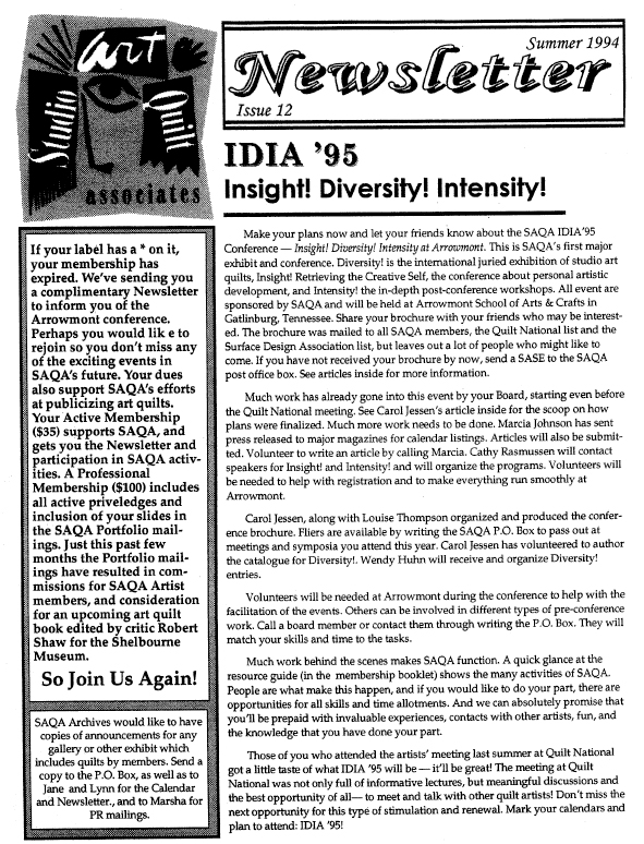 All articles are copyright Studio Art Quilt Associates, Inc.
