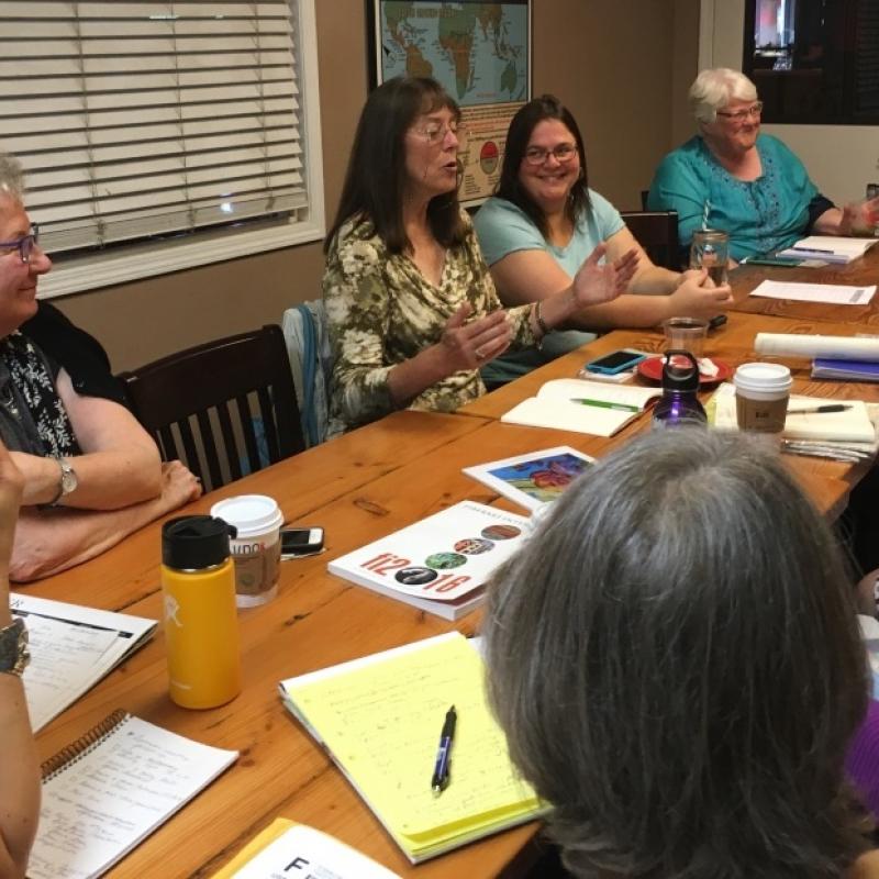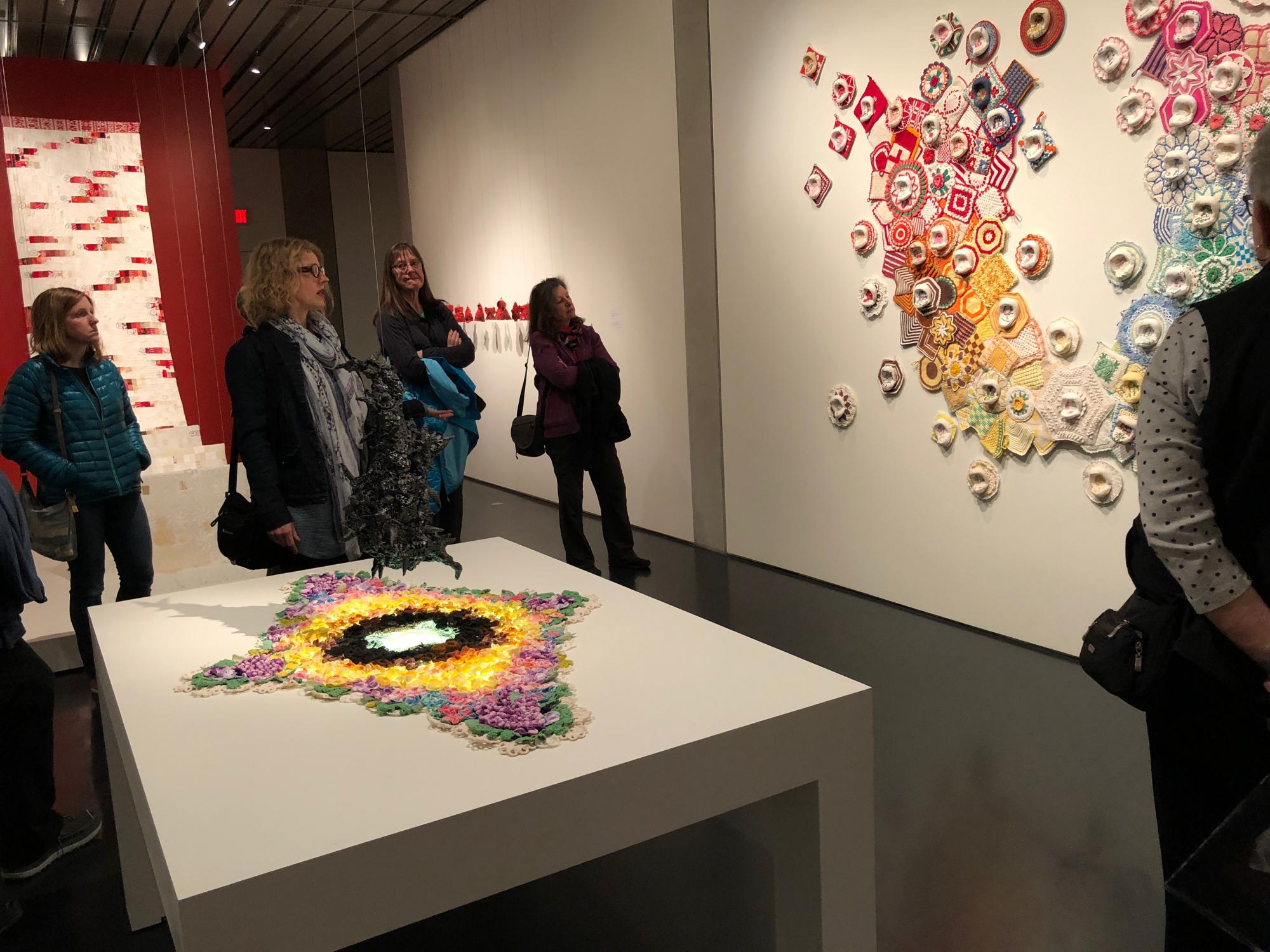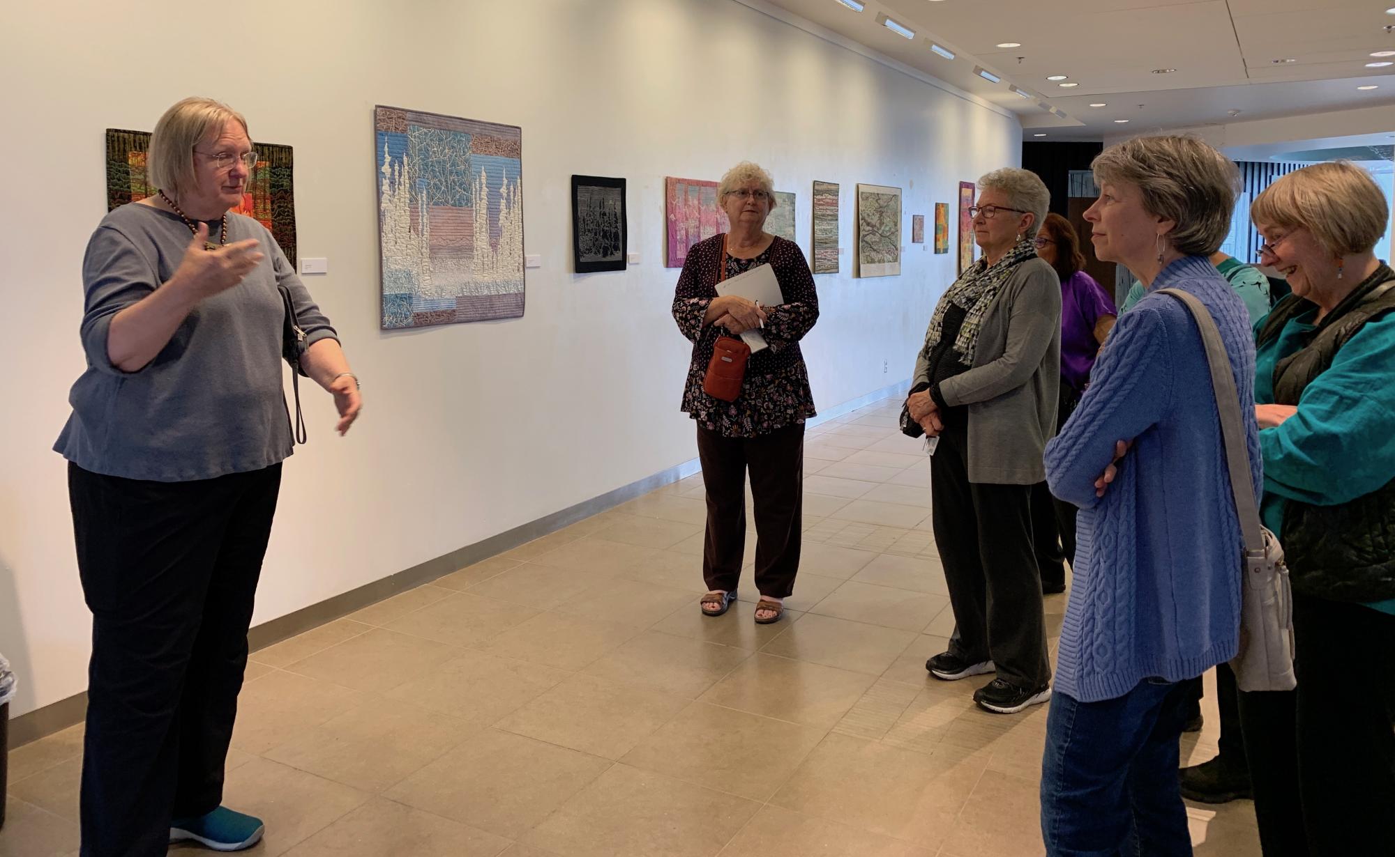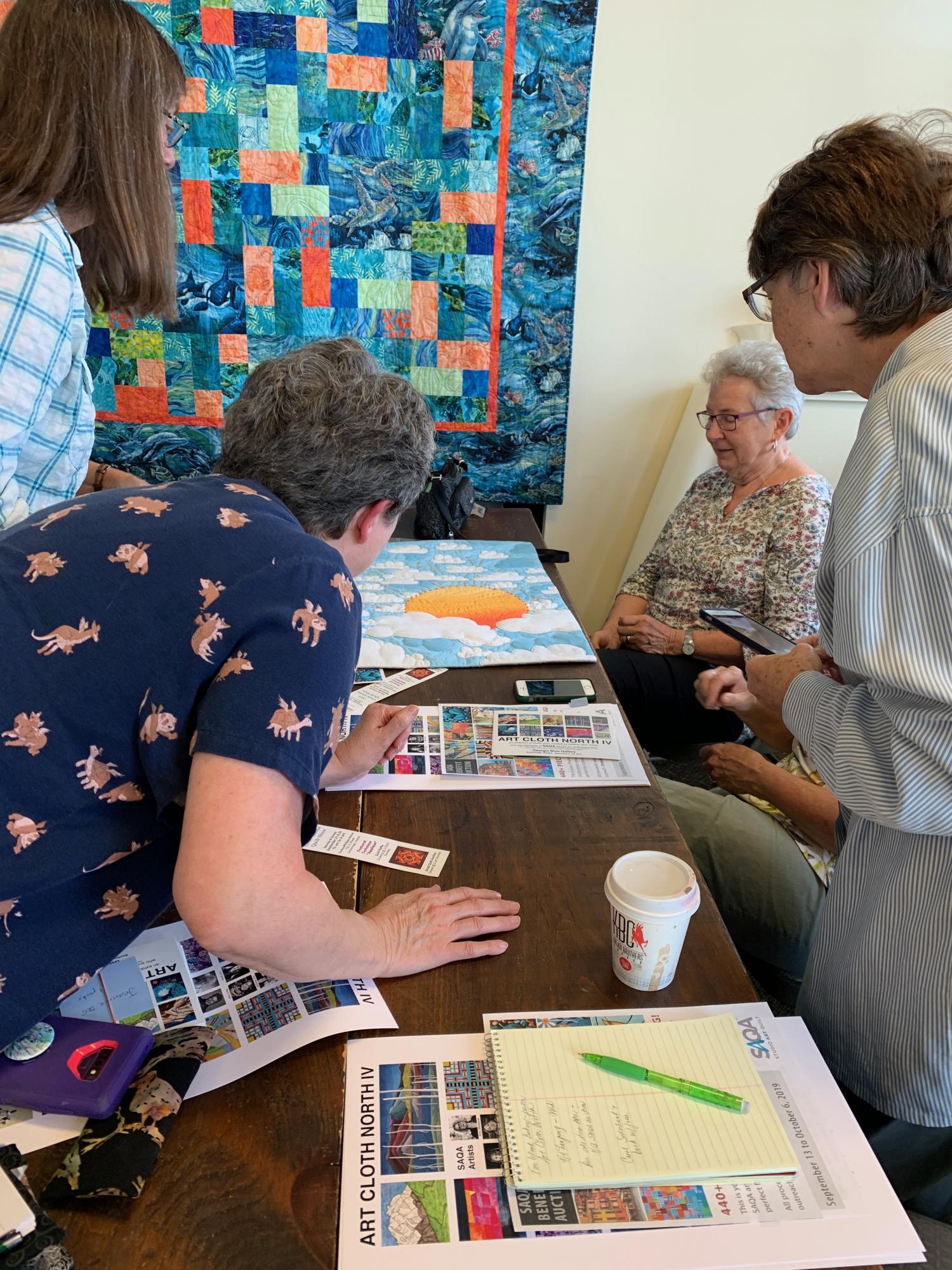 We host monthly regional meetings on the 2nd Tuesday of most months in person or via Zoom (video conference). We enjoy catching up with other artists who are working and producing. We share completed and in-progress work; seek feedback when needed; and discuss our fiber art adventures in our studios, community, and outside (not in Alaska).