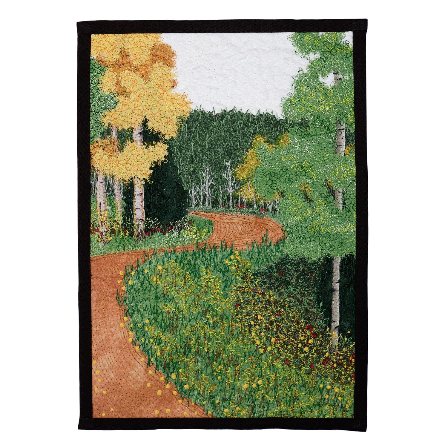 The inspirational photo for this art quilt was taken by my sister, Amy Giertz, in the mountains of Colorado. It uses the appliqué technique of quilting with lots of thread work for details, plus a bit of fabric paint.