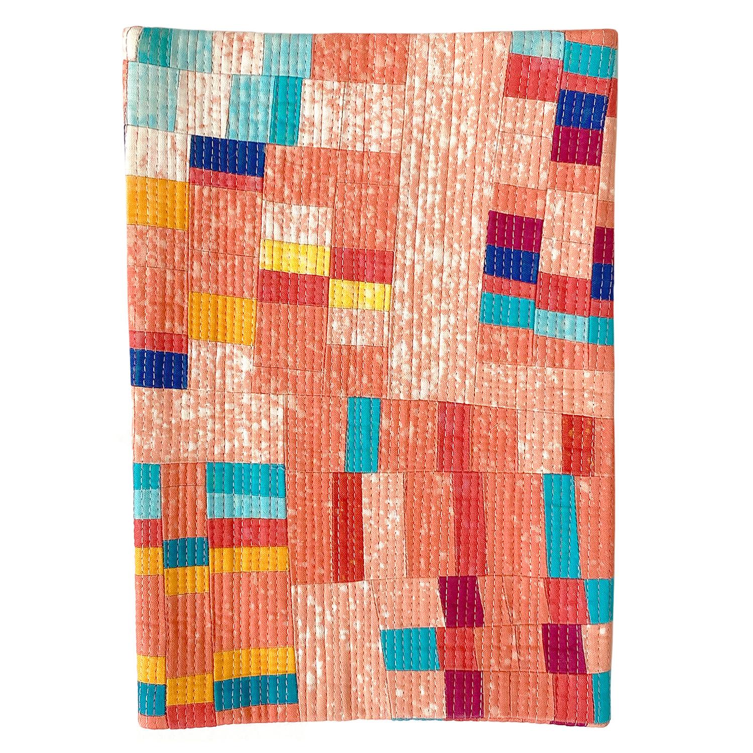 Improvisationally pieced, machine pieced, machine quilted, matchstick quilted, surface bleached, faced