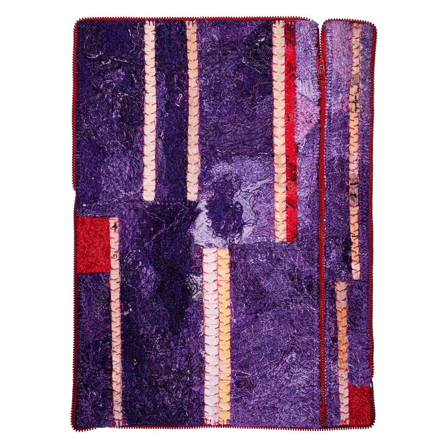 Loose threads taken from torn fabrics, small quilted scraps, old zippers, thread