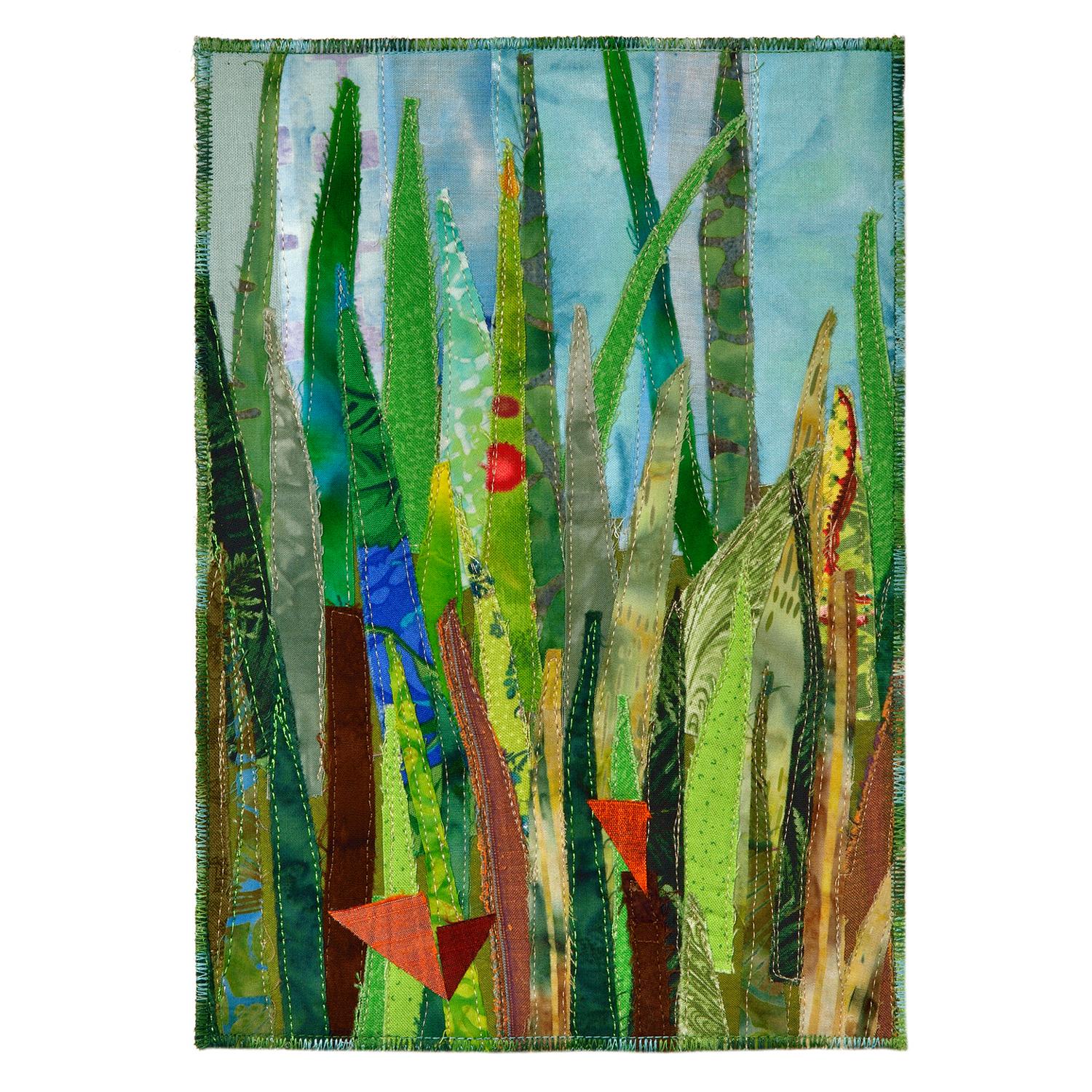 Raw edge appliquéd, machine stitched