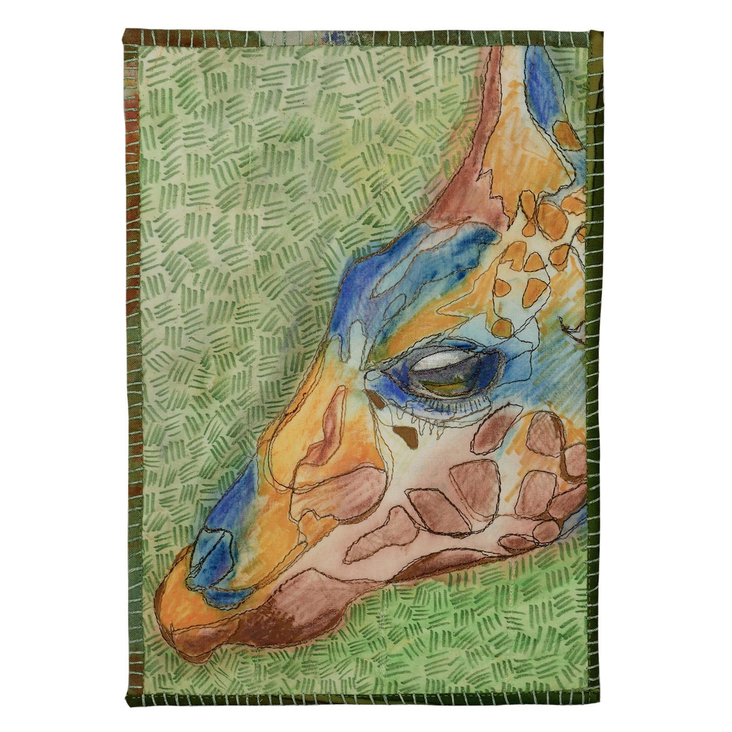Gerald seems like a good name for a giraffe. He is stitched and painted with Inktense pencils and markers.