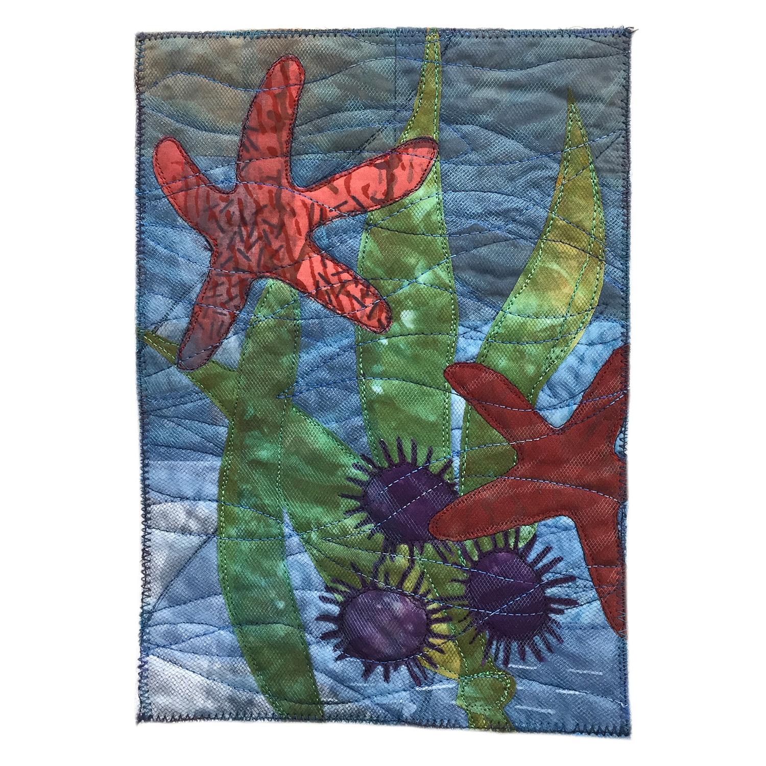 Hand dyed, hand cut and fused appliqué, machine stitched, machine quilted, hand embroidered