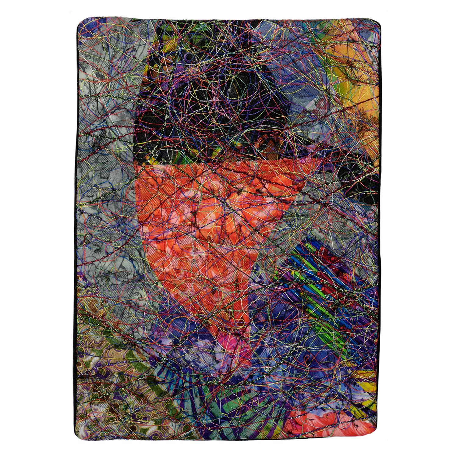 Collaged, layered, free motion quilted, melted, bobbin work